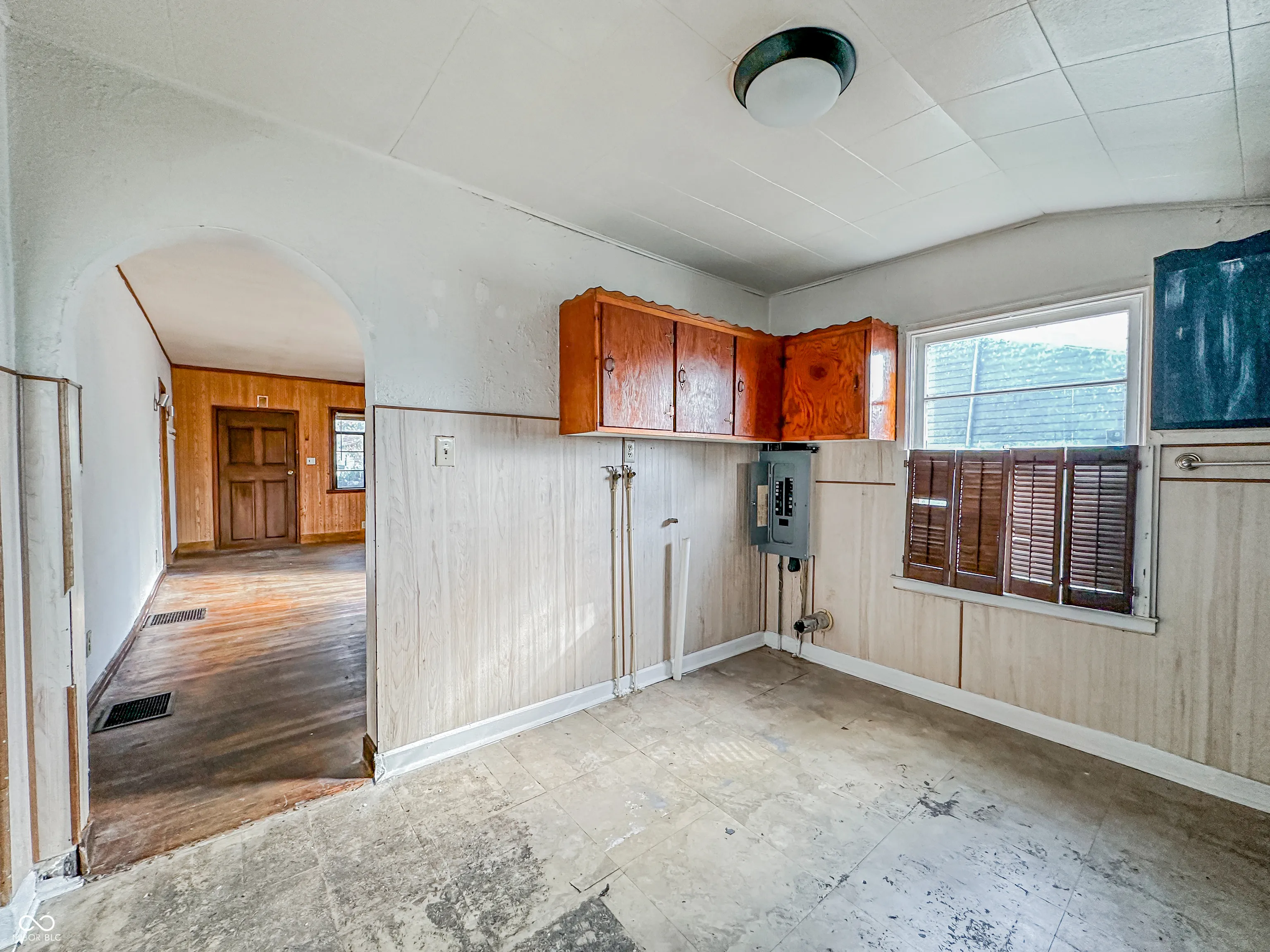 Step into this cozy 2-bedroom, 1-bath cottage-style home in the West Indianapolis neighborhood. The living room welcomes you with a mix of classic charm and potential, featuring wood paneling on one wall that adds a warm, rustic touch. Large windows fill the space with natural light, highlighting the original hardwood floors. The nice-sized backyard is a true gem, perfect for family BBQs or outdoor entertaining. While needing a little TLC, the home retains its character and offers endless possibilities for customization. It’s a wonderful opportunity for those who love a good project or are looking to downsize into something they can truly make their own. With love and care, you can transform this space into your ideal home, reflecting your style and taste. This home could be exactly what you’ve been searching for!
