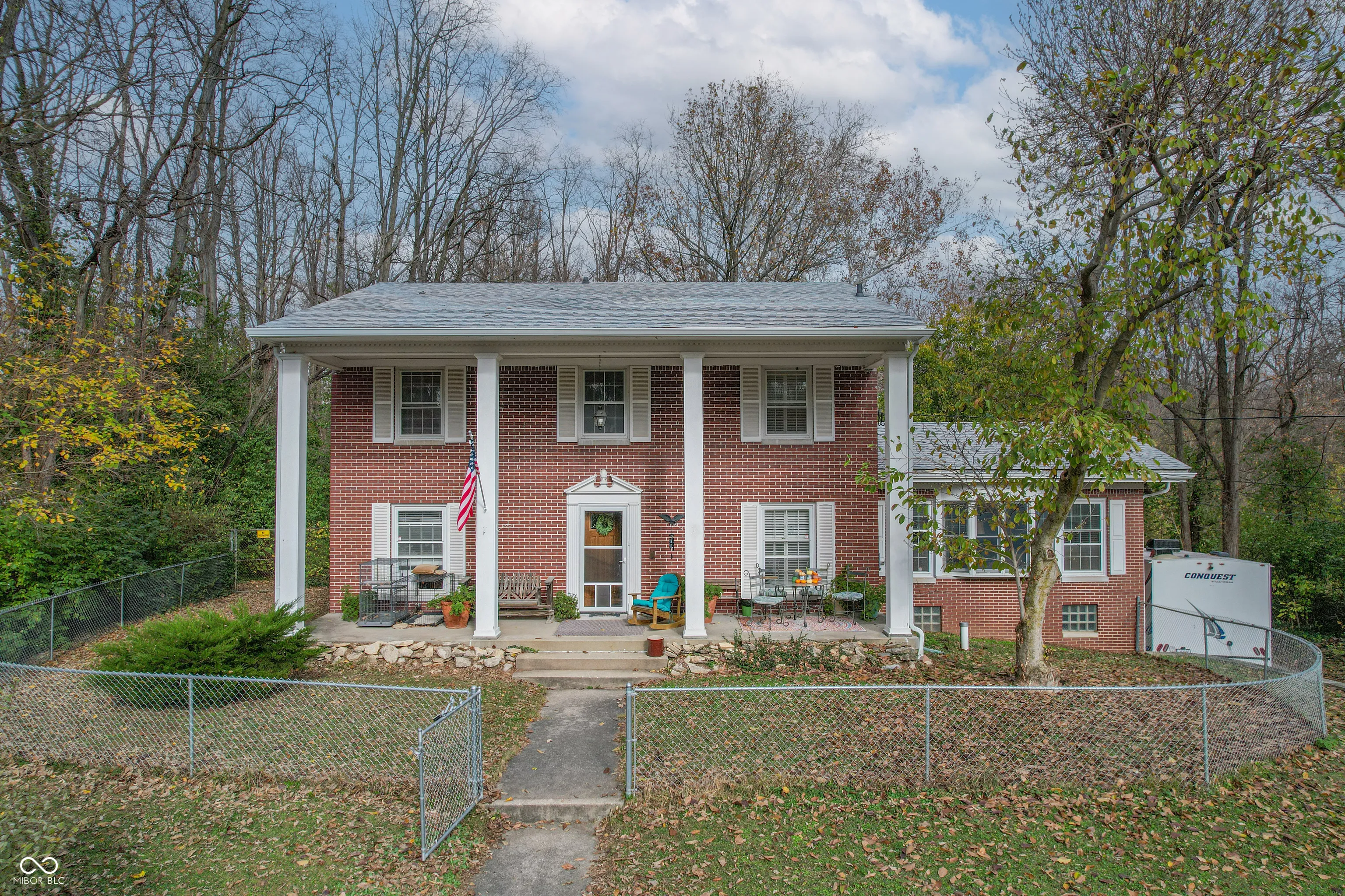 Don’t miss this prestigious, iconic, south side, colonial, home with a very traditional layout. Front of home as it appears once you pull into the long circular concrete drive onto nearly 2 acres is a vision to see…The sophisticated full front covered porch is great for relaxing or entertaining. The large rear deck pre wired for a hot tub on a separate breaker. The large deck offers a very private view of the scenic park like setting. The land backs up to Buck Creek. Enter into the 2 story foyer, large rooms thru out, formal Living Rm., Formal Dining Rm., Extra large family rm with gas fireplace, large bay window. Windows have 2 inch white country shutter blinds. Original redwood hardwood floors thru out, all rooms extra large, lots of storage, 1/2 bath on the main floor, 2nd floor has 3 bedrooms and spacious full bath. Large full bath in the basement, newer power flush toilets, laundry rm. with washer and dryer included and has lots of cabinets, basement bonus room makes for an extra living space with walk in closet,separate entrance to the outside, home recently painted with trendy colors, roof 2019, refrigerator & gas range included