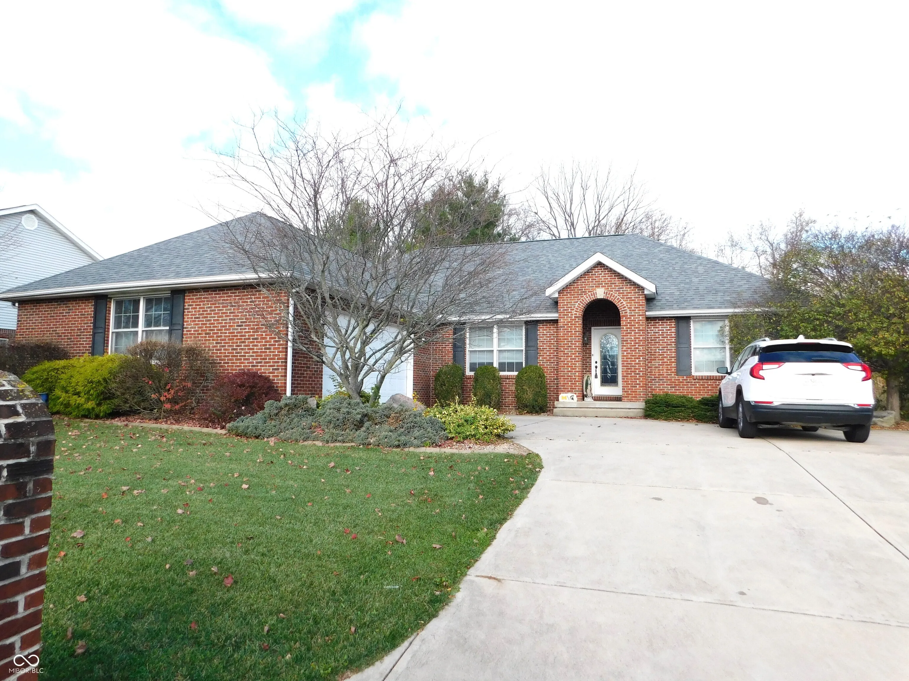 Mill Ridge Estates! 3 bed/2 bath all Brick home with split floorplan. Full unfinished basement that is plumbed for a bath. Gas log fireplace in great room w/hardwood floors. Formal dining room w/hardwood floors. Eat-in kitchen w/breakfast nook and pantry. Lots of upgrades. Master suite has hardwood flooring, walk-in closet, garden tub and separate full walk-in shower. Deck outback overlooking large backyard. 2 car attached garage with new opener.