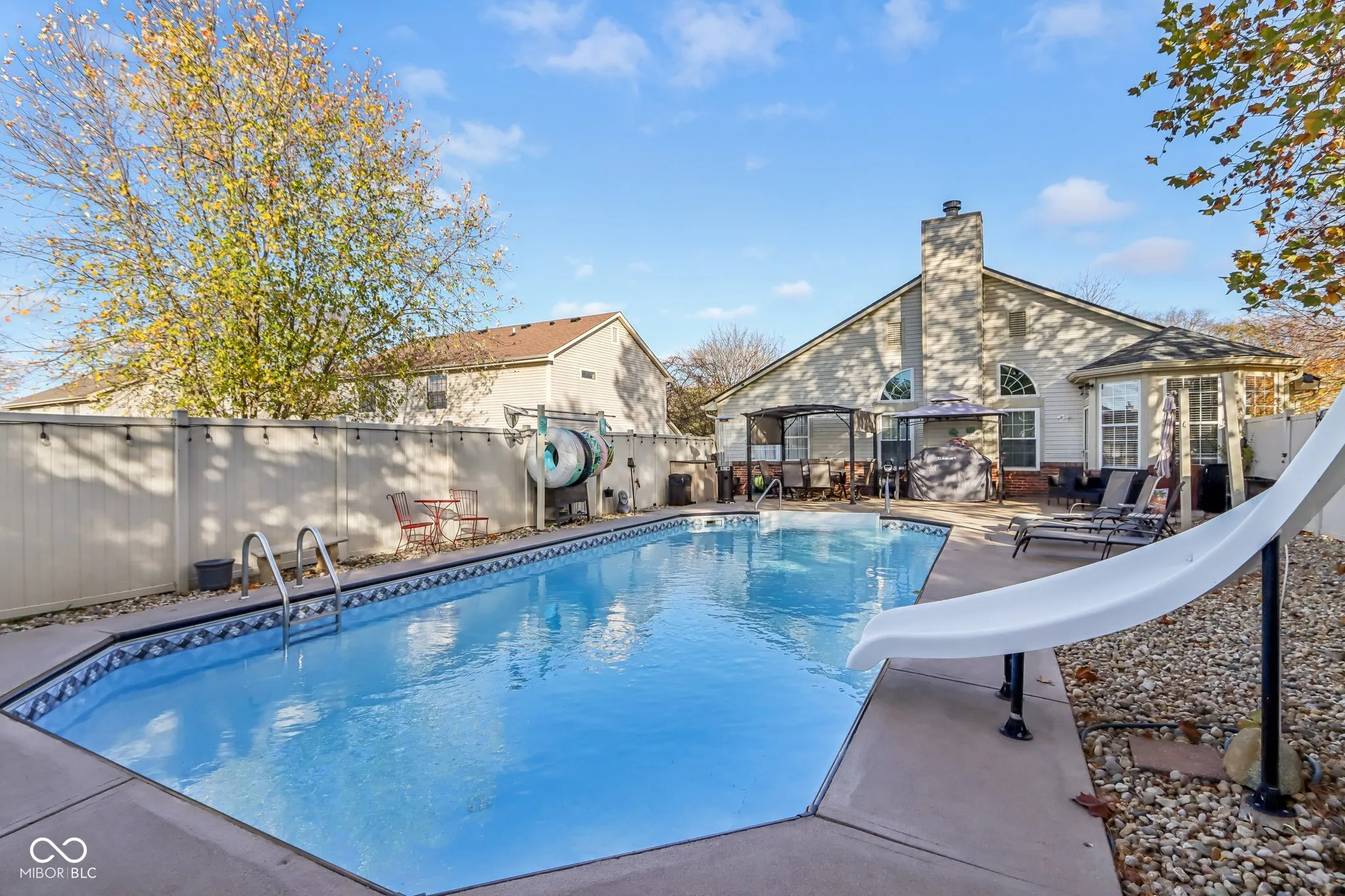 This beautifully maintained and updated 3-bedroom, 2-bath home offers a spacious open floor plan, cathedral ceilings, and a cozy wood-burning fireplace. The beautiful kitchen features new higher end appliances (Samsung Bespoke) and a charming breakfast nook. Enjoy the main floor primary suite, versatile loft, 2-car garage, private fenced backyard, and in-ground HEATED pool with a brand new liner ($10,000) Recent updates include a new roof , new flooring, new water softener, and much more. This move-in-ready home won’t last long!