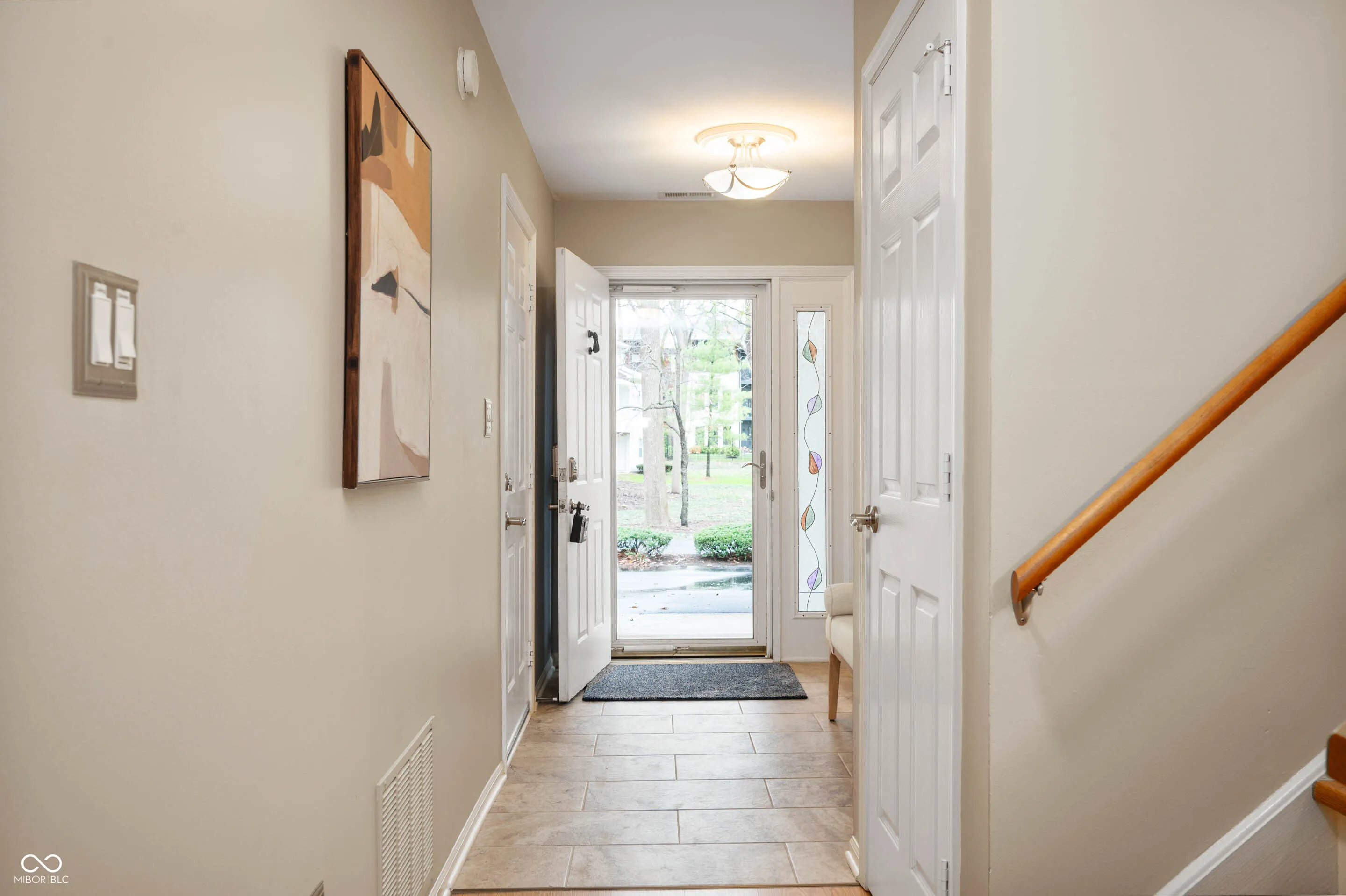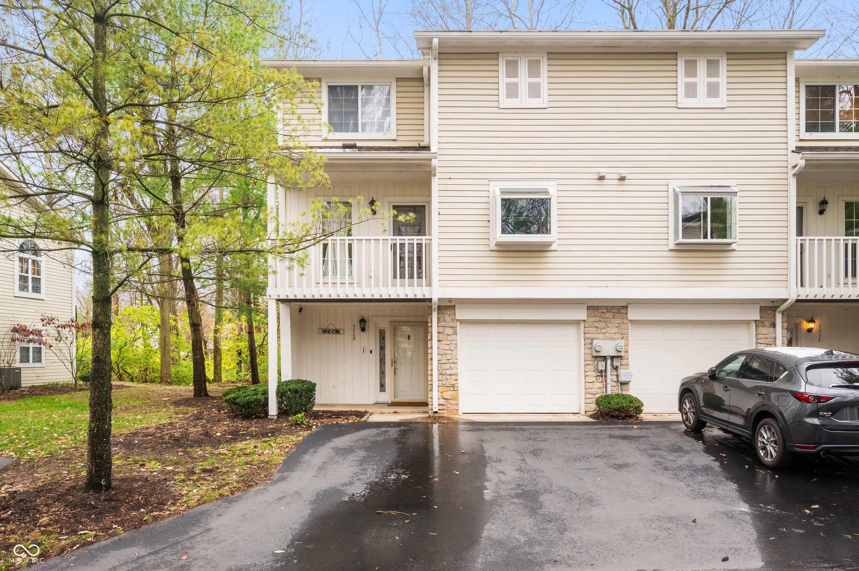 This stunning end-unit townhome in the Broad Ripple area offers a perfect combination of modern convenience and natural beauty, with 3 bedrooms, 3 full bathrooms, and three levels of thoughtfully designed living space. The main level features a private bedroom, a full bathroom, and a versatile flex space that can serve as a home office, gym, hobby or media room. On the second level, you’ll find a spacious living room with a cozy gas fireplace, a formal dining area with balcony, and a well-equipped kitchen, all complemented by an additional flex space that opens to the second story deck-perfect for entertaining or enjoying peaceful views of the surrounding wooded area. Limitless grilling with the hardlined natural gas grill. The third level boasts a luxurious owner’s suite with an updated ensuite/bathroom, another generously sized bedroom, and an additional full bathroom. This home also includes an attached one-car garage, guest parking, and covered front porch with two inviting outdoor deck spaces overlooking a serene natural setting with walking trails leading to a conservation area complete with a playground and picnic spot. The Monon Trail is directly accessible from the complex. With its desirable end-unit location and proximity to all that Broad Ripple has to offer, this home is a rare find in a vibrant, sought-after community.