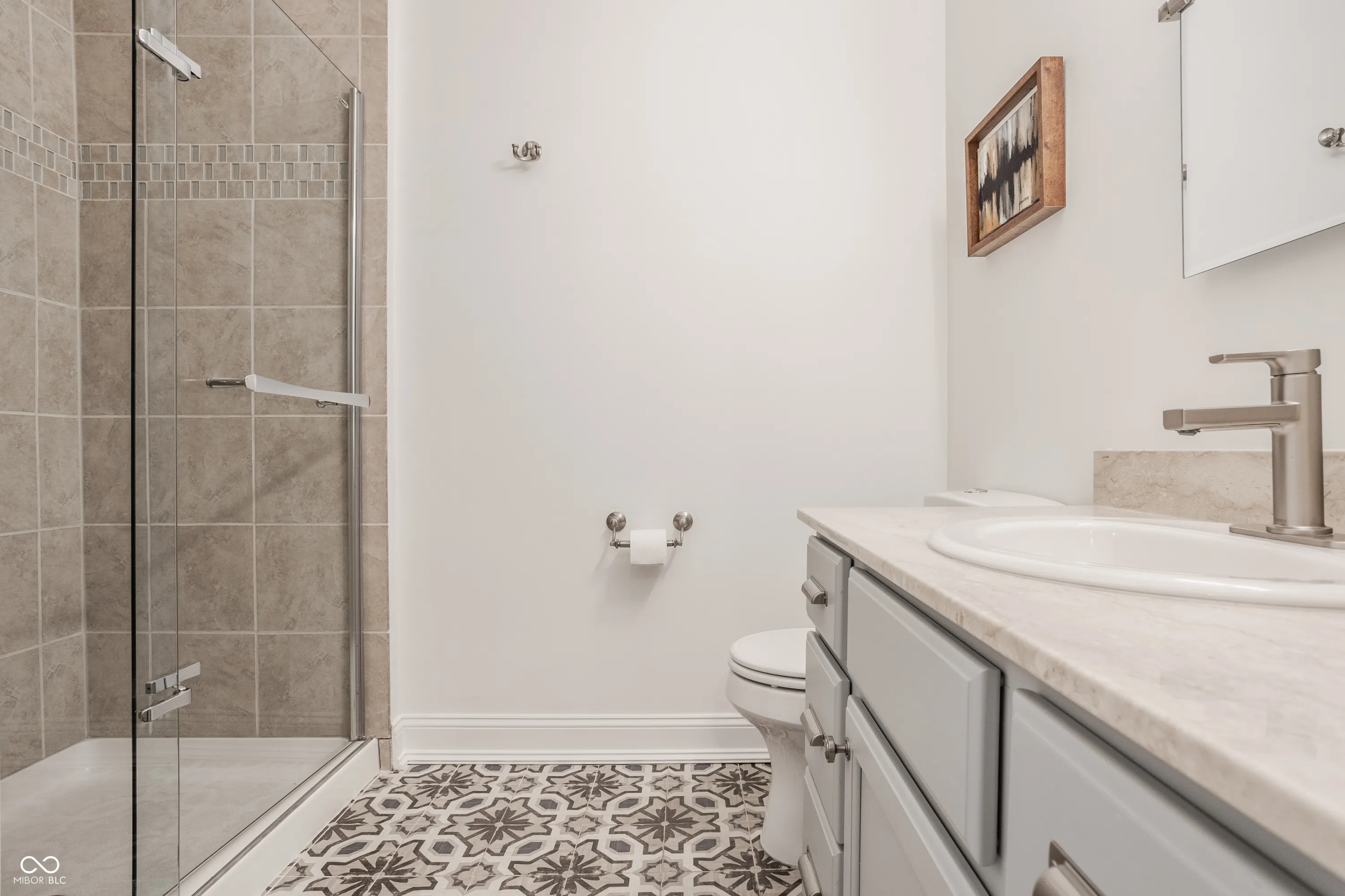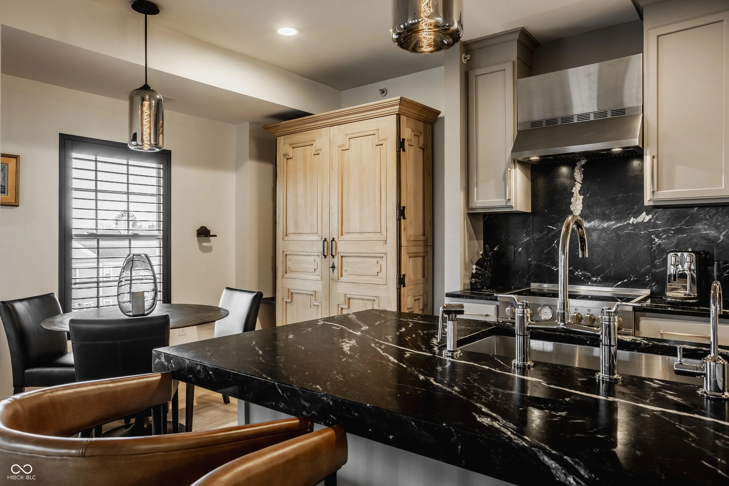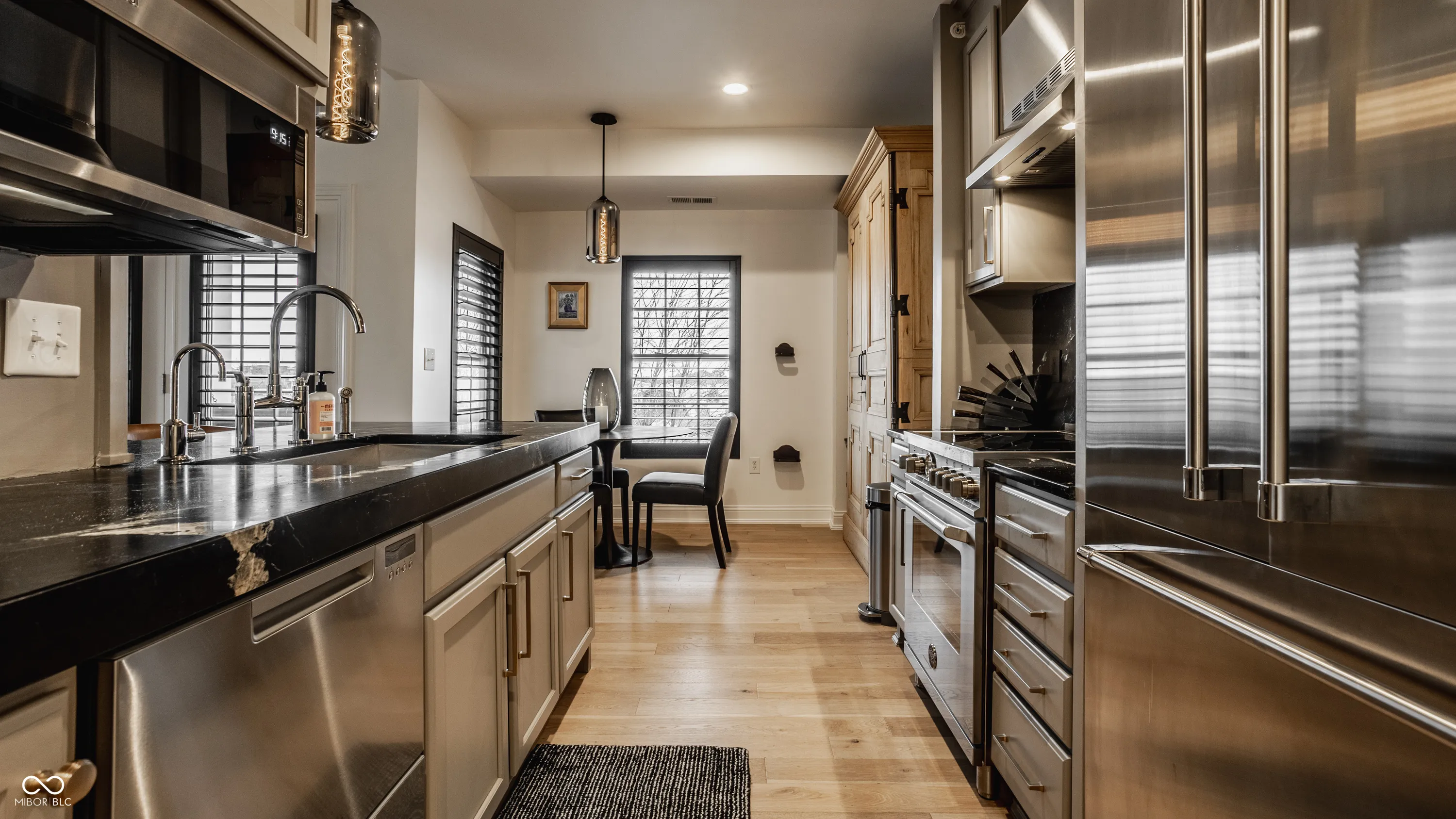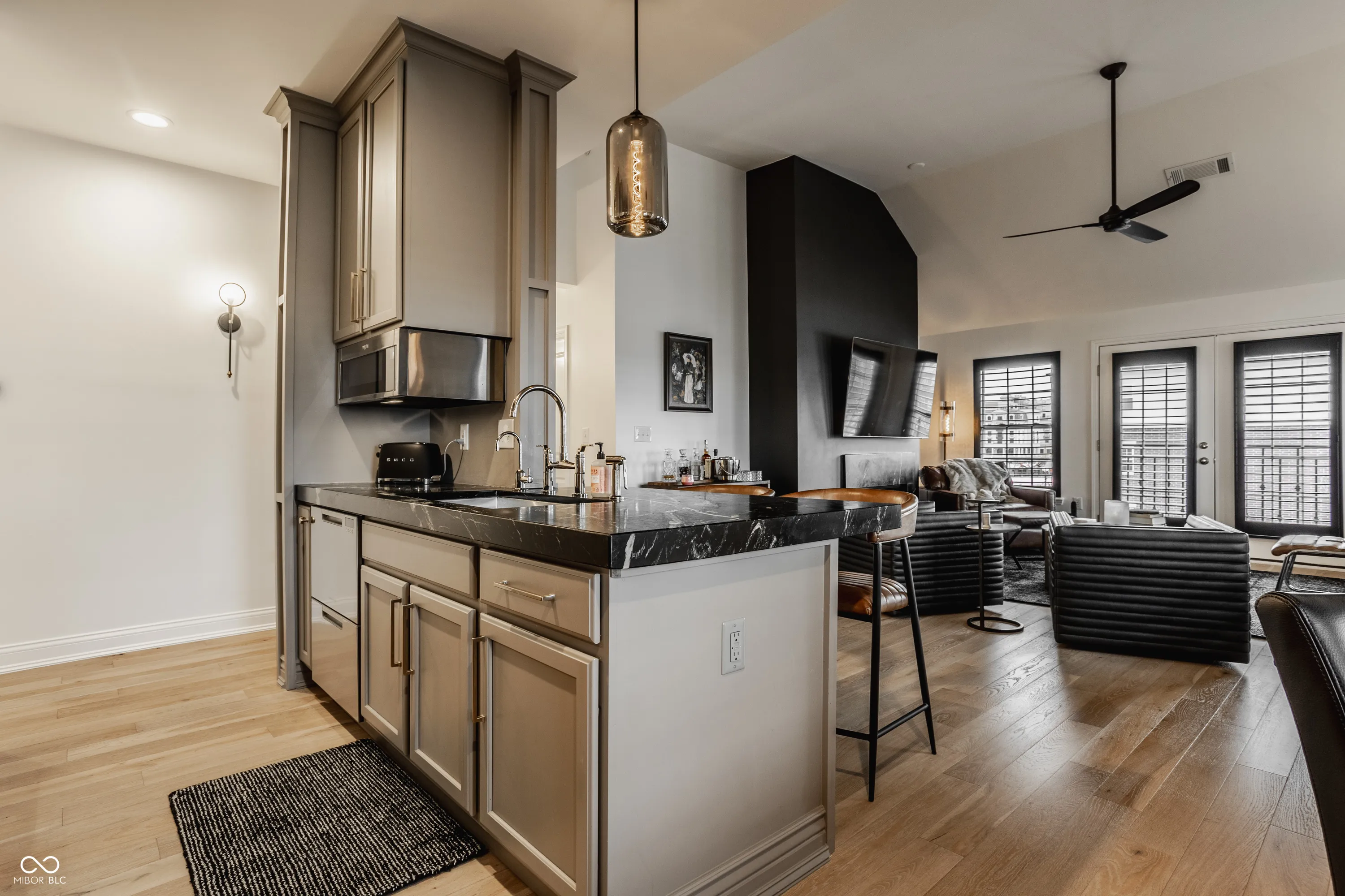 Welcome to the center of it all with this beautifully updated condo that offers the perfect combination of modern amenities and prime location. Situated in the vibrant downtown Carmel city center, you can enjoy stunning views of the Palladium and Veterans Memorial Freedom circle Pool, right from your own balcony. Stepping into this home you’re invited into a warm foyer that leads to a hall with laundry and coat storage to the left and a bedroom and bath to the right. Continuing on into an open-concept living space this condo features an updated kitchen with sleek finishes from it’s dark accent Soapstone counters and backsplash to the shiny high end Bertazzoni and Fisher & Paykel appliances that are sure to impress. The kitchen includes a reverse osmosis water filter as well as the whole condo water filtration system making the water extra extra clean. To continue, the abundance of engineered hardwood flooring throughout provides a sense of neat and consistency. Heading into the primary bedroom it offers not only great views but an ensuite that combines the bath and closet to make those busy mornings one less door to open. This Home lets you enjoy things like the farmers market in the Spring to the Ice skating rink of Christkindlmarkt in the fall. Don’t miss the opportunity to live just steps away from Carmel’s best shops, dining, and Monon attractions!