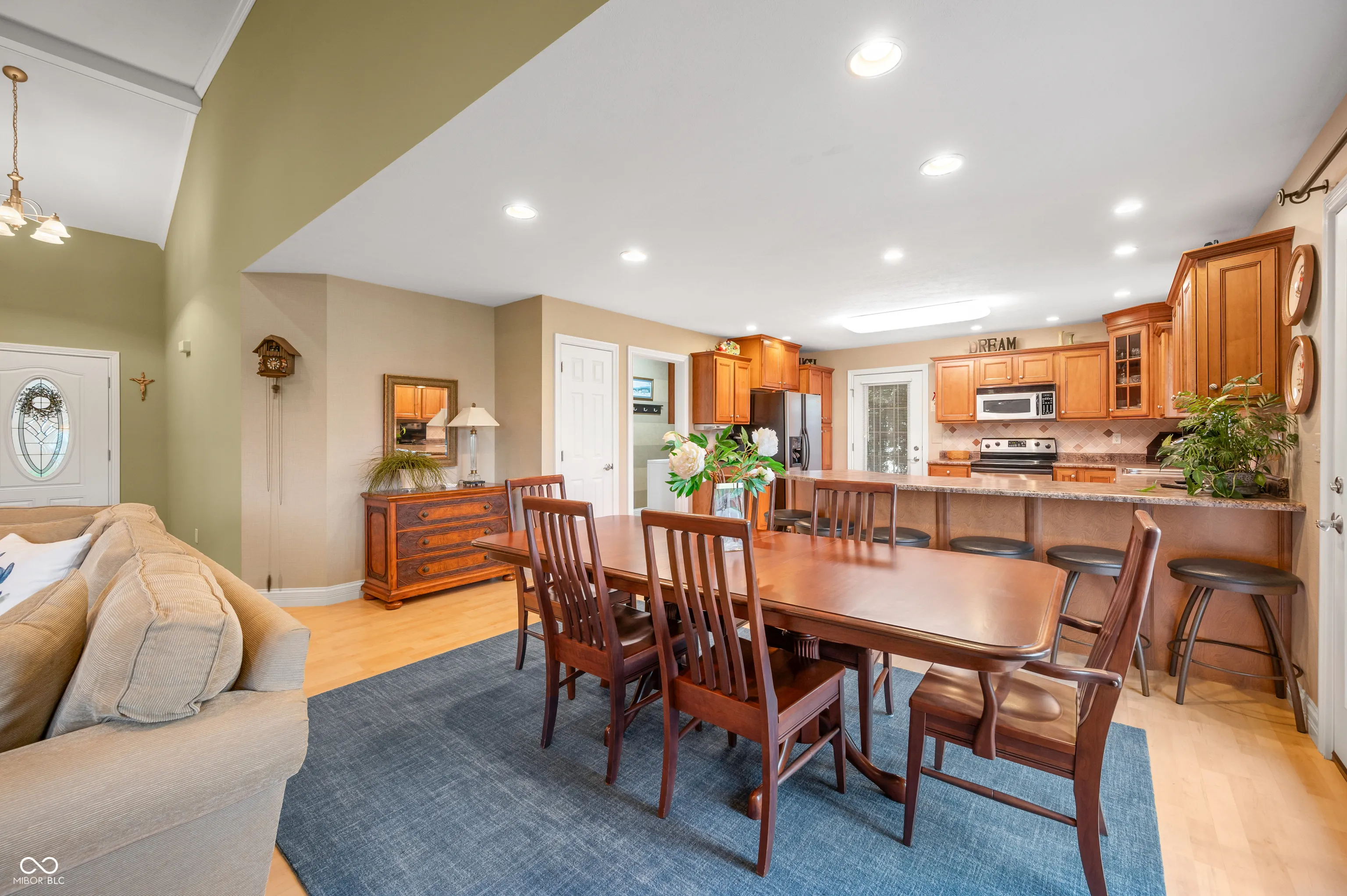 Charming ranch home nestled in a peaceful, established neighborhood! Easy access to the bypass and trail system. Very well maintained, three bedroom, 2.5 bath, open concept. This home is so well taken care of. There is carpet in the three bedrooms. This home has the only three car garage in the neighborhood. The kitchen has SS appliances and a breakfast bar that will seat 6. Primary bath with jetted tub, walk-in shower, and double sinks. Outside, you will find a very private, 12×21 covered porch. A must see!