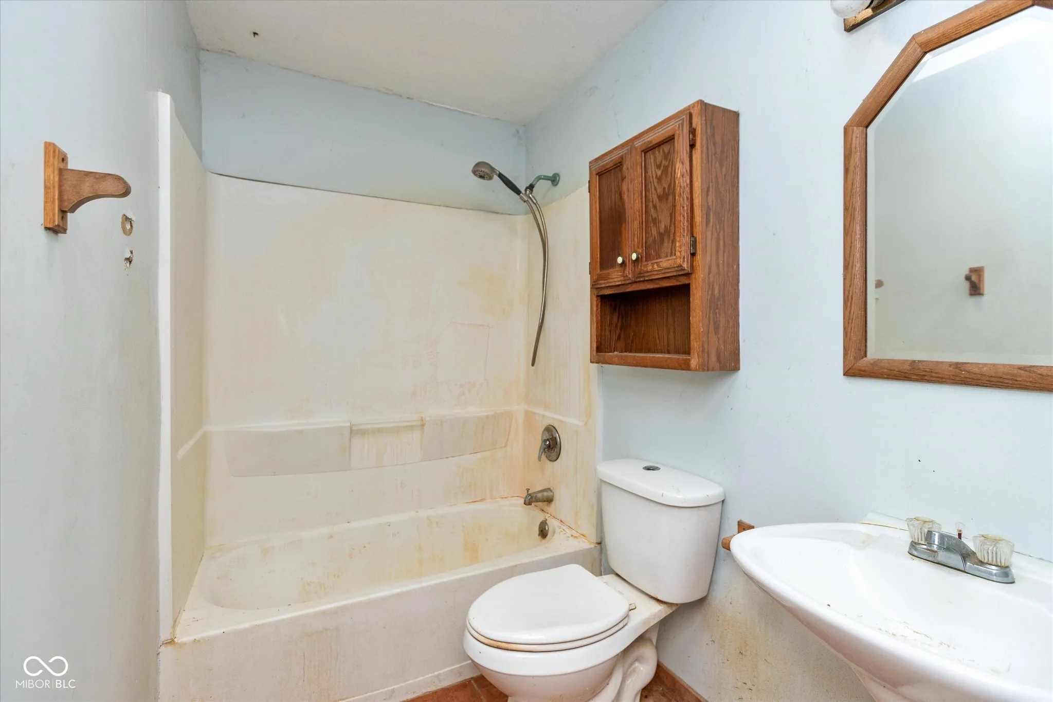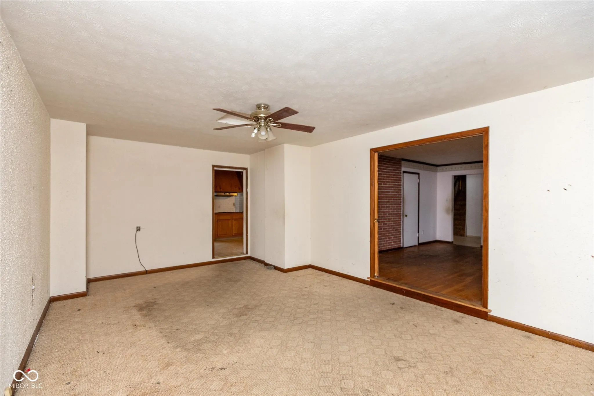 Hard to find 4 bdrm 2 1/2 bath 4 car garage on .93 Acre! This home is in need of repairs (paint, flooring, kitchen & bathroom updates) but is solid and has so much to offer. Home being sold As-Is. Main level is All Brick & offers a living room with Hardwood floors, Large family room, kitchen, dining area, 1 bedroom & a full bath & 1/2 bath along with a bonus area that could easily become the 5th bedroom. The second floor is newer addition and offers a huge Primary Suite with a private balcony. The full bath is shared with the other 2 bedrooms on the upper level (both are large rooms). The garage is accessible from the back of the home and is 24×32 and can fit 4 cars plus plenty of workshop area. The back of garage has a workbench medal frame. The back patio off of master bedroom is build of steel as well. The backyard is HUGE. HVAC is new in 2020 and is High Eff. And has a programmable/Wi-Fi thermostat. Home is on Well and City sewer (well pump 6 yr old) Value of this home fixed up is around $280,000. Home is priced to take inconsideration the condition. SELLER IS NOT INTERESTED IN LAND CONTRACTS OR “CREATIVE FINANCING” OFFERS.