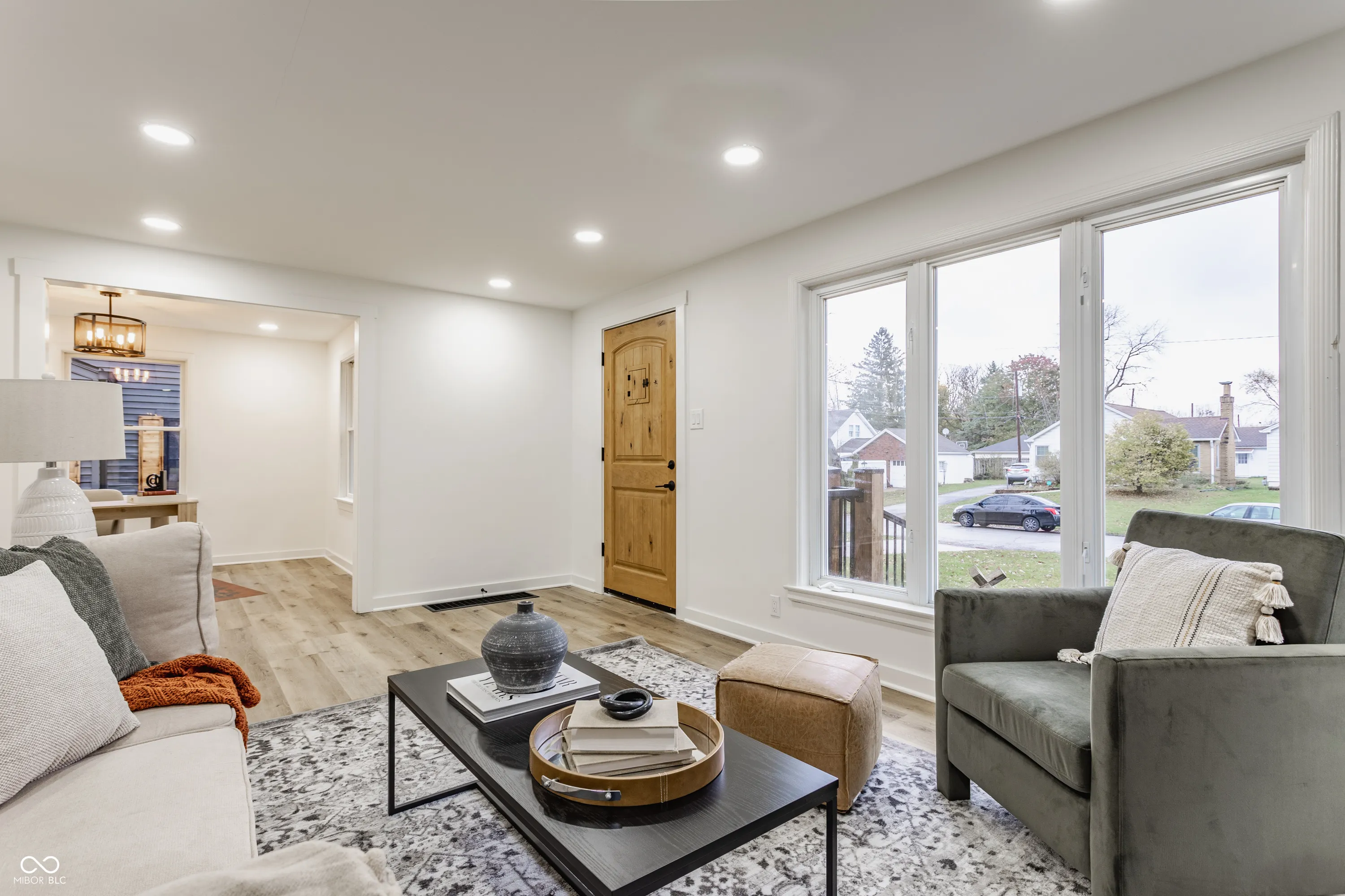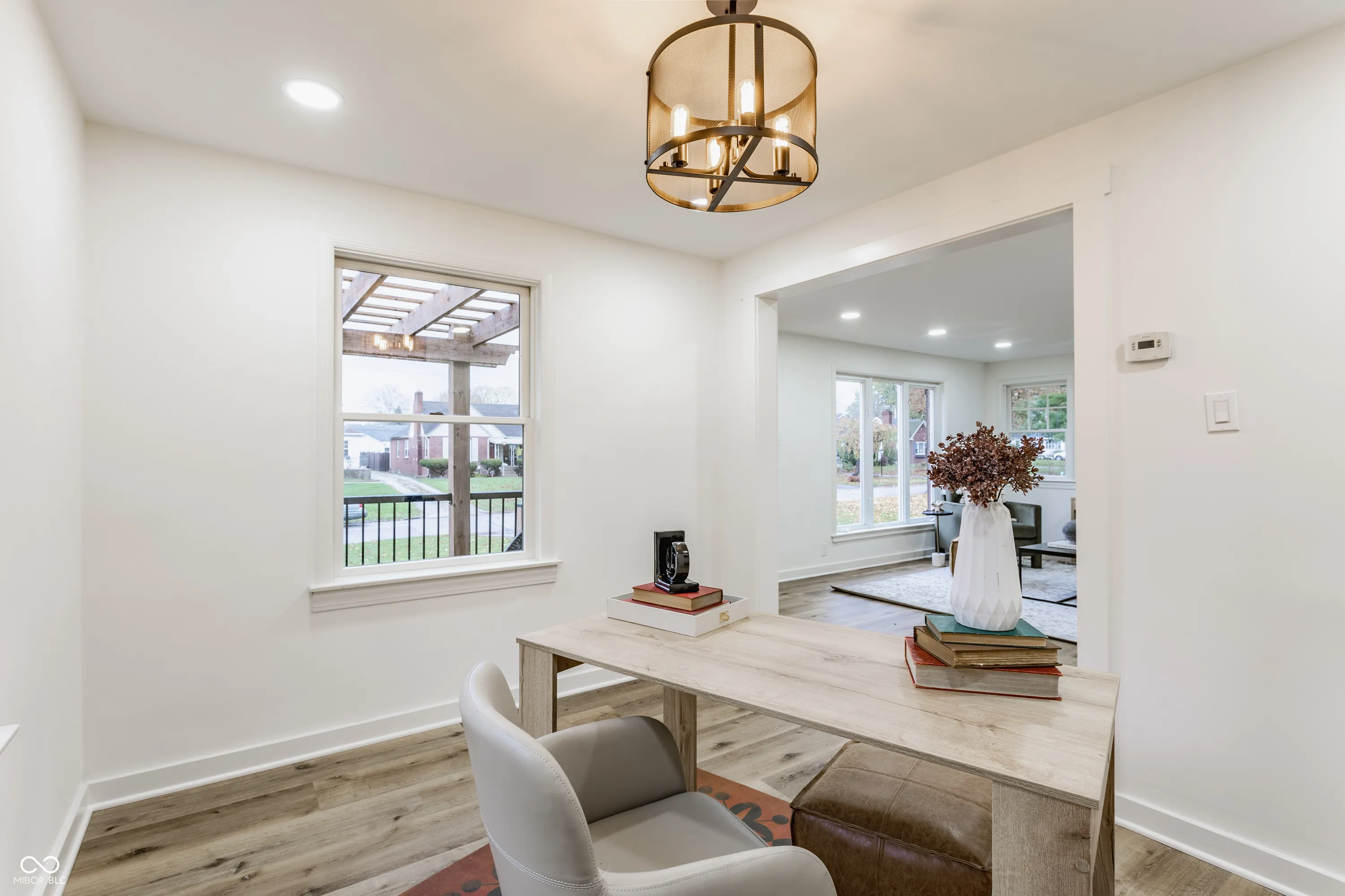 Step into this beautifully remodeled 2-bedroom, 1-bath home Irvington! From the moment you arrive, you’re greeted by the inviting front porch with a pergola-perfect for sipping morning coffee or chatting with neighbors. The original brick exterior, complemented by a speakeasy-style front door, sets the tone for the home’s unique charm. Inside, the living room is warm and welcoming, with an additional space ideal for an office, library, or formal dining. The kitchen boasts sleek maple cabinets, stainless steel appliances, and modern finishes that blend seamlessly with the home’s character. Every inch of this house has been thoughtfully updated, from the gorgeous floors to the light fixtures. The oversized backyard offers a fully fenced retreat with a large brick patio and mature trees, perfect for entertaining or unwinding in privacy. This is Irvington living at its best-don’t miss it!
