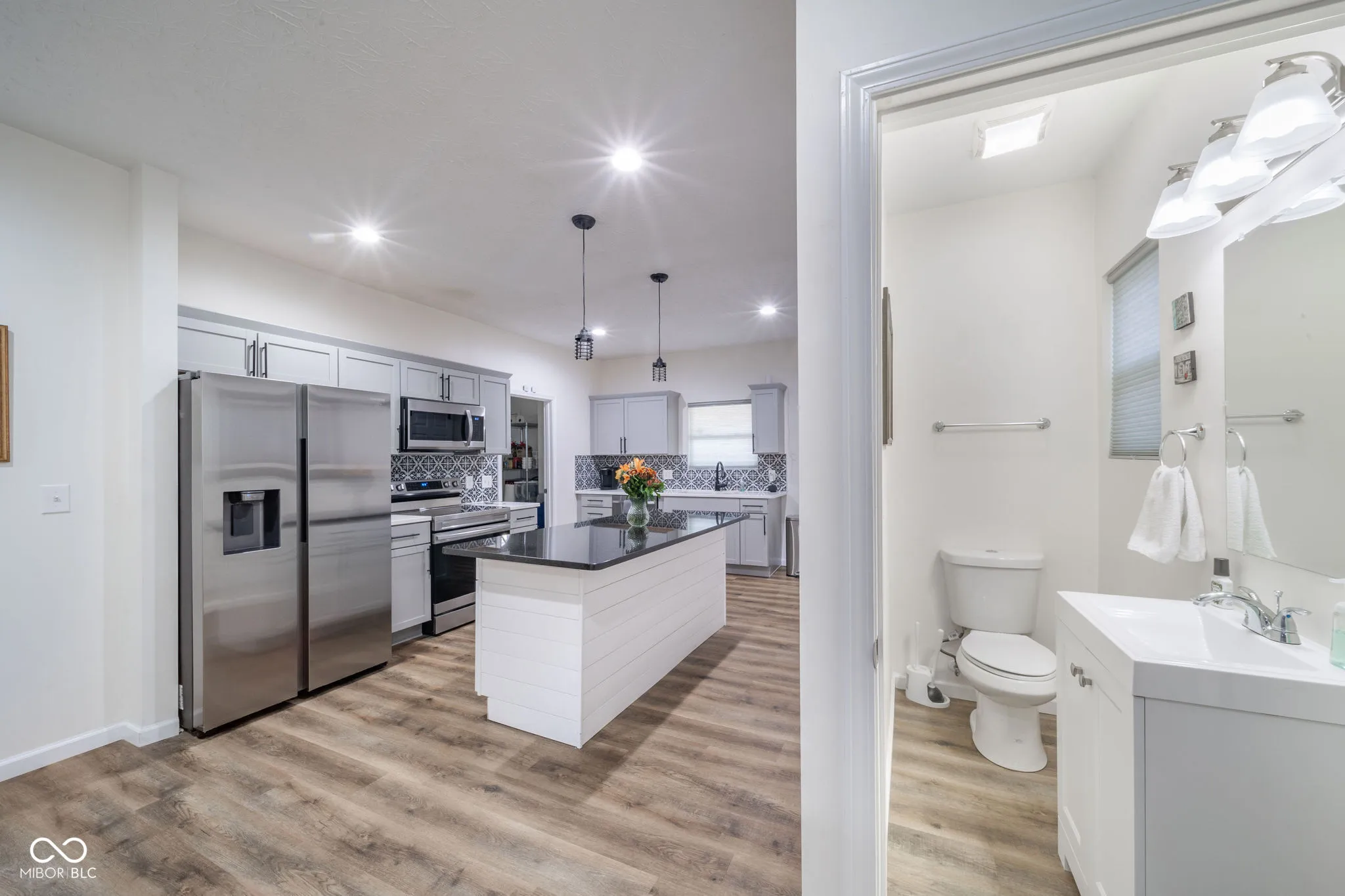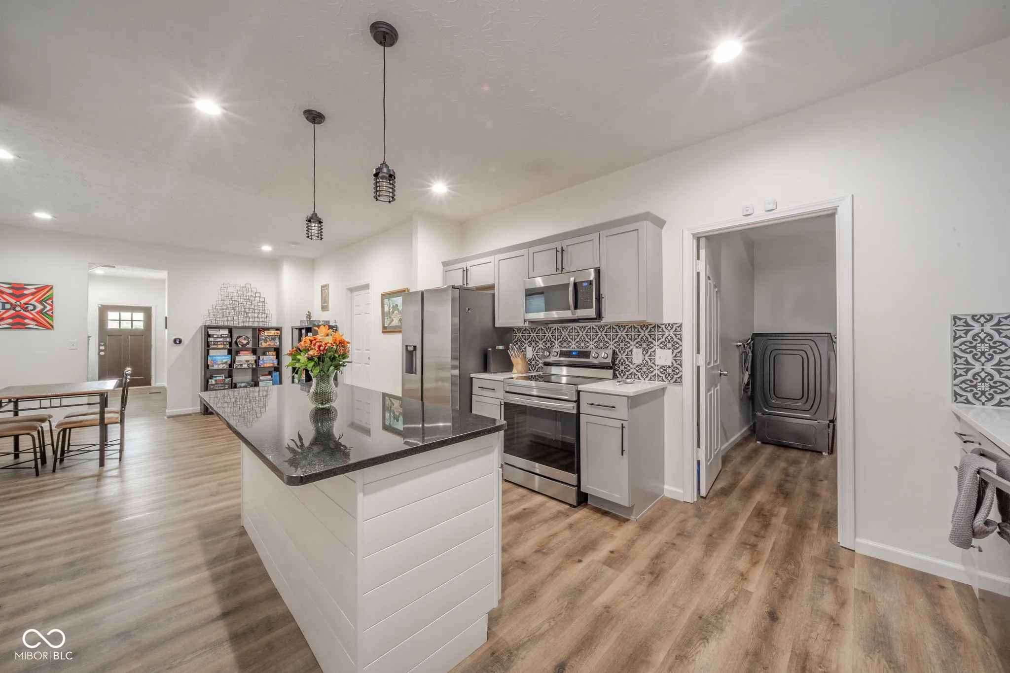 This beautifully renovated 4-bedroom, 2.5-bathroom home combines timeless charm with today’s must-have upgrades-offering the best of both worlds. Move-in ready and thoughtfully designed, it’s perfect for those seeking both character and convenience. Enjoy the ease of a primary bedroom on the main floor, complete with a walk-in closet and private bath featuring a walk-in shower. The heart of this home boasts a large center island, sleek quartz countertops, and stainless steel appliances. Whether you’re cooking dinner or hosting guests, this space delivers both functionality and flair. Stay connected with app-controlled smart devices, including the refrigerator, range, washer, dryer, and programmable thermostat. Convenience has never been this easy. The upstairs retreat has three generously sized bedrooms with walk-in closets and share a spacious bathroom, plus a loft/landing area with additional storage. The home’s original staircase and other period details blend seamlessly with modern updates, creating a space full of warmth and personality. Relax on the front porch with your morning coffee or unwind on the back deck overlooking the backyard-both are perfect for enjoying Indiana’s seasons. Benefit from a newly installed sump pump and drain in the basement that will provide peace of mind for years to come. Every detail has been carefully thought out, from the mudroom adjacent to the kitchen to the well-planned flow of the home’s layout. You’ll find space to grow, gather, and create memories in a home that’s ready to welcome you in.