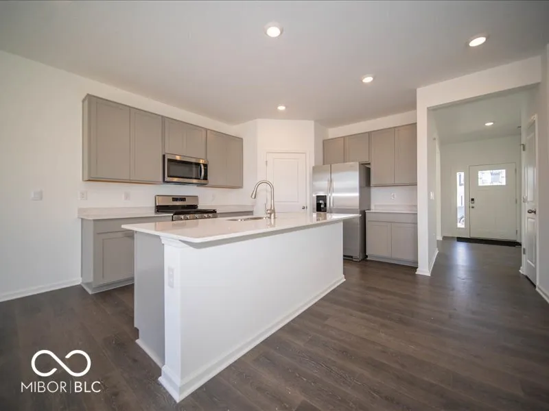 D.R. Horton, America’s Builder, presents the Henley, a spacious 5-bedroom, 3-bath home in Danville, Indiana, located in the desirable Miles Farm community. This thoughtfully designed 2-story home offers both comfort and functionality, with a main level den and a guest bedroom, making it ideal for both everyday living and hosting guests. The kitchen is truly the heart of the home, featuring a center island, abundant cabinet space, and a walk-in pantry. You’ll love the beautiful gray cabinetry and elegant quartz countertops throughout the home, adding both style and durability. Upstairs, you’ll find 4 additional bedrooms, including a spacious primary suite with its own private bath and walk-in closet, providing a perfect retreat at the end of the day. The home also includes a versatile loft area that can serve as a family room, play area, or additional entertainment space. As with all D.R. Horton homes, the Henley comes equipped with America’s Smart Home Technology, which includes a smart video doorbell, a smart Honeywell thermostat, Amazon Echo Pop, a smart door lock, Deako lighting, and more, keeping you connected and in control.