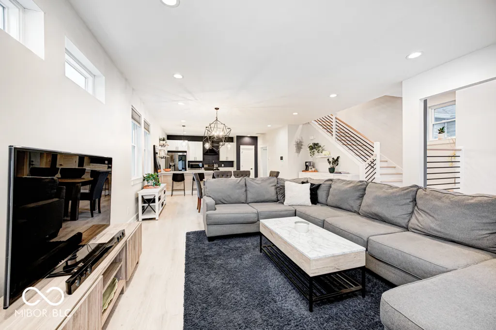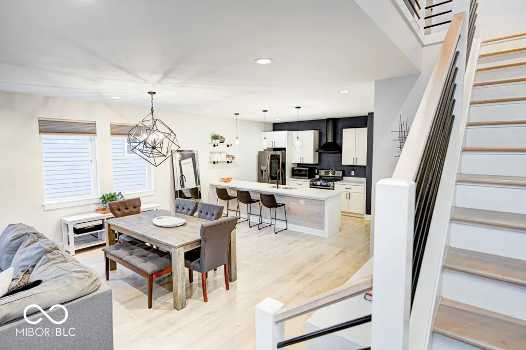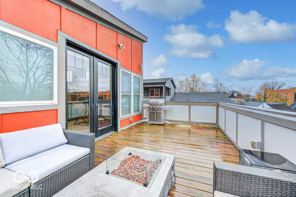 Contemporary urban elegance meets spacious comfort in the heart of vibrant Fountain Square. This three story home features 3 Bedrooms, 2 Full Baths, 2 Half Baths, more than 2,700sf of living space, and a rare ATTACHED 2 car garage. Experience modern living with an open floor plan highlighted by your custom kitchen including black stainless appliances, quartz countertops, a large island, and pantry. The luxurious primary suite provides a tranquil escape offering a covered balcony, large tiled shower, dual vanities, and a walk-in closet. The third floor is an entertaining oasis with nearly 600sf of finished space, a full-sized wet-bar, half bath, storage closet, and a 250sf deck, which is the perfect location to catch a magical sunset while savoring your favorite beverage. Enjoy a short walk to the center of Fountain Square where opportunities for dining, entertainment, and shopping abound. Excellent proximity to the core of downtown Indy and the interstate. Welcome home to 818 Olive St.