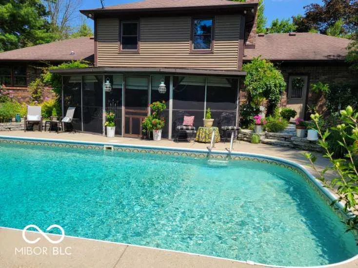 Discover your own private oasis with this charming 3-bedroom, 2.5-bath home nestled on 6 acres of picturesque land in Fountaintown, IN. Surrounded by mature trees and featuring wooded trails perfect for exploring, this property offers unparalleled privacy and natural beauty. Step inside to find a well-built home with a thoughtfully designed layout. The family room, with its rustic wood beams and cozy woodburning stove, invites you to unwind and enjoy peaceful evenings. The heart of the home opens up to a 20×9 screened-in patio, providing serene views of the sparkling 32×16 inground pool with a new filter-ideal for summer relaxation and entertaining. You will appreciate the spacious 40×24 pole barn, perfect for storage or projects, while the attached 2-car garage offers convenience and additional space. A private office provides a quiet spot for remote work or personal projects. This home seamlessly blends comfort and functionality, with quick access to the interstate for easy commuting. The best part? The stunning 6-acre property itself. Whether you’re enjoying a morning coffee on the patio, a swim in the pool, or a stroll through the woods, this home offers a lifestyle of tranquility and charm. Don’t miss the opportunity to make this unique property your own. Schedule a viewing today and experience the beauty and potential of this exceptional home.