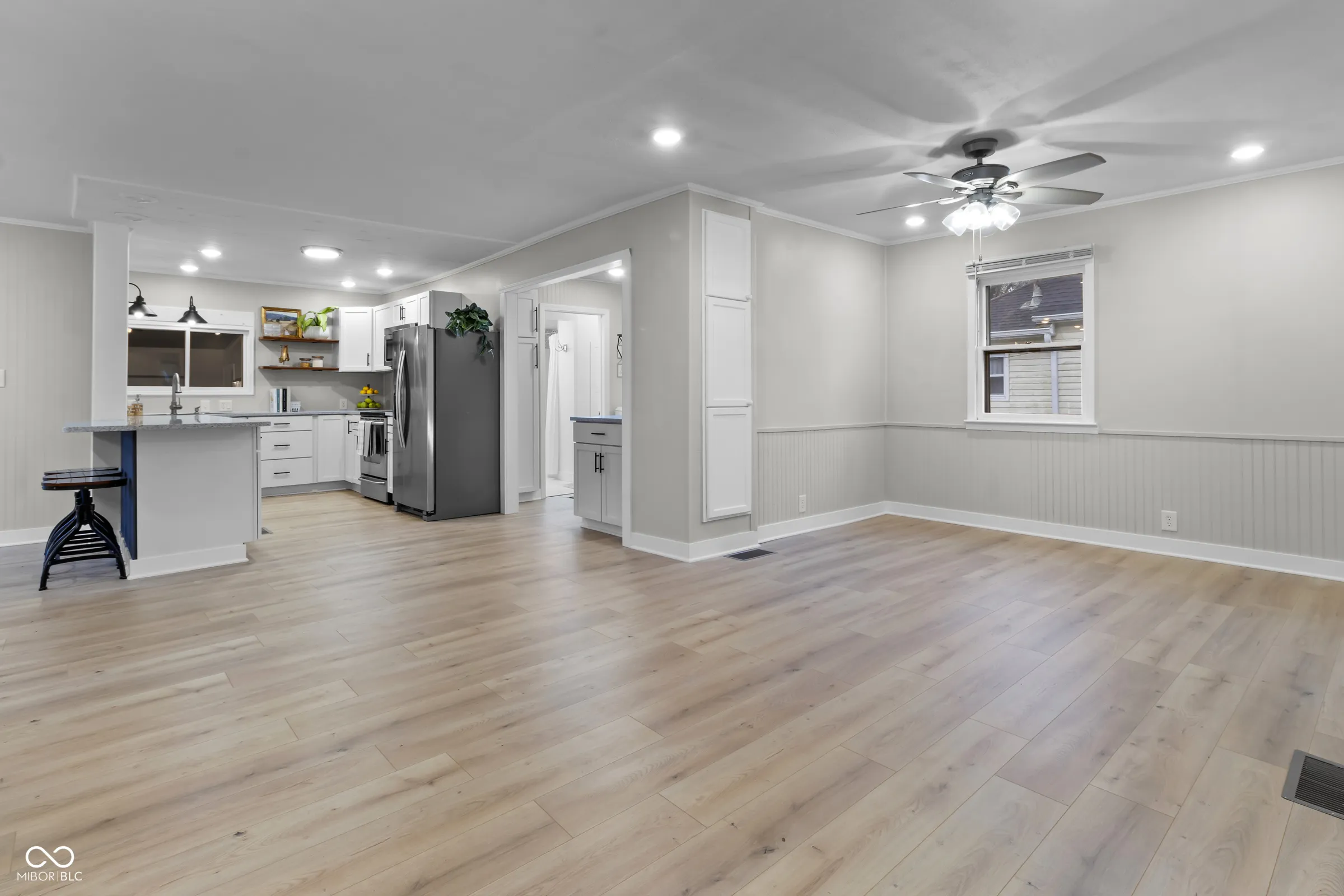 This beautifully updated 3-bedroom, 2-bath home blends historic charm with modern convenience, offering a welcoming and versatile space for its next owner. The enclosed front porch, complete with a swing and additional seating, adds character and opens to a spacious, inviting great room. The stainless kitchen features Craftsman-style cabinetry, a pantry, quartz countertops, a coffee and breakfast bar, and an adjacent breakfast room. A versatile dining or flex room, complete with built-in cabinetry, offers endless possibilities. The main-level primary and guest bedrooms, along with the upper-level bedroom and adjacent office or nursery, provide flexible living options for everyone. Sleek, tiled bathrooms add a dramatic touch, while the laundry room, equipped with a washer and dryer, balances style and functionality. You’ll love the heated all-seasons room, the herringbone paver patio with a fire pit, and the fully fenced yard – perfect for entertaining or relaxation. Just blocks from Morse Reservoir, this home offers easy access to Cicero’s best amenities and waterfront experiences. Red Bridge Park, with its marina and scenic trails, is a short stroll away, while Jackson Street provides a vibrant corridor of local eateries and shops with a variety of dining options. Convenient access to SR-31 and SR-19 makes traveling a breeze. With contemporary colors, warm-toned flooring, recessed lighting, thermal, double-hung windows, complete with blinds, an ample garage, and plenty of storage, there’s nothing missing but you!