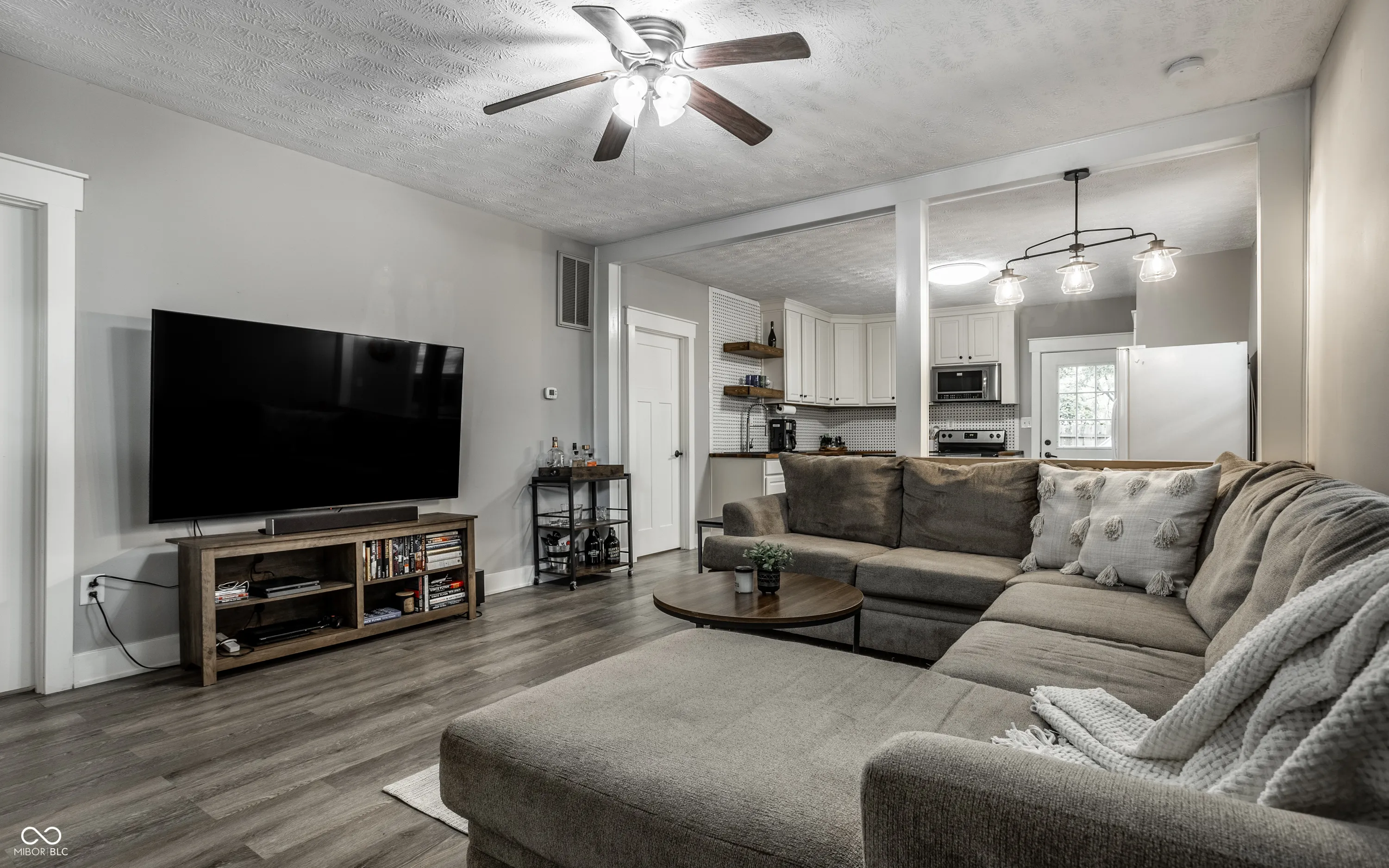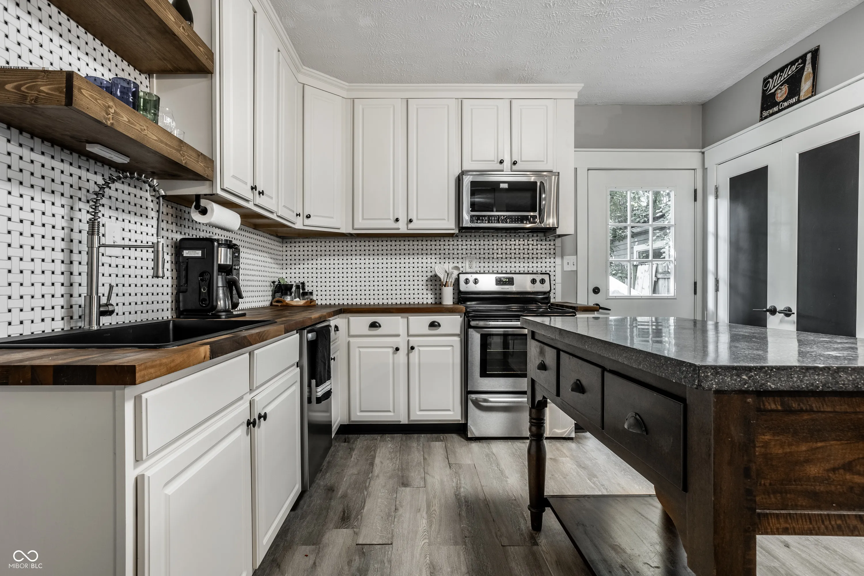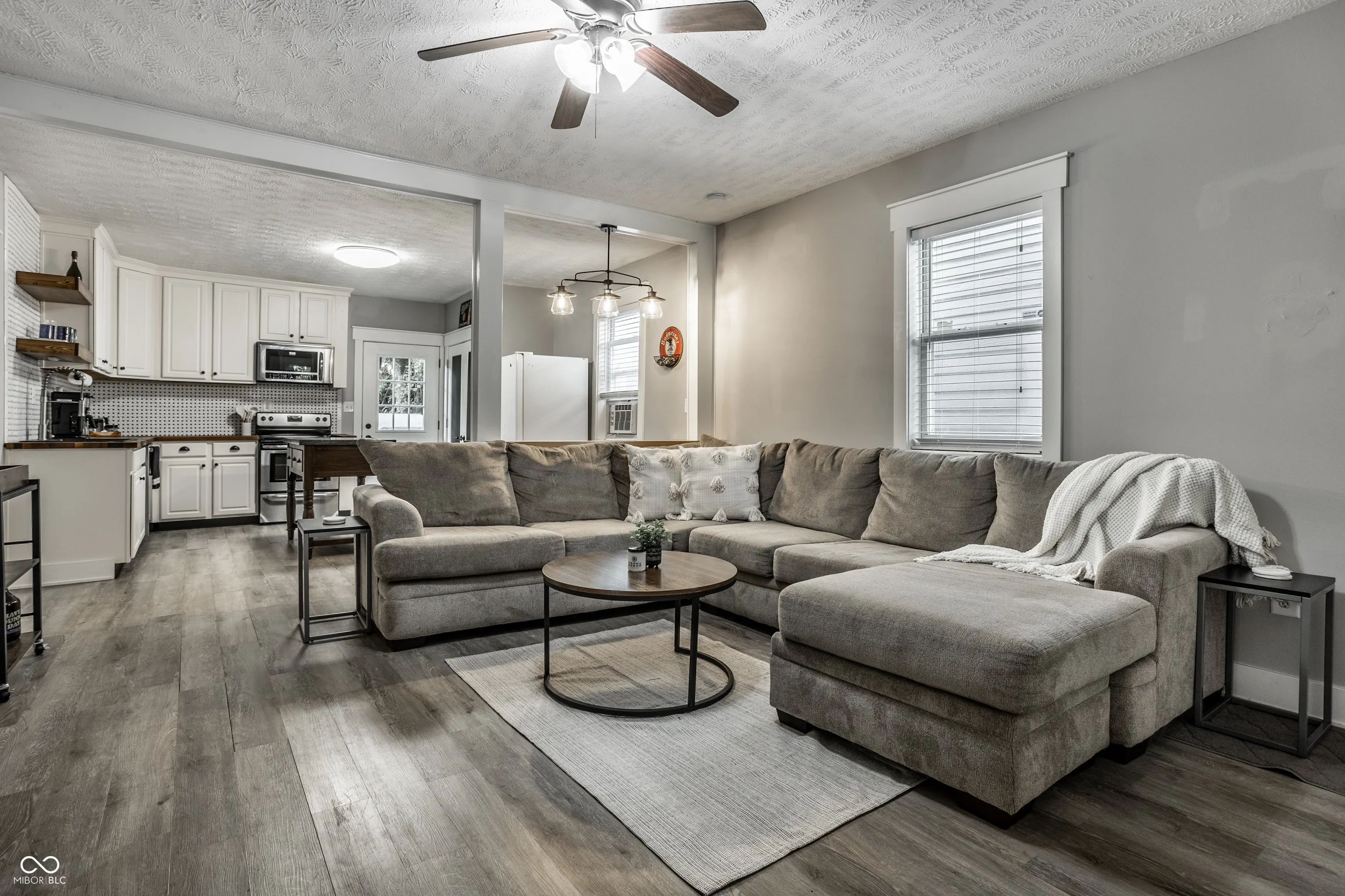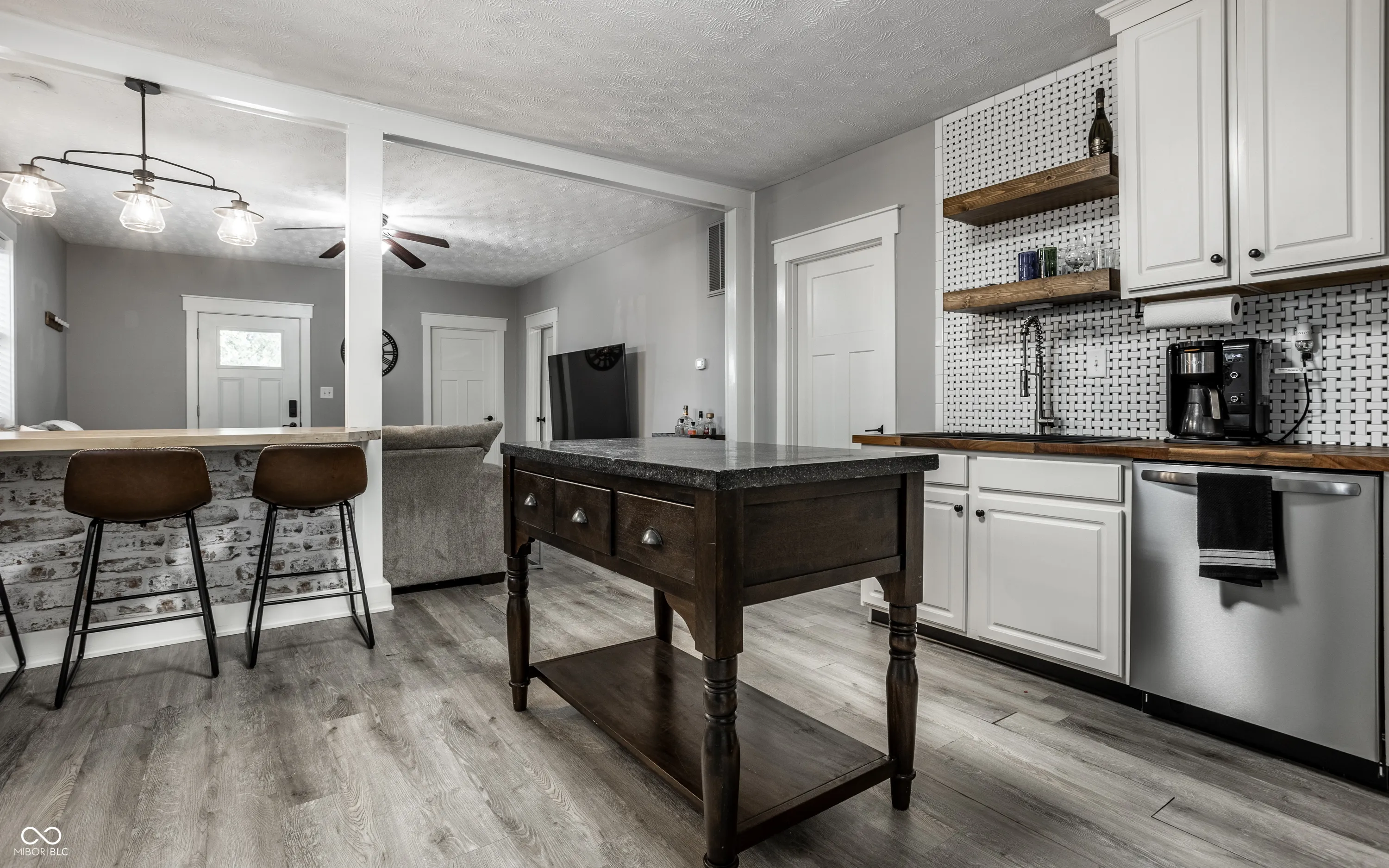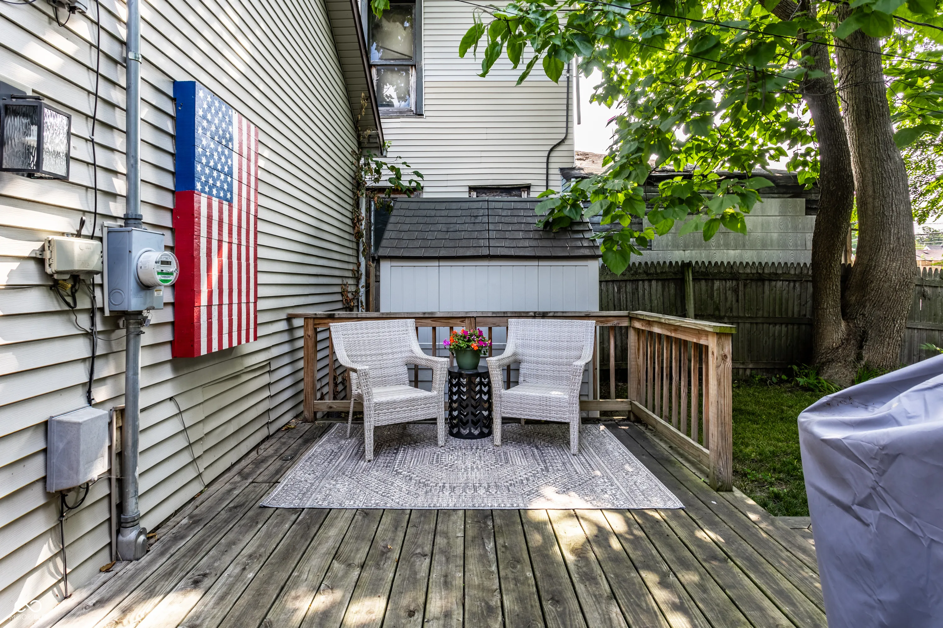 Delightful 2-bed/1 bath haven combines modern updates with historic charm, offering a perfect blend of comfort and style. Offering easy living with an open flow between kitchen and living, this home is perfect for a casual entertainer or someone who wants a no-fuss living experience close to all downtown has to offer. Recently updated kitchen including timeless basketweave tile, open shelving, a large pantry, and dining bar. Both bedrooms provide ample closet storage and neutral finishes, plus a main floor laundry and generous bath! The home also boasts a partially fenced back yard with deck and room for a fire pit plus a storage shed. Situated in a prime location, just steps away from Sam’s and Fountain Square’s renowned dining, entertainment, and cultural attraction plus all downtown Indy has to offer!