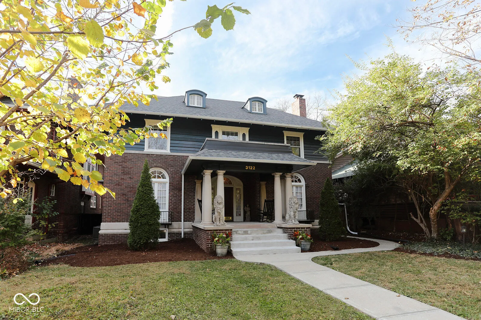 This is the one. This Colonial Revival home with Beaux Arts features is one of the only known residential design by architect Fermor Spencer Cannon, designer of Hinkle Field House on Buter University’s campus. Located right next to the famed Tuckaway House (on the National Register of Historic Places) in the Meridian Park neighborhood, this 5 Bedroom (one BR is an enclosed Sleeping Porch/Solarium) home features two full baths and two half baths spread across three levels. The formal entry features a marble floor transitioning into freshly-restored original hardwood floors throughout the home. The Living Room includes a gas fireplace with an intricate marble mantle. Step down into a sunken library and sunroom with floor to ceiling bookcases and French doors that open into your own private backyard retreat with a Koi pond and outside entertainment area with bar. The breakfast room needs to be seen to be believed with checkerboard marble floors and plaster niches illuminated by sunlight through multiple windows. The primary bathroom features a period bathtub, heated bidet and walk-in shower. The primary bedroom has a huge walk-in closet and an installed stereo system ready to go. Appliances stay in the modern and renovated kitchen. Aspiring chefs will love the huge Butler’s pantry. A full bedroom and full bath are strategically located on the third floor providing a separated area for overnight guests. The imposing front porch features limestone columns and porticos. The house has been freshly painted (inside and out), hardwoods sanded and restored, electric wiring has been updated (no knob and tube wiring here!) and the basement has been waterproofed. Other features include: another bar in the basement, a two car garage and a tree house. Appliances included. Close proximity to downtown, lots of dining, Butler campus and the Children’s Museum. A once in a lifetime opportunity to own a piece of Indianapolis architectural and cultural history.