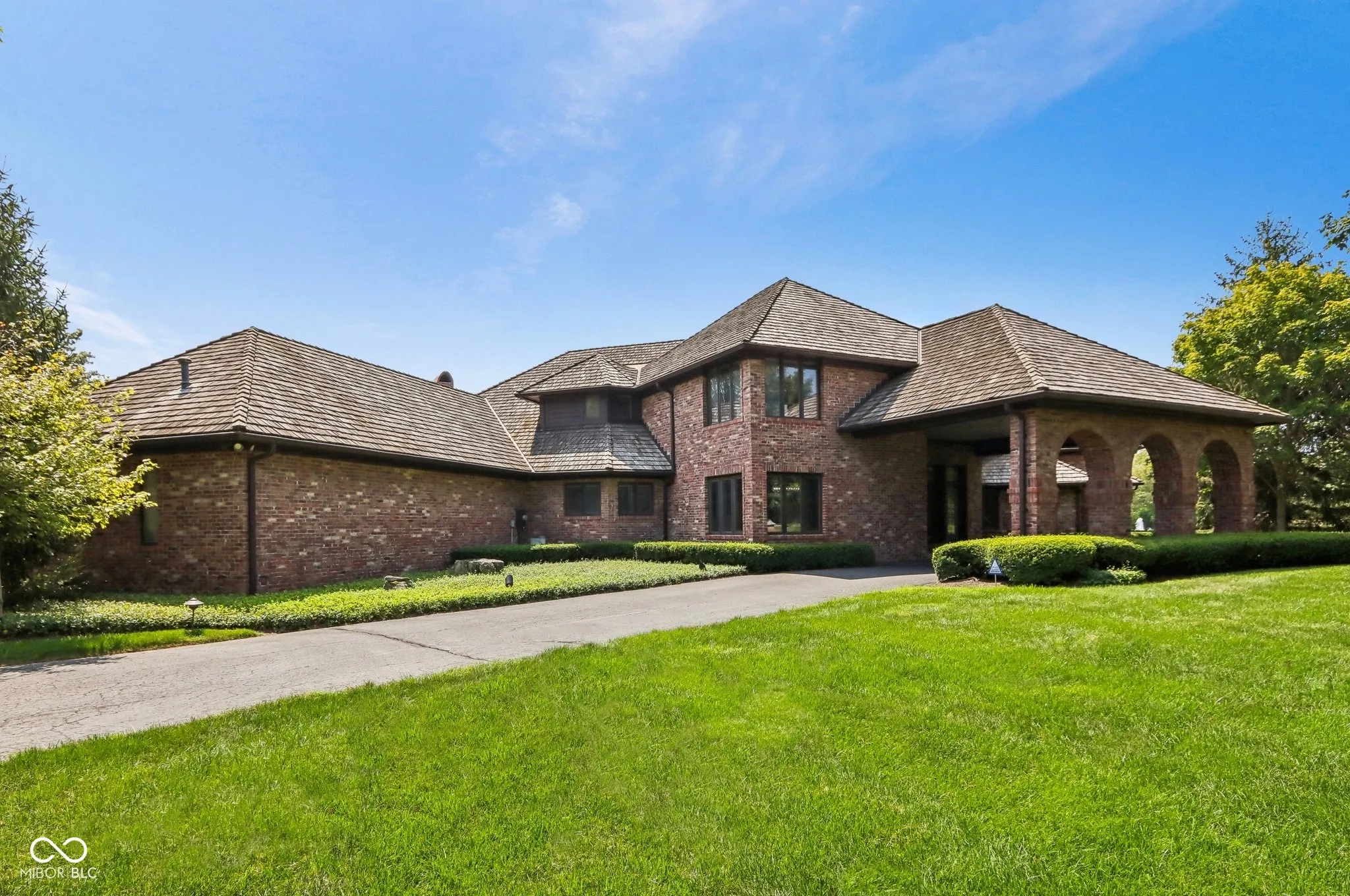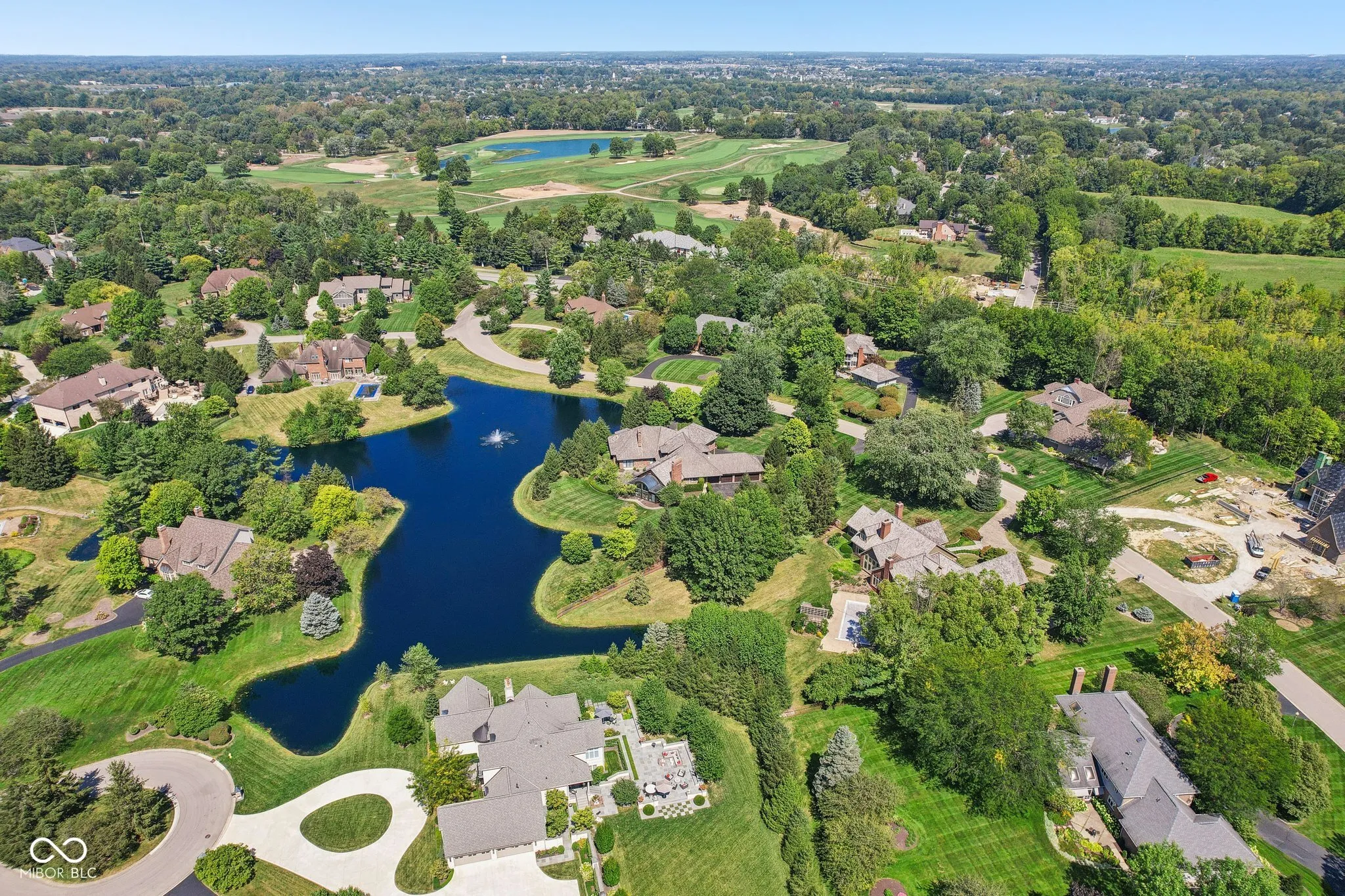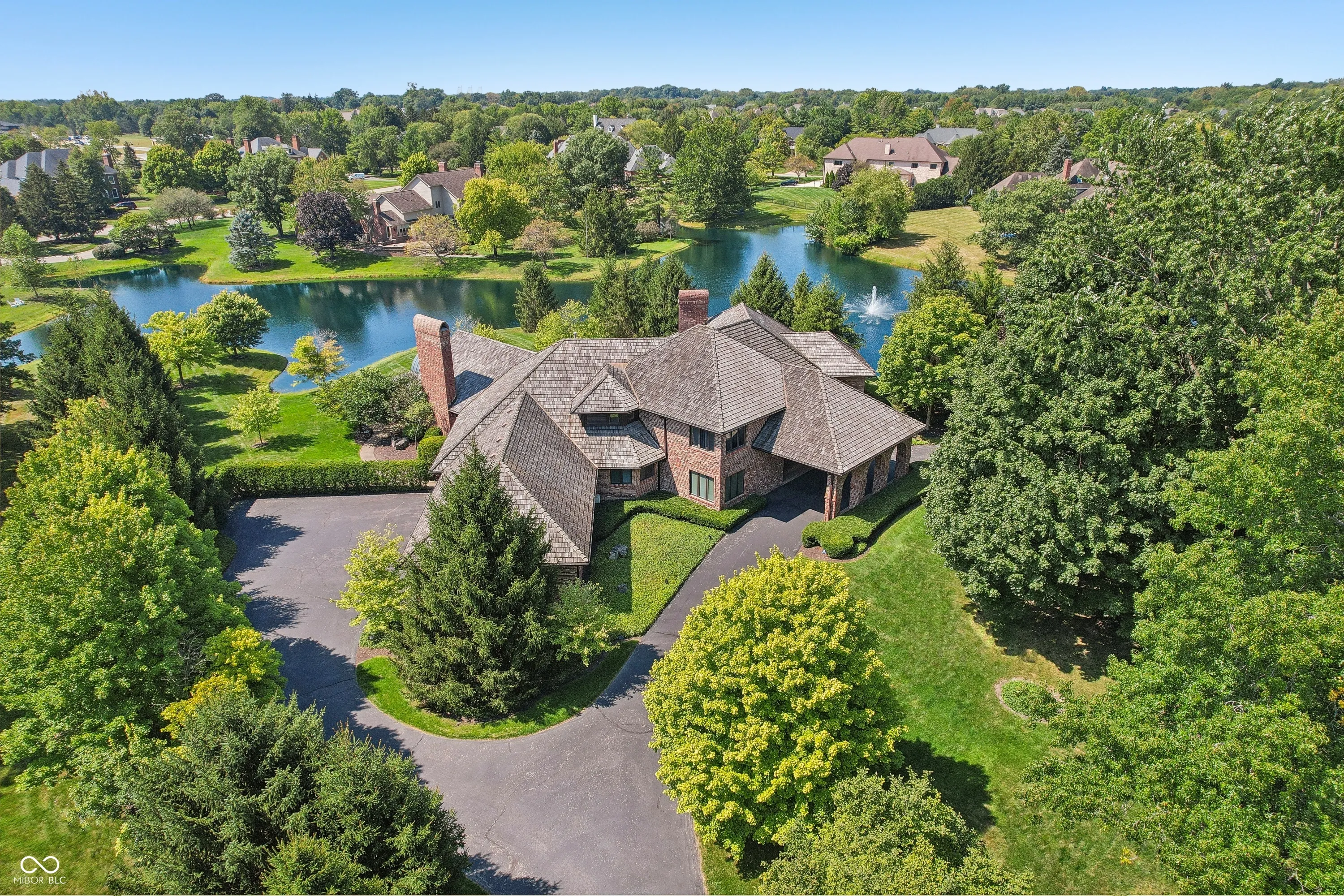 Welcome to this stunning 4 bed/5.5 bath executive home in Carmel on 2.1 acres in the highly sought-after gated community of Coppergate! Situated on one of the best lots- a serene & private peninsula w/ panoramic views of the water & mature trees. Grand porte-cochere leads to massive front double doors to welcome you into the beautiful 2-story entryway. Enjoy over 8200 sq ft of living space throughout the home- featuring 2 main level primary suites, 2 oversized bedrooms upstairs w/ Jack n’ Jill bath (perfect for family or guests) & a large finished basement. The great room feat. one of 3 gas fireplaces & updated wood flooring. As you continue on, the luxurious gourmet kitchen is every chef’s dream- w/ zebra wood cabinets, Wolf gas cooktop, new Dacor double ovens, Miele hood, Subzero fridge & SS prep island w/ sep. sink. Formal dining room off the kitchen & attached breakfast room for plenty of eating areas. The heart of the home rests in the stunning living room w/ vaulted ceilings & soaring windows looking out into the sunroom & water view. This room feat. an exquisite circular “bar room” that is perfect for hosting- plenty of storage space & all necessary appliances. And you can’t miss the exclusive custom-made wine cooler cabinet feat. 3 Subzero temp. controlled wine coolers- all of which stay! Primary suite feat. a cozy fireplace, direct access to your private courtyard, en suite bath & large walk-in closets. Second bedroom on the main level feat. stunning coffered ceiling & is currently being used as an office- has 3 spacious closets + an attached full bath- gorgeous custom built-in bookshelves included! Basement feat. large rec room + exercise rm w/ attached bath & closet! 4 car heated garage w/ epoxy flooring & sep. full kitchen for addtl prep space. Experience luxury living at its finest- privacy & tranquility within the neighborhood + convenience to all that Carmel has to offer. Back on market due to no fault of sellers.