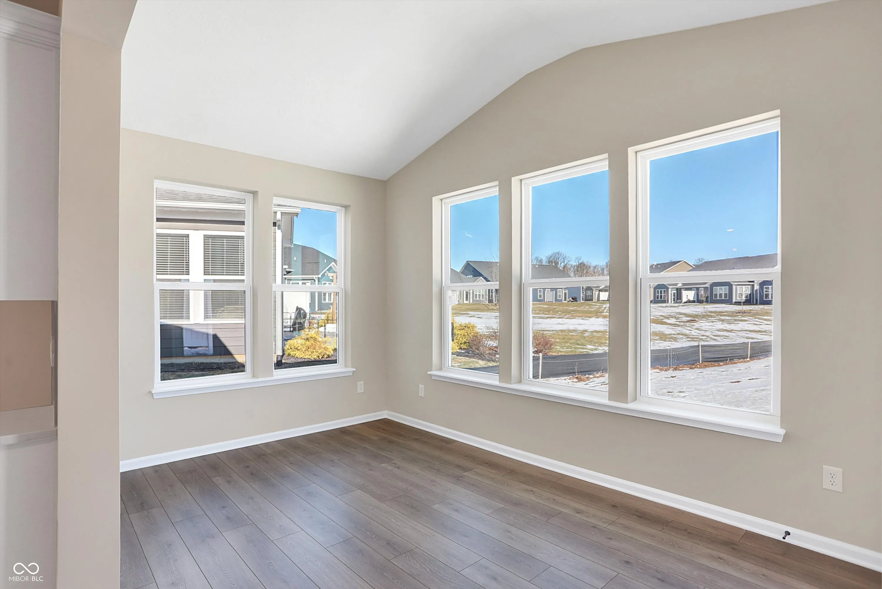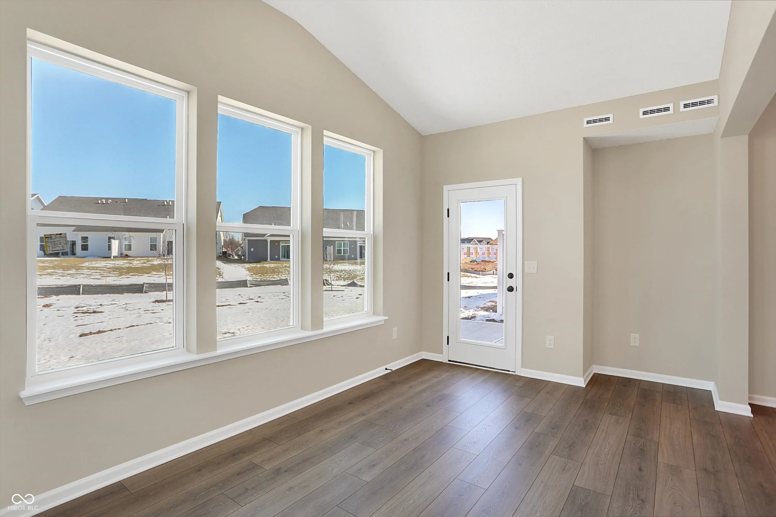Brand New Construction: Adorable duet offering the best in low-maintenance living situated on premier homesite with spacious backyard. This open concept home boasts a large kitchen with island, white cabinets, tile backsplash and quartz counters. The primary suite includes attached bath with tiled shower w/ bench and dual sinks. Other features include a sunny morning room, finished garage, gas fireplace, fully sodded yard and covered front porch. Designer finishes include luxury plank flooring in the main living areas, upgraded carpet, and designer interior paint package. Lawn care and snow removal included in low monthly fee. Schedule a tour today! Photos are of actual home with a few model pictures to show staging. Beazer is offering up to $5K toward closing cost w/use of Choice Lender if contract is signed by 3/31/25.