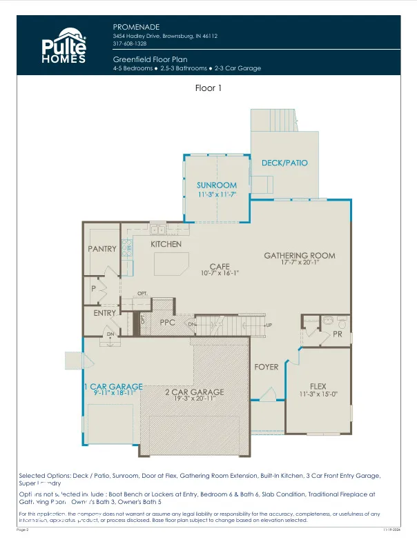 Step into the thoughtfully crafted Greenfield floorplan by Pulte Homes, located in the desirable Promenade neighborhood. The main level of this stunning home offers both style and functionality, starting with a private flex room with a door-perfect for a home office or quiet retreat. The gourmet kitchen features Landen Stone Gray cabinetry, Arctic White quartz countertops, built-in stainless steel gas appliances, a large pantry, and a central island. The kitchen flows seamlessly into the cafe dining area, an extended gathering room, and a bright sunroom, offering ample space for entertaining. Additional highlights include a Pulte Planning Center, an Everyday Entry for added organization, and Luxury Vinyl Plank flooring throughout. Step outside to the patio just off the sunroom to enjoy outdoor living at its best. Upstairs, the spacious owner’s suite is a true retreat, featuring a comfort-height vanity with double sinks, a tiled shower, and a walk-in closet. Three additional bedrooms, all with walk-in closets, provide plenty of room for everyone. A 19×18 game room with a door offers flexibility for work, play, or relaxation, while the oversized laundry room ensures everyday convenience. A 3-car garage completes this incredible home, delivering both functionality and storage. Discover the perfect blend of modern design and thoughtful details in the Greenfield floorplan! The Promenade neighborhood offers direct access to the popular B&O Trail, walking paths, and a convenient location along Northfield Drive, less than a mile from Ronald Reagan Parkway. Residents enjoy proximity to Downtown Brownsburg, shopping, dining, and entertainment, with easy access to I-465 via I-74. Brownsburg Schools and included high-speed internet and TV through HOA fees make this community an ideal place to call home.