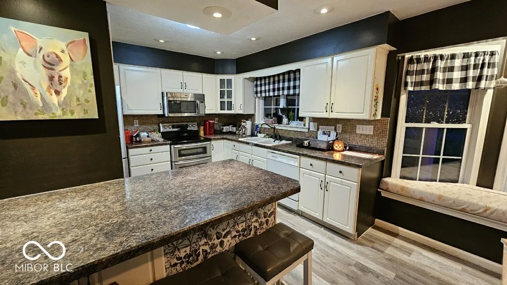 What a find! 3 bedrooms, 2.5 bath split Ranch on an acre of ground with an additional half acre across the road with your personal stocked lake. A total of 1.5ac of property. Located at the end of the road, access to Henry Wilson Park walking trail, community fire pit, frisbee, golf, and gardens. The home features a large great room with built-in shelving and gas fireplace. The den/library cathedral ceiling, and sunroom also with cathedral ceiling and door surround, walking out to a freshly painted deck. A 6ft rear chain-link fenced, great for the animals. A She shed, man’s cave, or hobby space, whatever your preference, the building has electric, heat and cooling. 2-car finish garage with 1/2 bath, service door, large driveway for parking, and shed for additional storage. Playground equipment and trampoline stay. Pool pump/equipment is still in tack, but pool has been removed. New A/C unit, new gas tankless hot water heater, new water softener, new barn doors, newer kitchen and dining flooring, some new light fixtures, washer, dryer 6 months, new garage door motor. Crawl access in the garage.