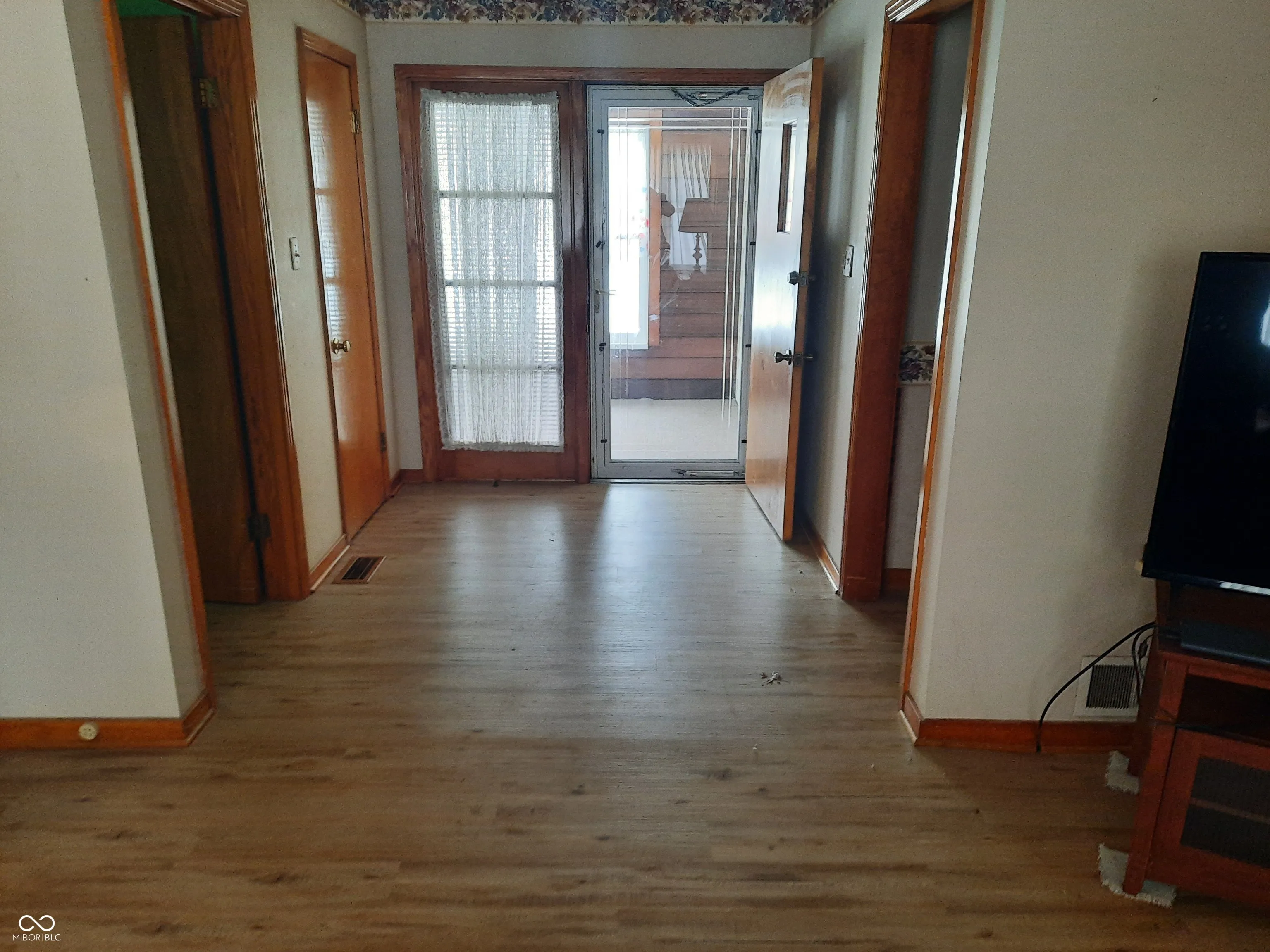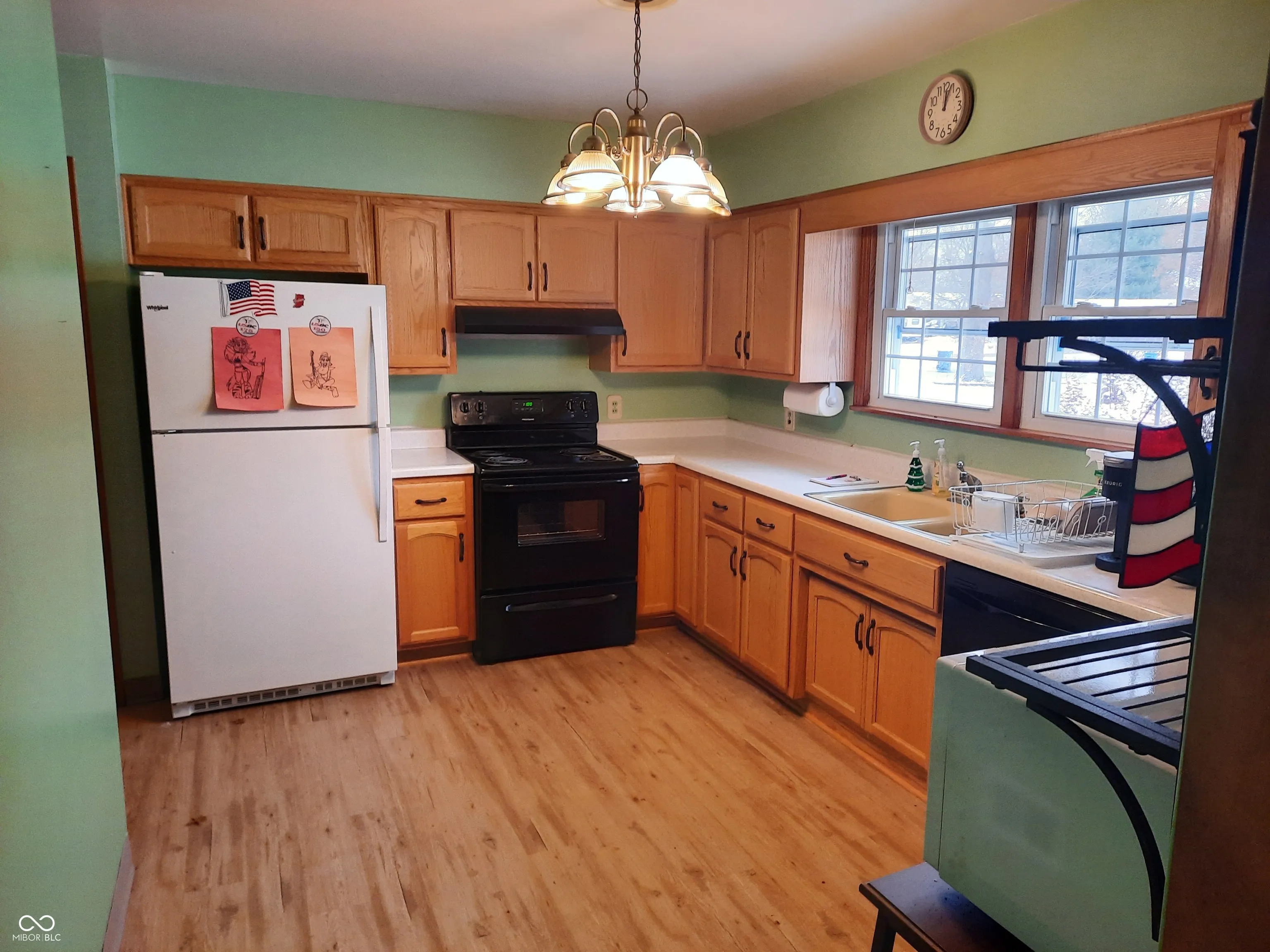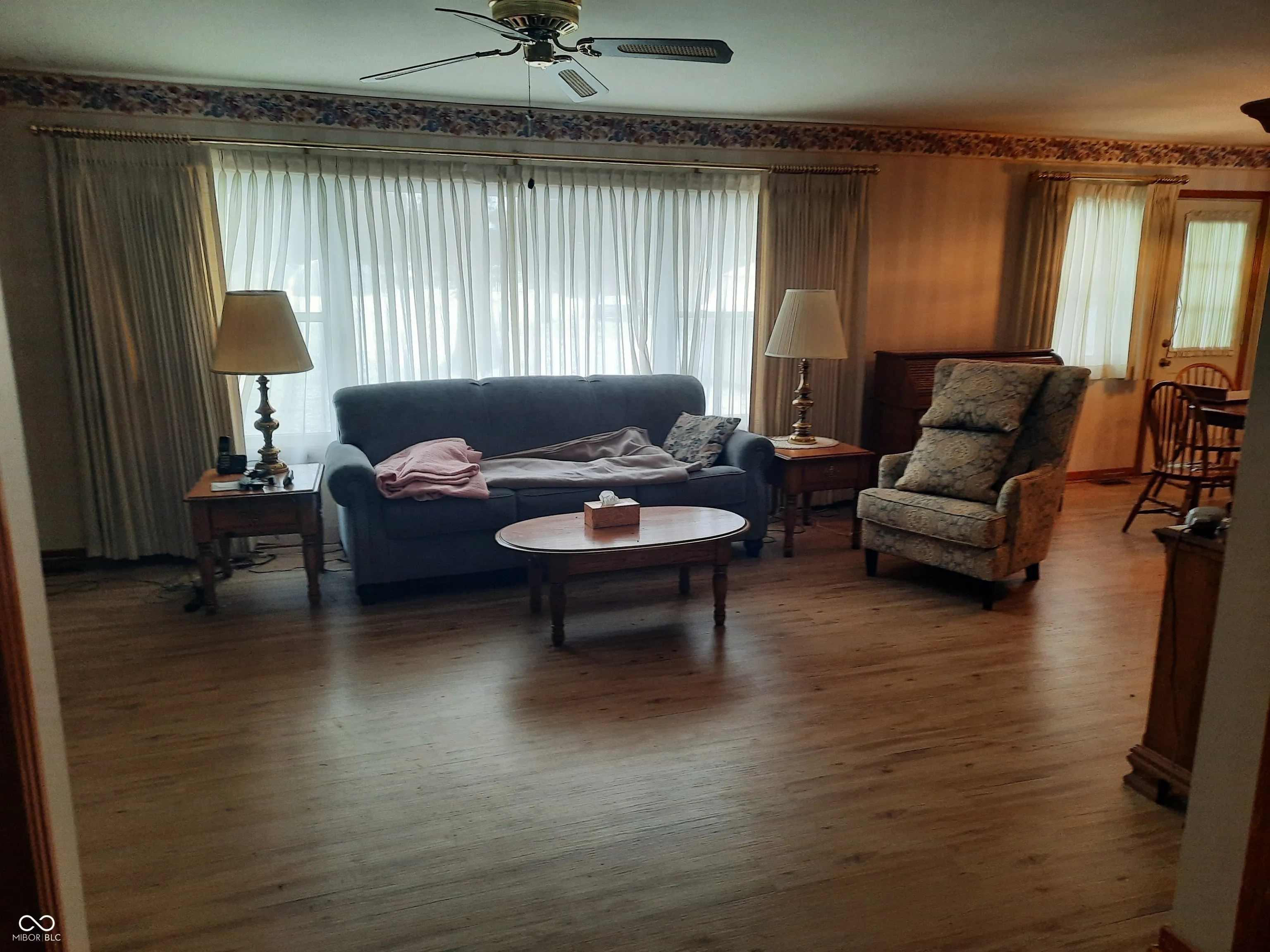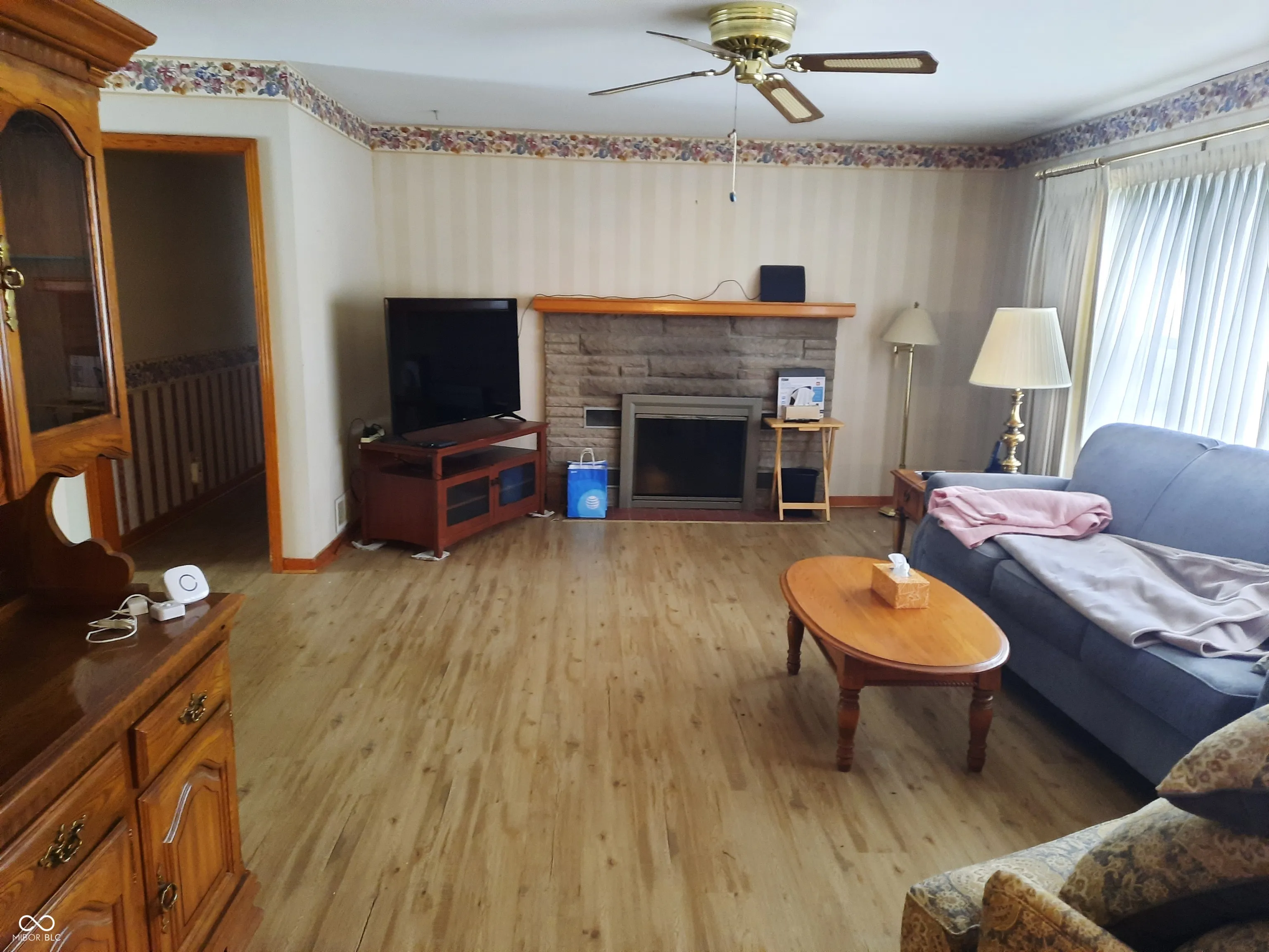 Well maintained home, Nice living room with gas fireplace open to the dining area. 3 nice size bedrooms, primary bedroom has a walk in closet! Very nice kitchen with range, refrigerator and dishwasher, pantry and room for a table. Hall bath with walk in shower. Full basement-washer & dryer remain plus the freezer! Enclosed front porch plus an open patio overlooking a large backyard. Roof 2015 ( tear off). Stained woodwork and stained doors. 8×7 entry
