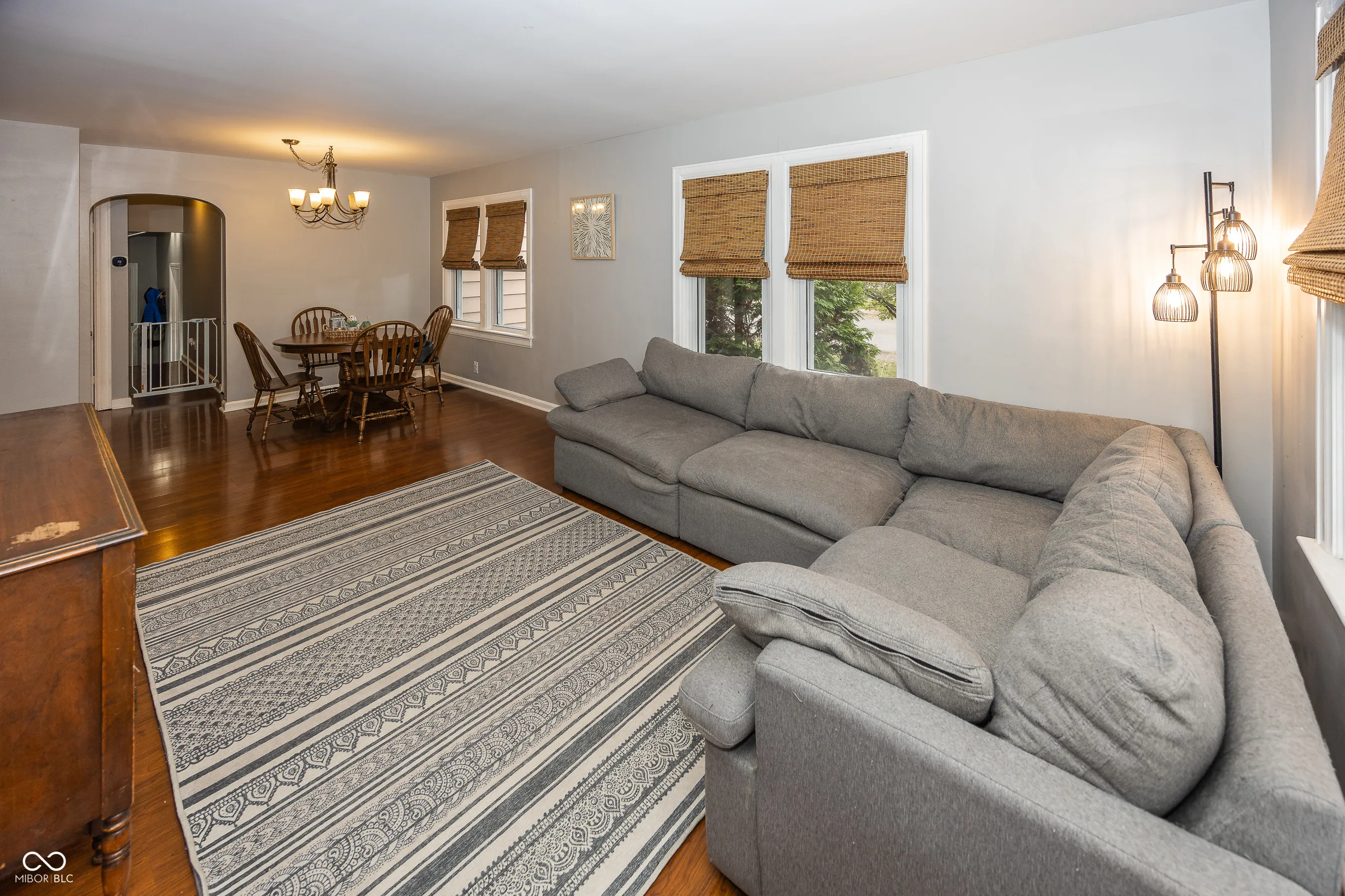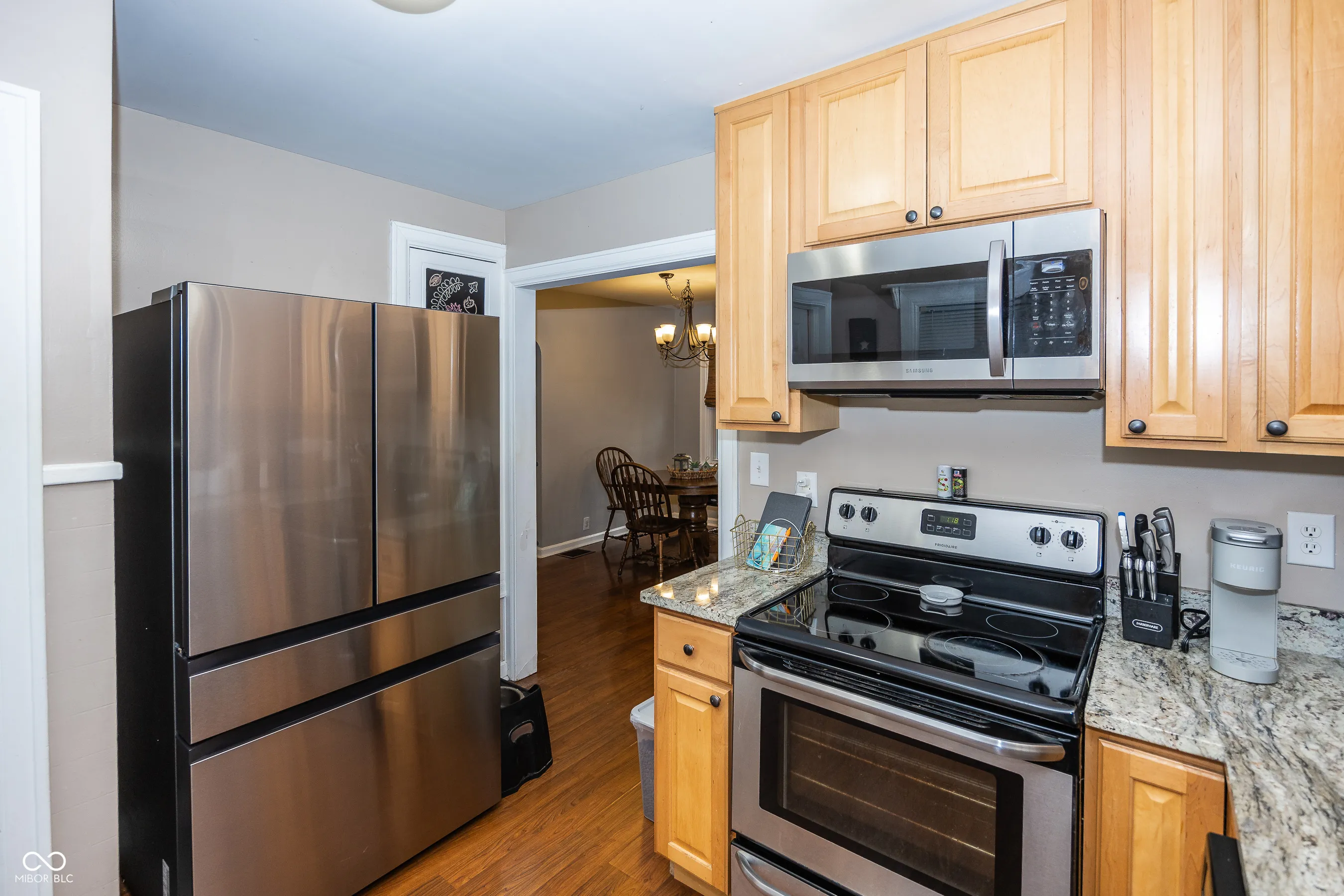 This beautifully remodeled 1940s, 3-bedroom ranch on a corner lot in desirable Speedway is a true gem! Step into the spacious family room, the heart of the home, where natural light pours in, creating a warm and inviting atmosphere. The open concept layout seamlessly blends the family room and dining area, making it ideal for both relaxing and entertaining. The dining space offers a perfect spot for family meals, cozy breakfasts, or evening gatherings with friends. The updated kitchen is a dream, featuring newer cabinets, sleek granite countertops, stainless steel appliances, and a convenient pantry. The primary bedroom offers a generous closet with plenty of storage space, while the second bedroom is bathed in natural light from two large windows. The third bedroom stands out with stunning vaulted ceilings and a spacious closet. The primary bath features a tub-shower unit with a stylish tile surround and a glass block window that lets in natural light. The finished basement offers endless opportunities and makes a great second family room, play room, workout space, or man cave. The laundry room and additional storage space complete the lower level. The oversized, attached 2-car garage provides ample room for vehicles and storage. Step outside to the fully fenced backyard, where you’ll find a cozy firepit-ideal for relaxing evenings and outdoor gatherings. This charming home has it all-modern updates and plenty of space for both comfort and entertaining.