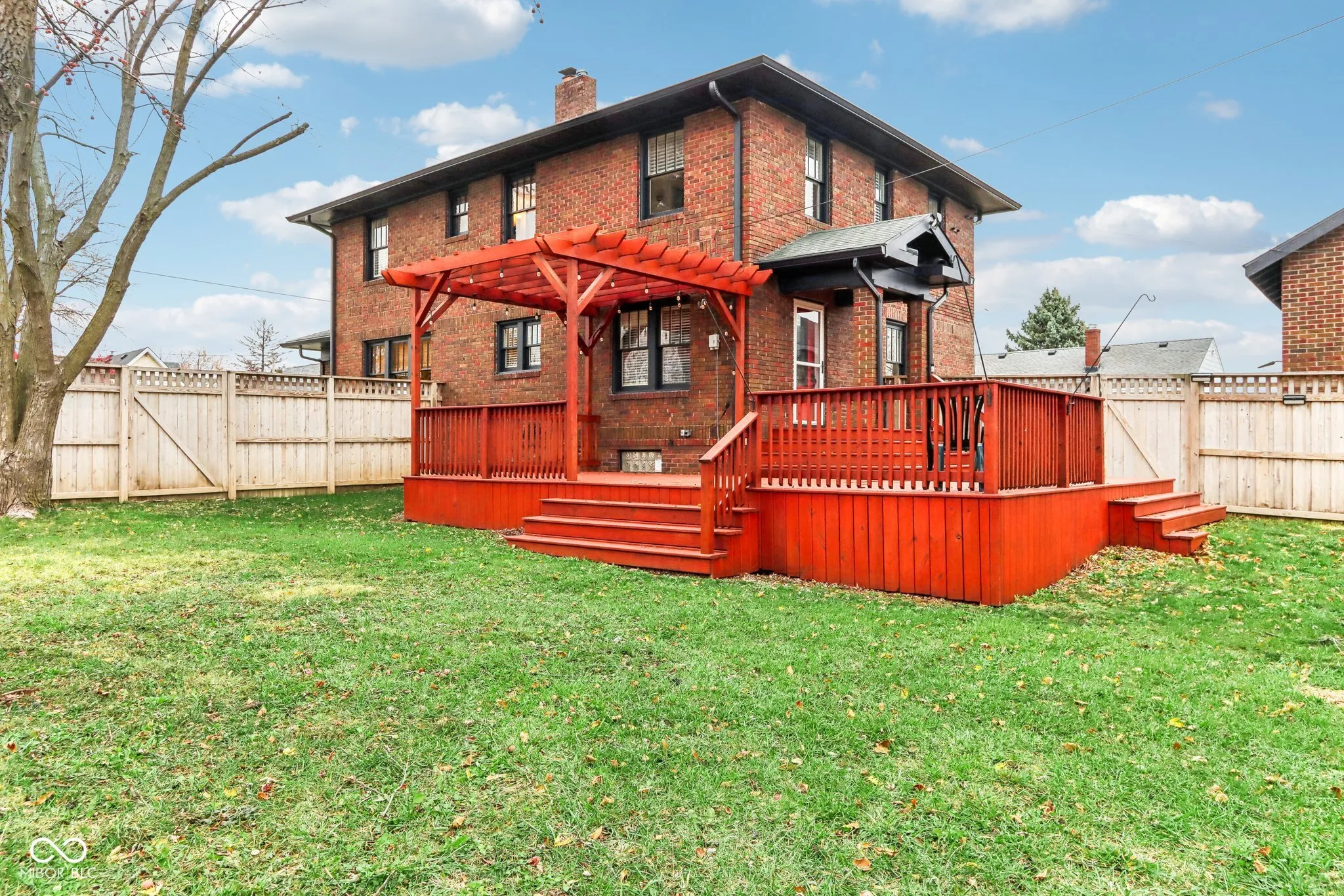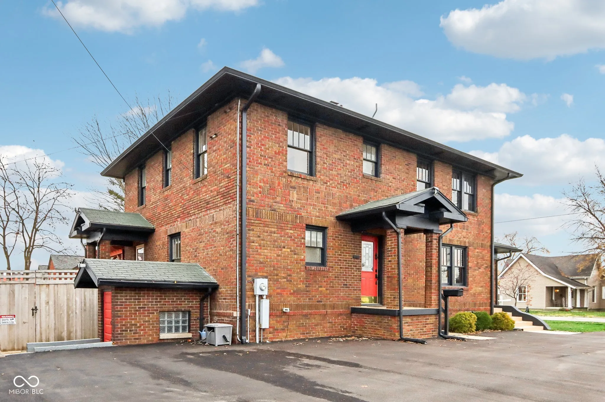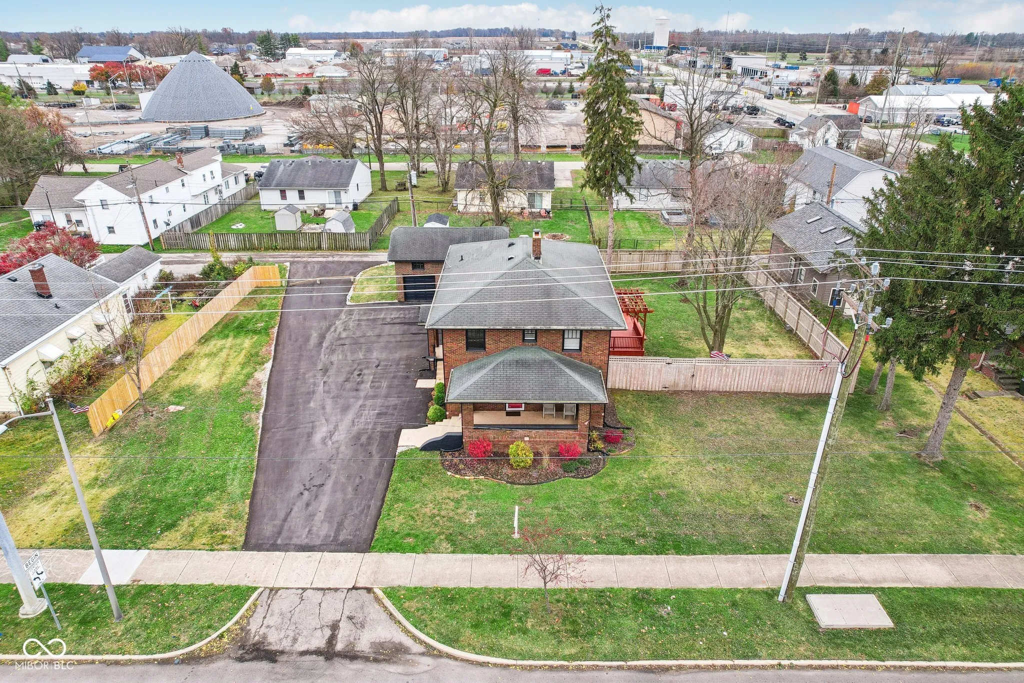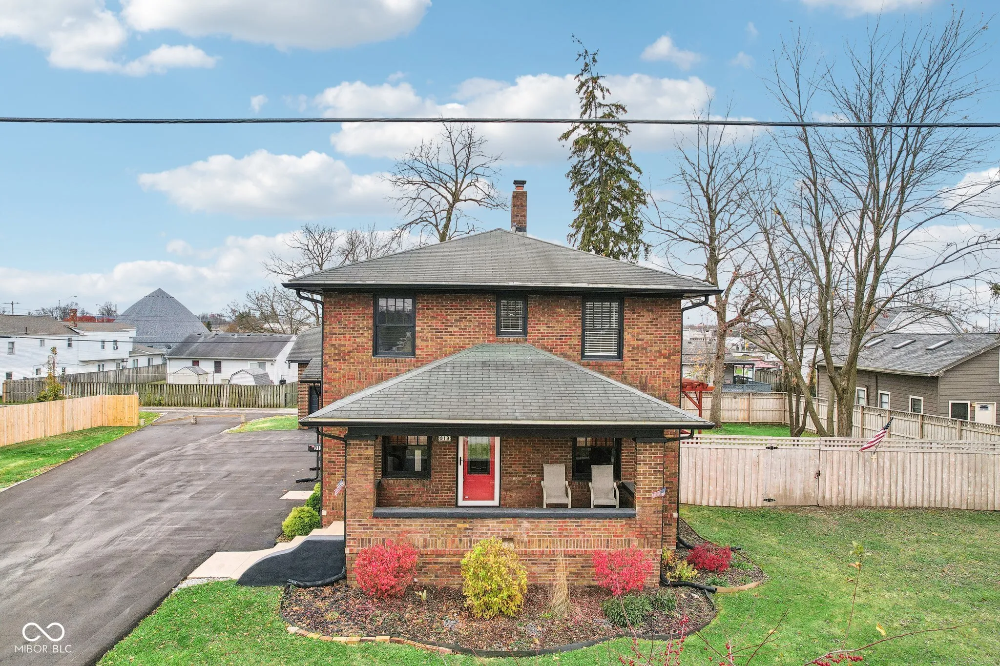 Step into a beautifully updated 1920s home on a half acre lot in the heart of Greenfield, spanning 3,192 square feet with five inviting bedrooms and two bathrooms. The full brick exterior, black trim paint and traditional front porch create a warm welcome. Inside, all original doors throughout and original hardwood floors enhance the secondary bedrooms while the kitchen dazzles with staggered cabinets and natural light. Enjoy cozy evenings in the family room beside the electric fireplace. The private backyard features a deck perfect for entertaining under the pergola and a new privacy fence w/ solar lighting. A finished detached two-car garage serves as a versatile man cave/she shed w/ a loft above for storage. Significant updates include: new ductwork, waterproofed basement with extra washer/dryer hookups, 200 amp electrical service, HVAC 2 years old, new daylight windows. This home elegantly combines charm with practicality and sits on an amazing lot in a great location. Zoned residential can go commercial. Have a work/live space right on Main St! Perfect for a store front office, lawyer, medical, or most small businesses. Schools just blocks away, short walk to downtown with access to the city bike trails.