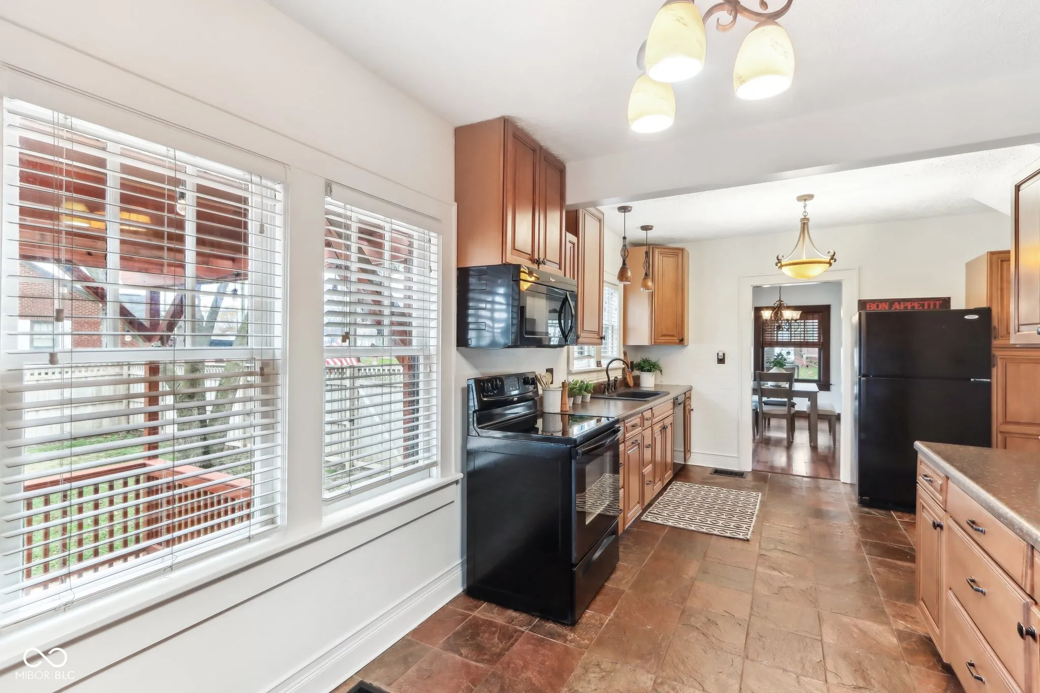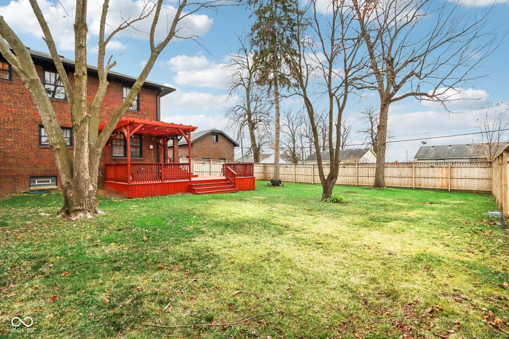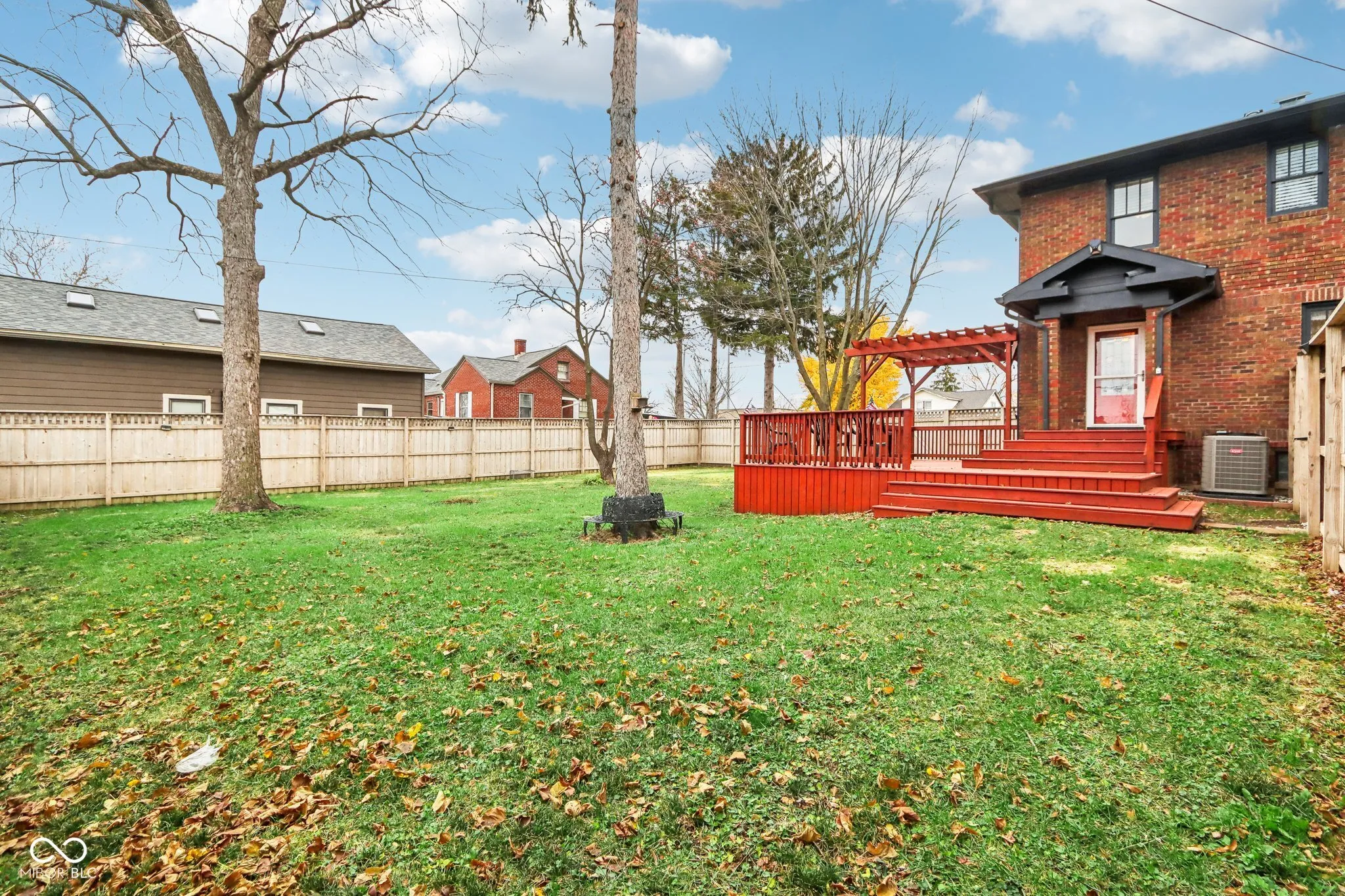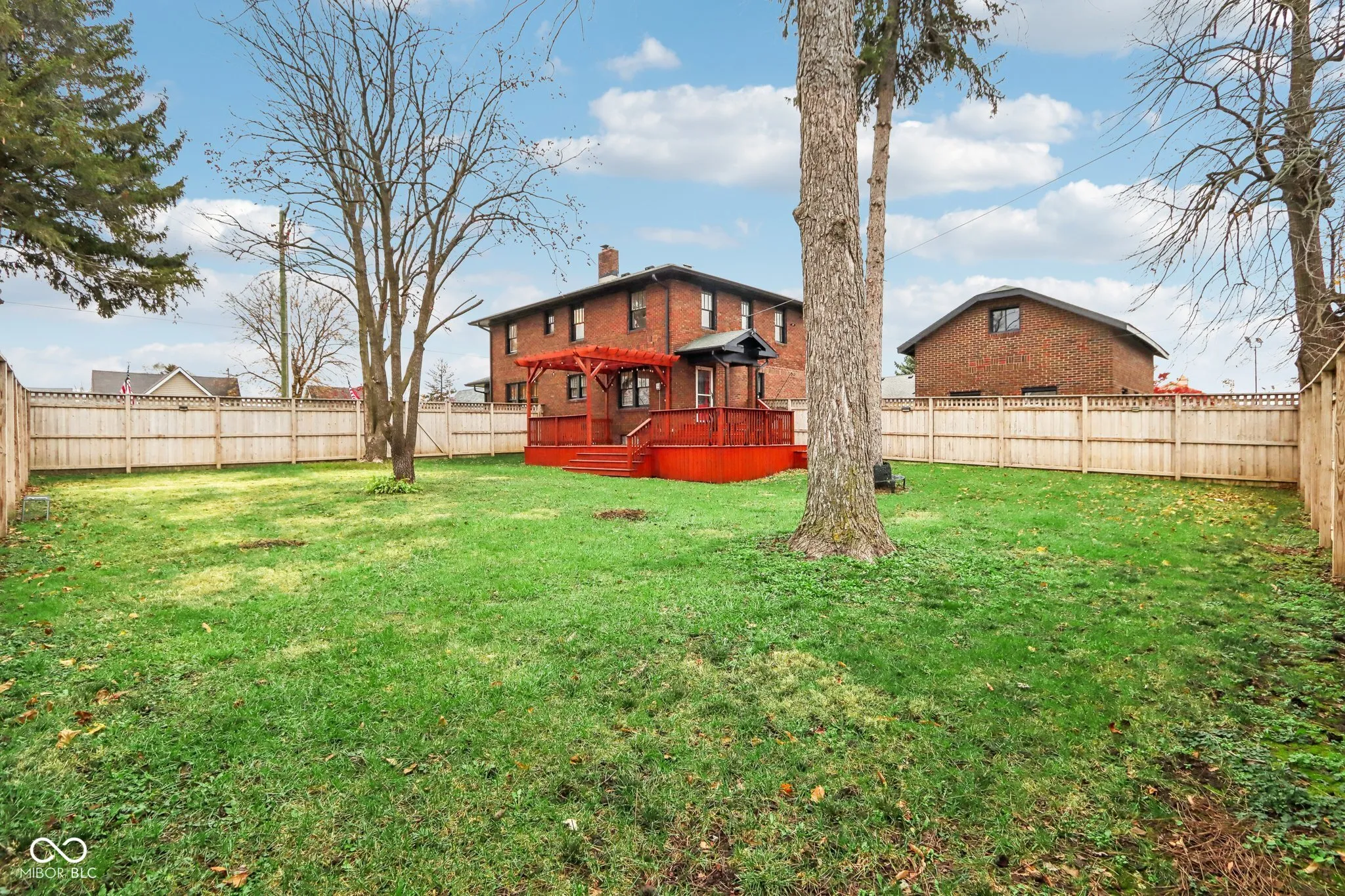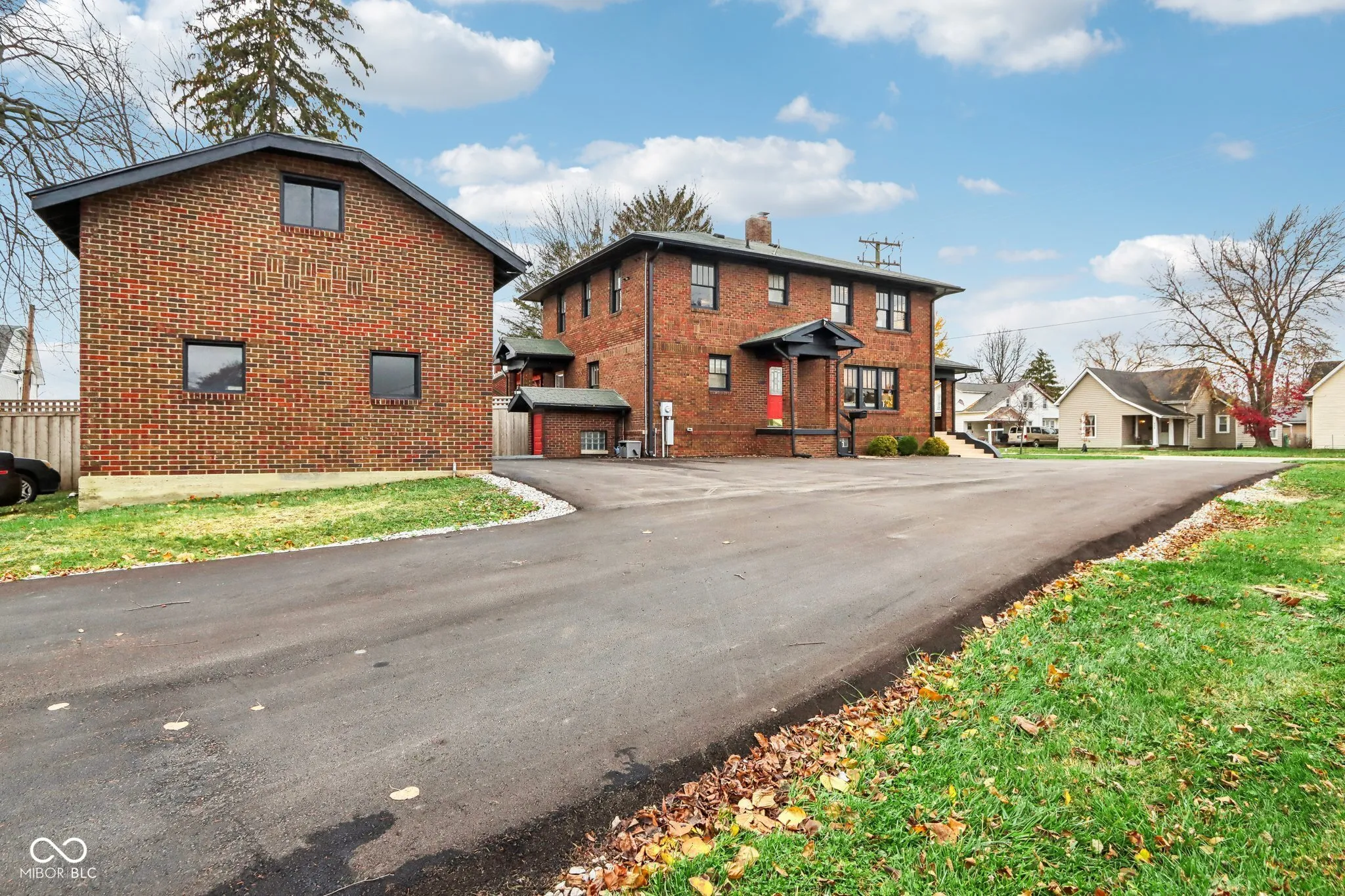 Step into a beautifully updated 1920s home on a half acre lot in the heart of Greenfield, spanning 3,192 square feet with five inviting bedrooms and two bathrooms. The full brick exterior, black trim paint and traditional front porch create a warm welcome. Inside, all original doors throughout and original hardwood floors enhance the secondary bedrooms while the kitchen dazzles with staggered cabinets and natural light. Enjoy cozy evenings in the family room beside the electric fireplace. The private backyard features a deck perfect for entertaining under the pergola and a new privacy fence w/ solar lighting. A finished detached two-car garage serves as a versatile man cave/she shed w/ a loft above for storage. Significant updates include: new ductwork, waterproofed basement with extra washer/dryer hookups, 200 amp electrical service, HVAC 2 years old, new daylight windows. This home elegantly combines charm with practicality and sits on an amazing lot in a great location. Zoned residential can go commercial. Have a work/live space right on Main St! Perfect for a store front office, lawyer, medical, or most small businesses. Schools just blocks away, short walk to downtown with access to the city bike trails.