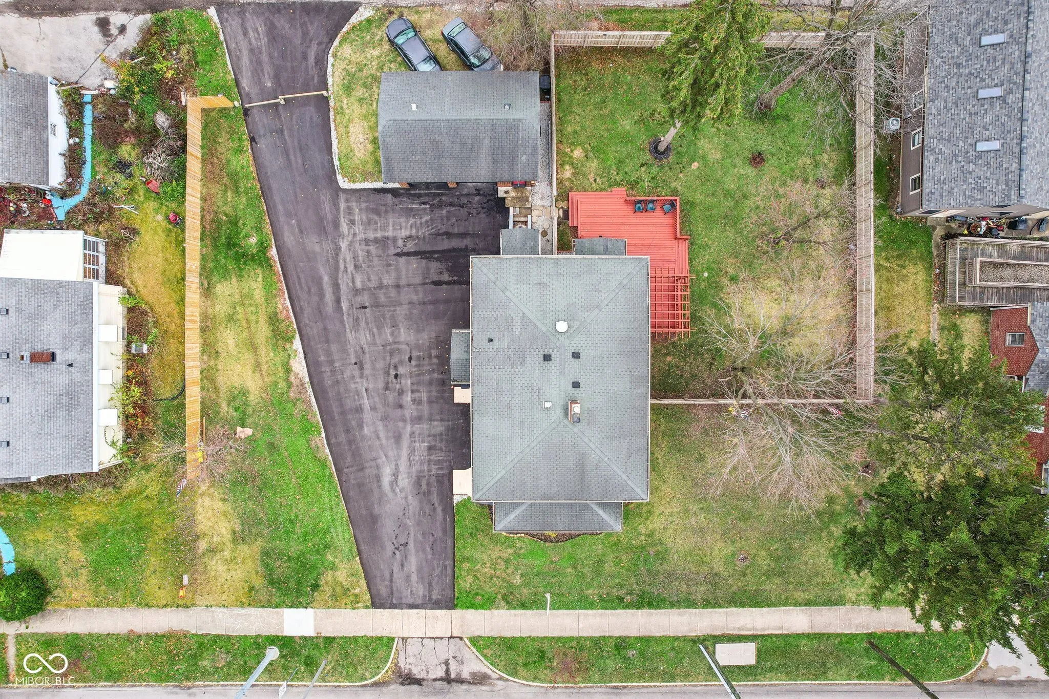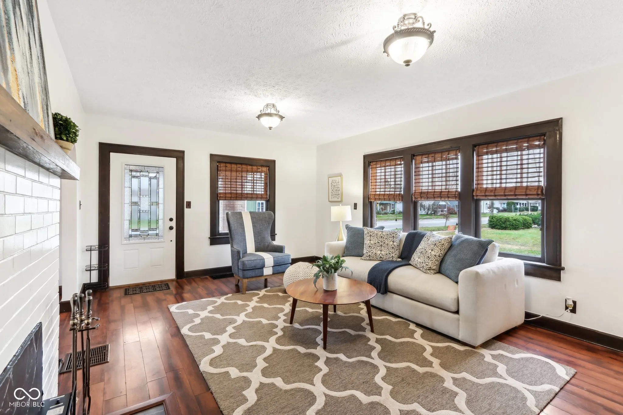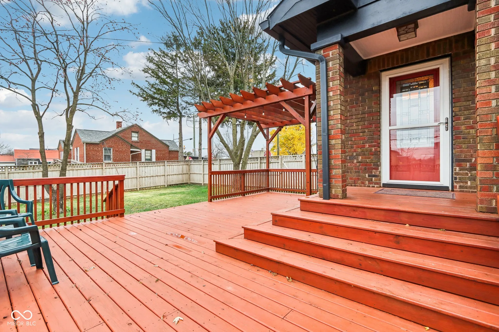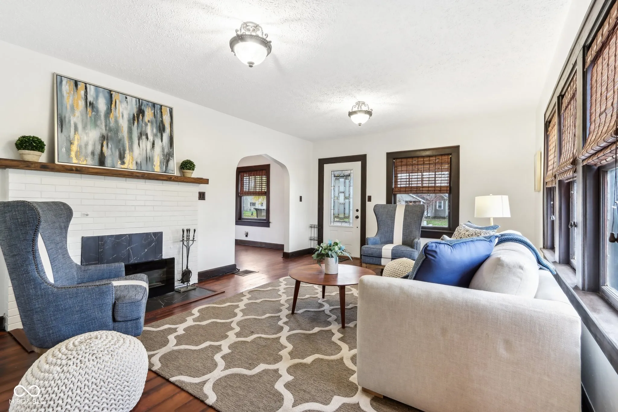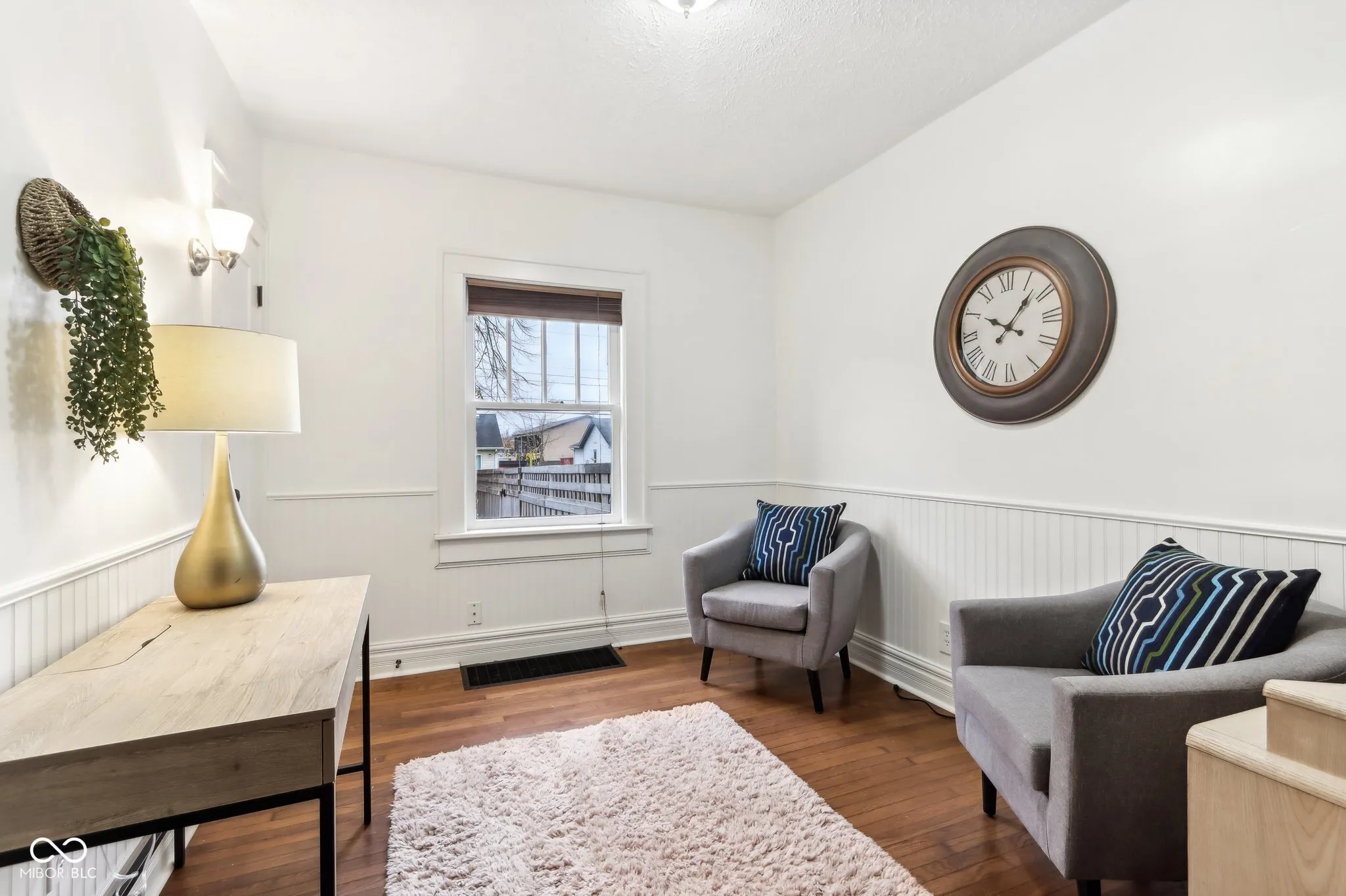 Step into a beautifully updated 1920s home on a half acre lot in the heart of Greenfield, spanning 3,192 square feet with five inviting bedrooms and two bathrooms. The full brick exterior, black trim paint and traditional front porch create a warm welcome. Inside, all original doors throughout and original hardwood floors enhance the secondary bedrooms while the kitchen dazzles with staggered cabinets and natural light. Enjoy cozy evenings in the family room beside the electric fireplace. The private backyard features a deck perfect for entertaining under the pergola and a new privacy fence w/ solar lighting. A finished detached two-car garage serves as a versatile man cave/she shed w/ a loft above for storage. Significant updates include: new ductwork, waterproofed basement with extra washer/dryer hookups, 200 amp electrical service, HVAC 2 years old, new daylight windows. This home elegantly combines charm with practicality and sits on an amazing lot in a great location. Zoned residential can go commercial. Have a work/live space right on Main St! Perfect for a store front office, lawyer, medical, or most small businesses. Schools just blocks away, short walk to downtown with access to the city bike trails.