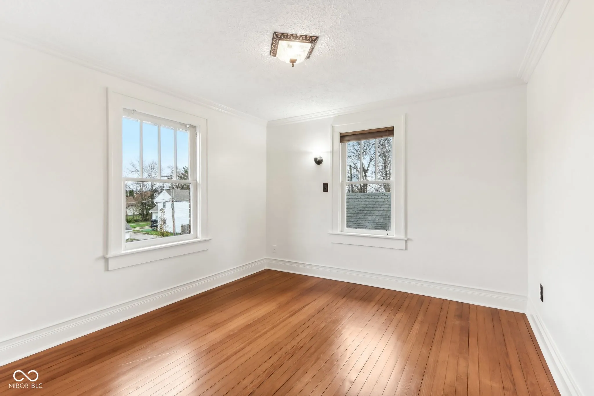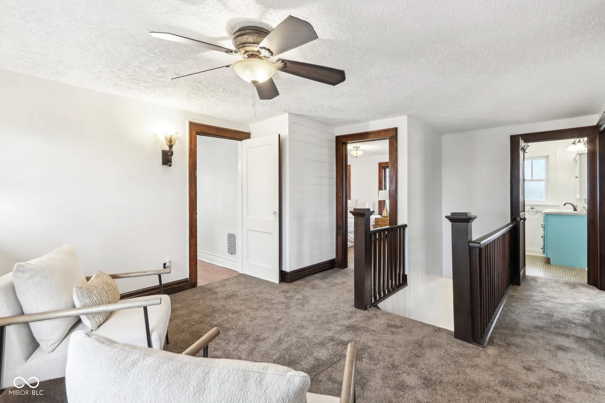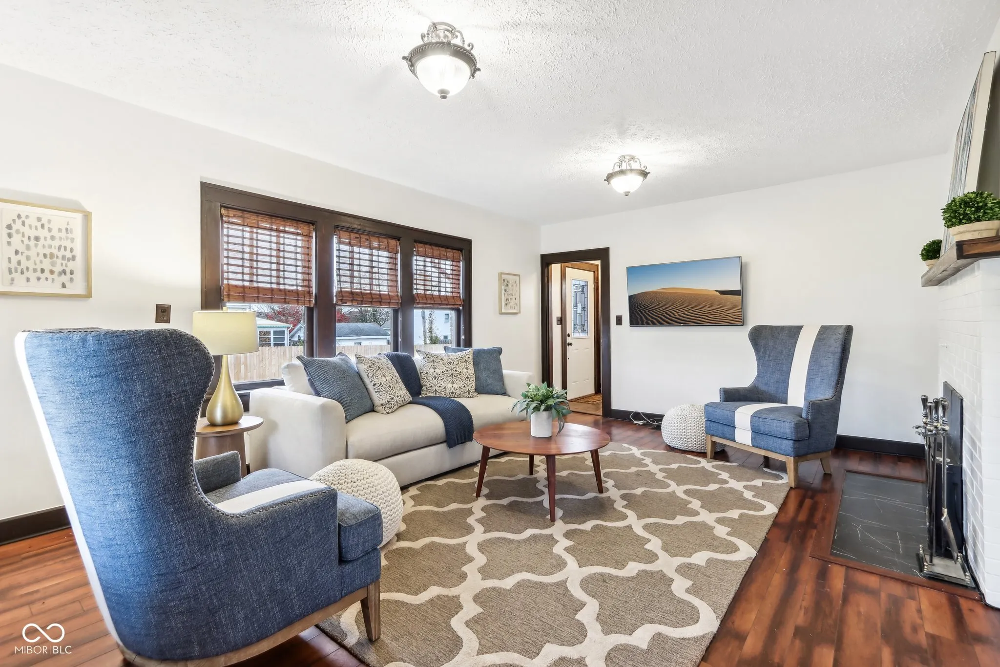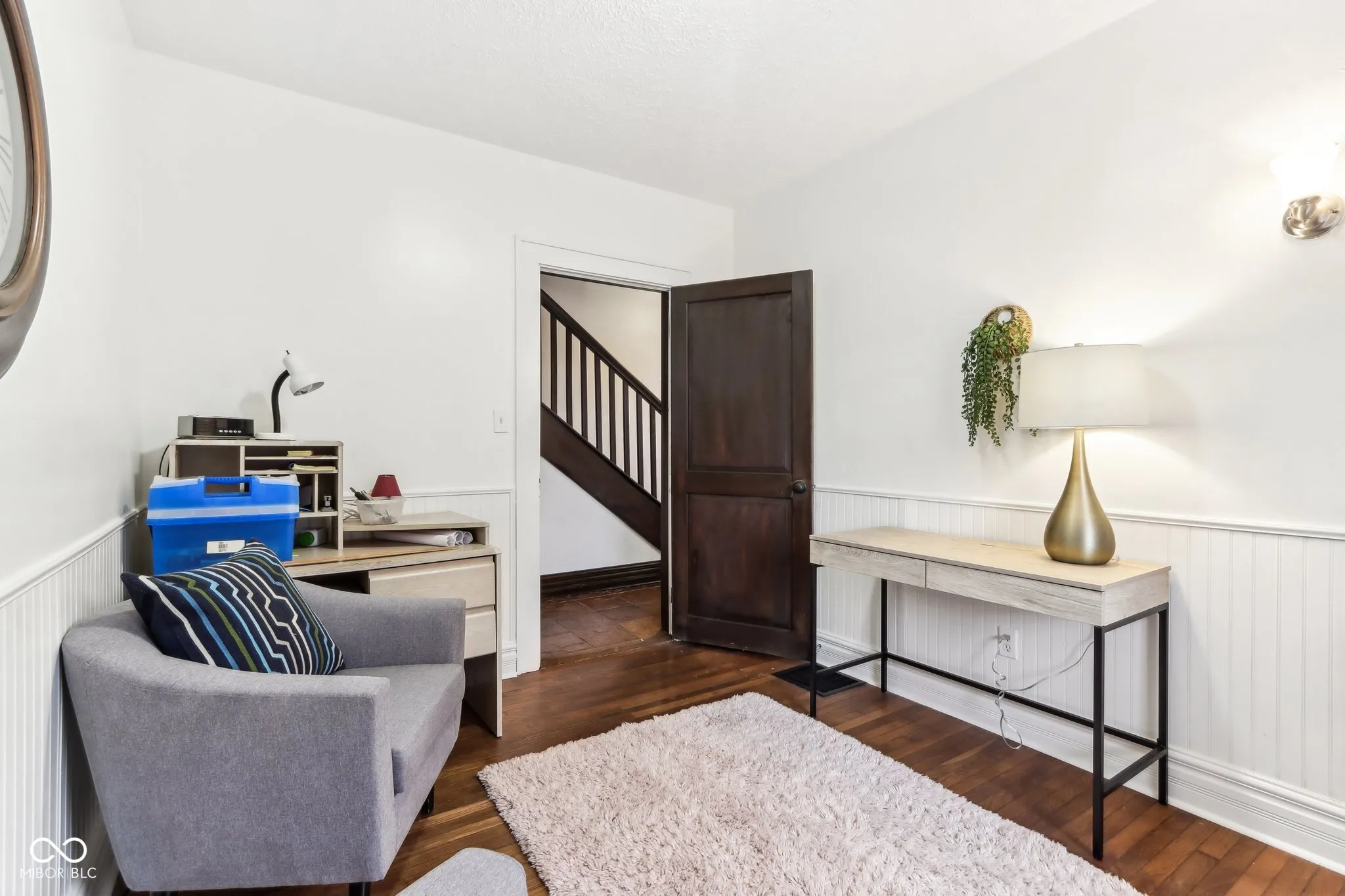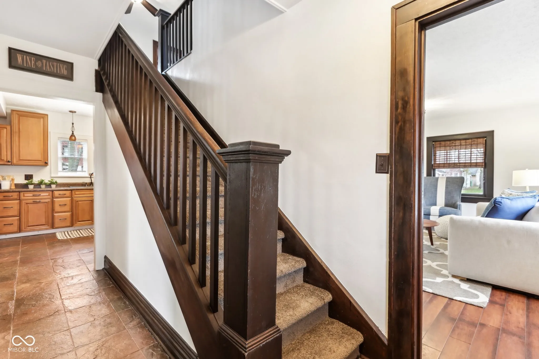 Step into a beautifully updated 1920s home on a half acre lot in the heart of Greenfield, spanning 3,192 square feet with five inviting bedrooms and two bathrooms. The full brick exterior, black trim paint and traditional front porch create a warm welcome. Inside, all original doors throughout and original hardwood floors enhance the secondary bedrooms while the kitchen dazzles with staggered cabinets and natural light. Enjoy cozy evenings in the family room beside the electric fireplace. The private backyard features a deck perfect for entertaining under the pergola and a new privacy fence w/ solar lighting. A finished detached two-car garage serves as a versatile man cave/she shed w/ a loft above for storage. Significant updates include: new ductwork, waterproofed basement with extra washer/dryer hookups, 200 amp electrical service, HVAC 2 years old, new daylight windows. This home elegantly combines charm with practicality and sits on an amazing lot in a great location. Zoned residential can go commercial. Have a work/live space right on Main St! Perfect for a store front office, lawyer, medical, or most small businesses. Schools just blocks away, short walk to downtown with access to the city bike trails.