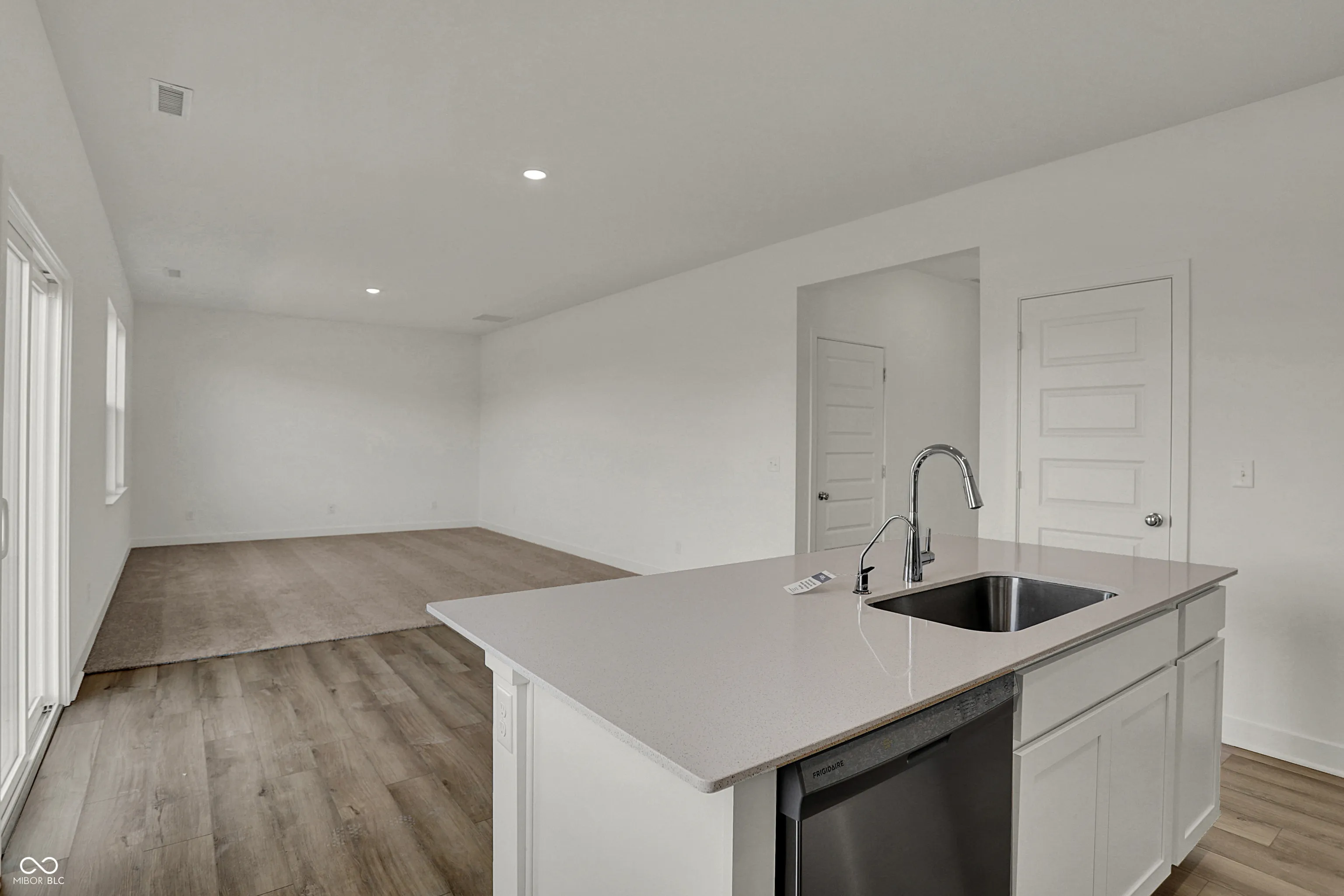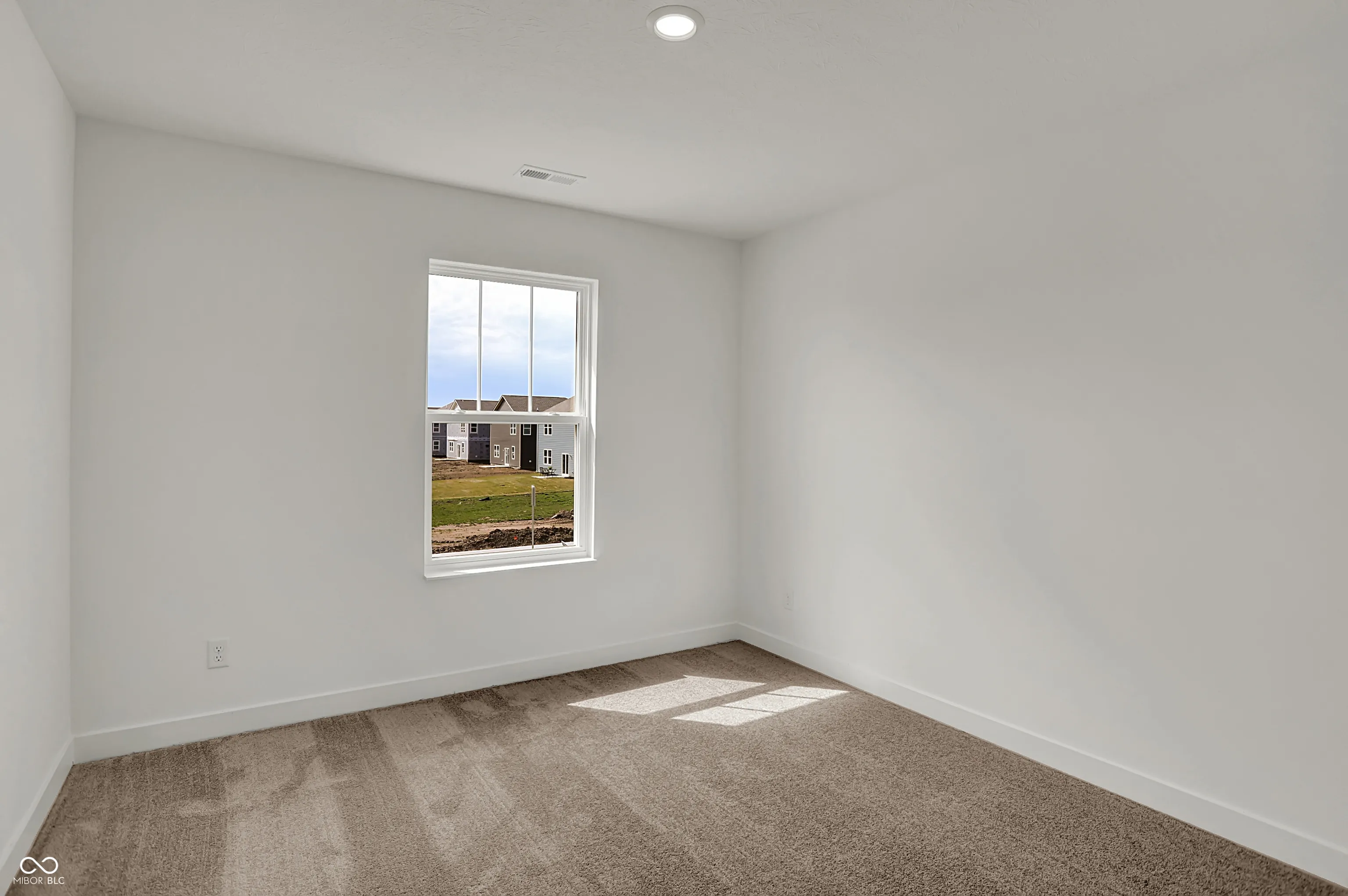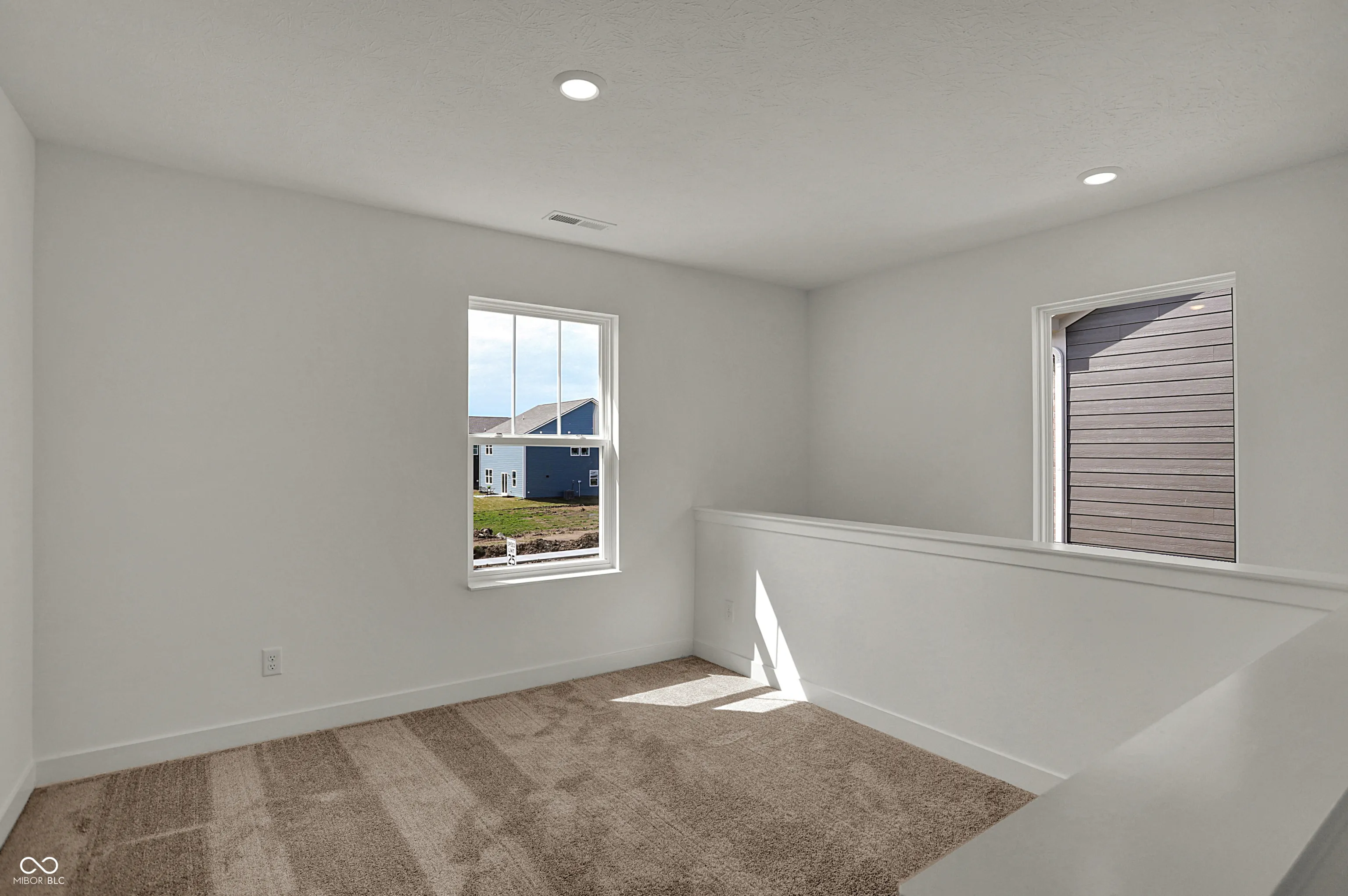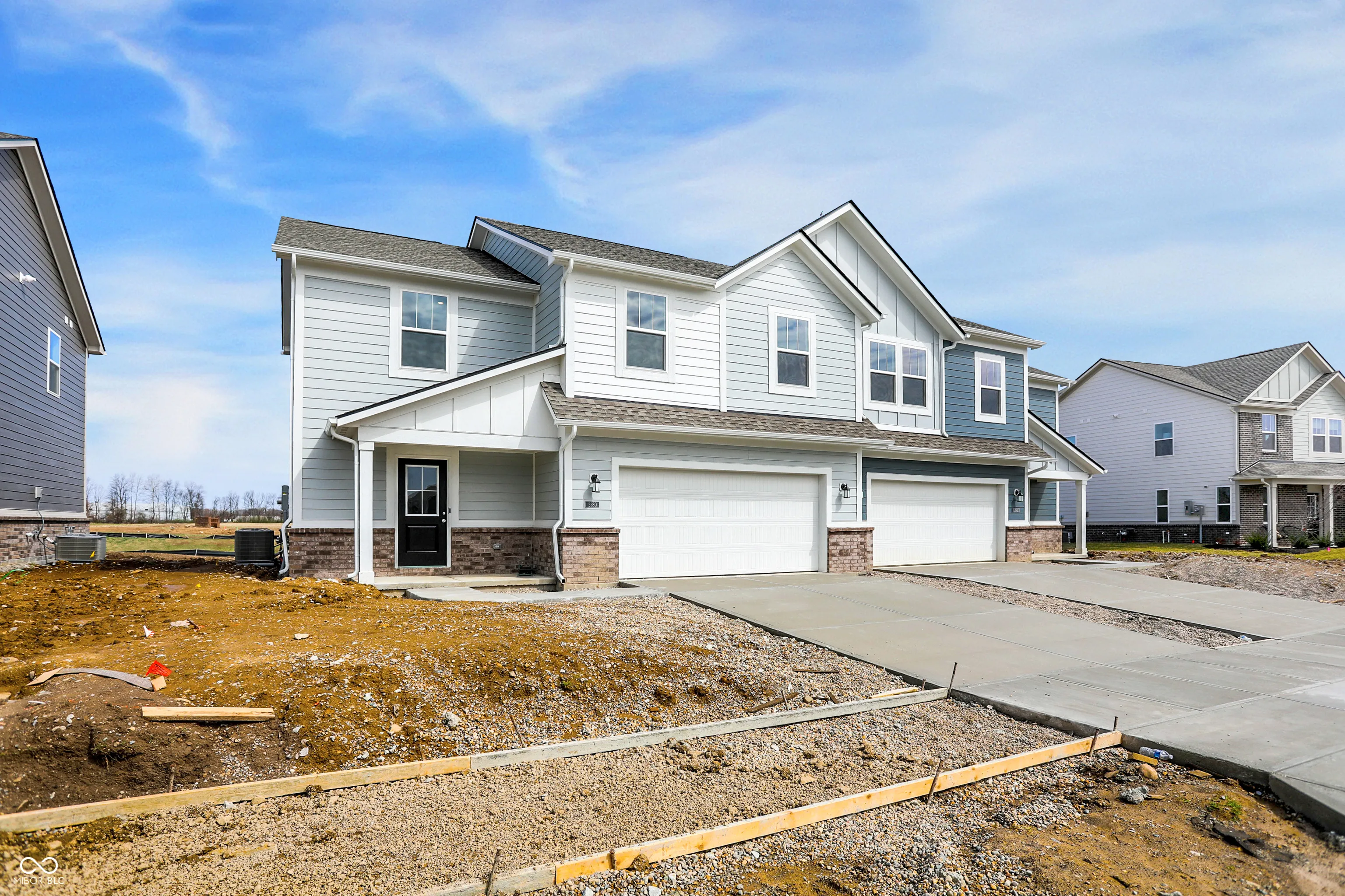Carriage Duplex is a series of new paired homes for sale at Grand Vista, a master-planned community coming soon to Greenwood, IN. Residents will have access to stunning amenities including a relaxing swimming pool, pool house and playground set. The community offers proximity to Old City Park for outdoor recreation and high-end shopping and dining options at nearby Greenwood Park Mall. The first floor of this two-story home shares an open layout between the kitchen, dining area and Great Room for easy entertaining, along with access to an outdoor space. Upstairs is a luxe owner’s suite with an en-suite bathroom and a spacious walk-in closet, as well as two secondary bedrooms near a versatile loft that serves as a second-floor shared living space. *Photos/Tour of model may show features not selected in home.