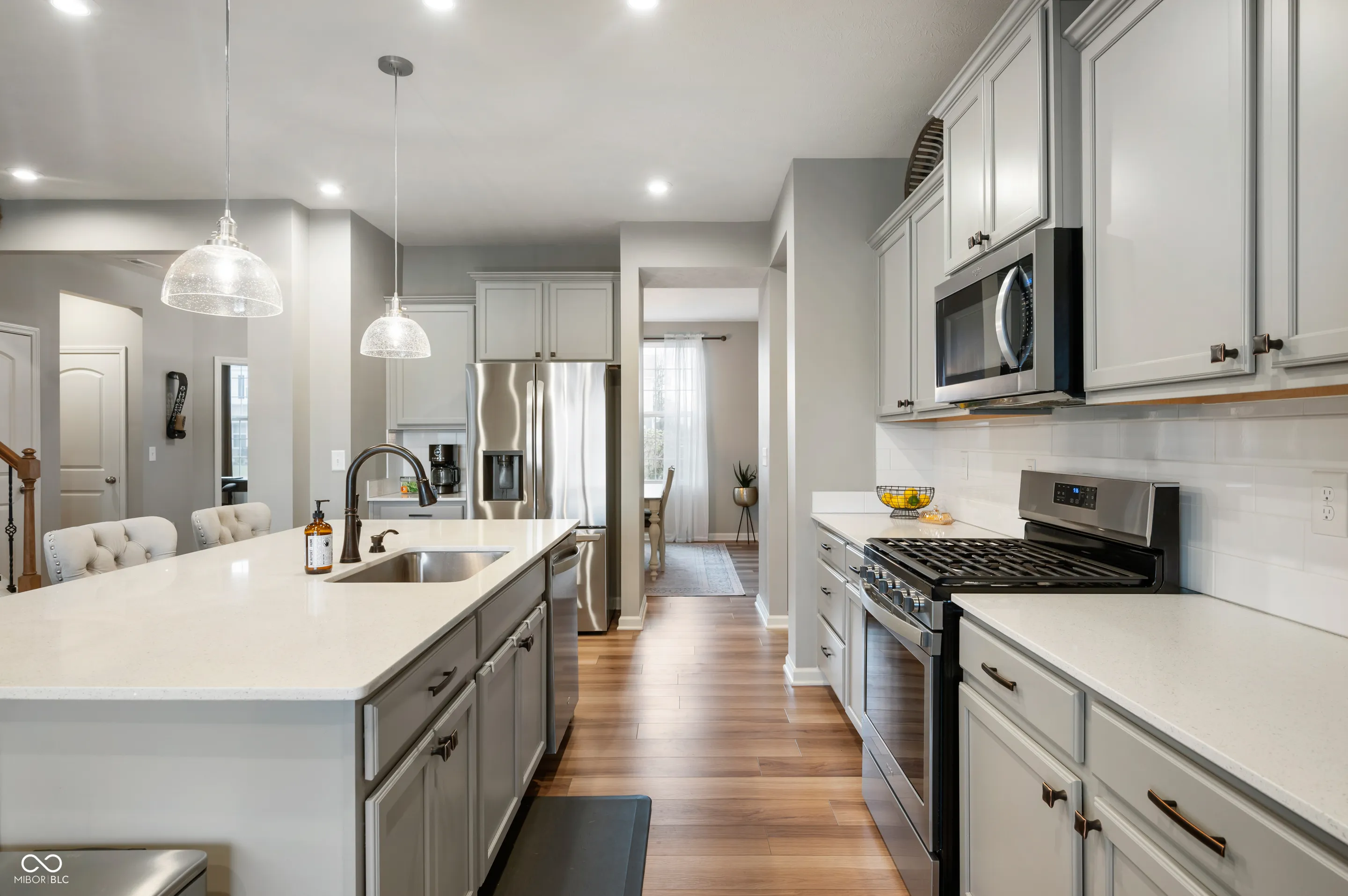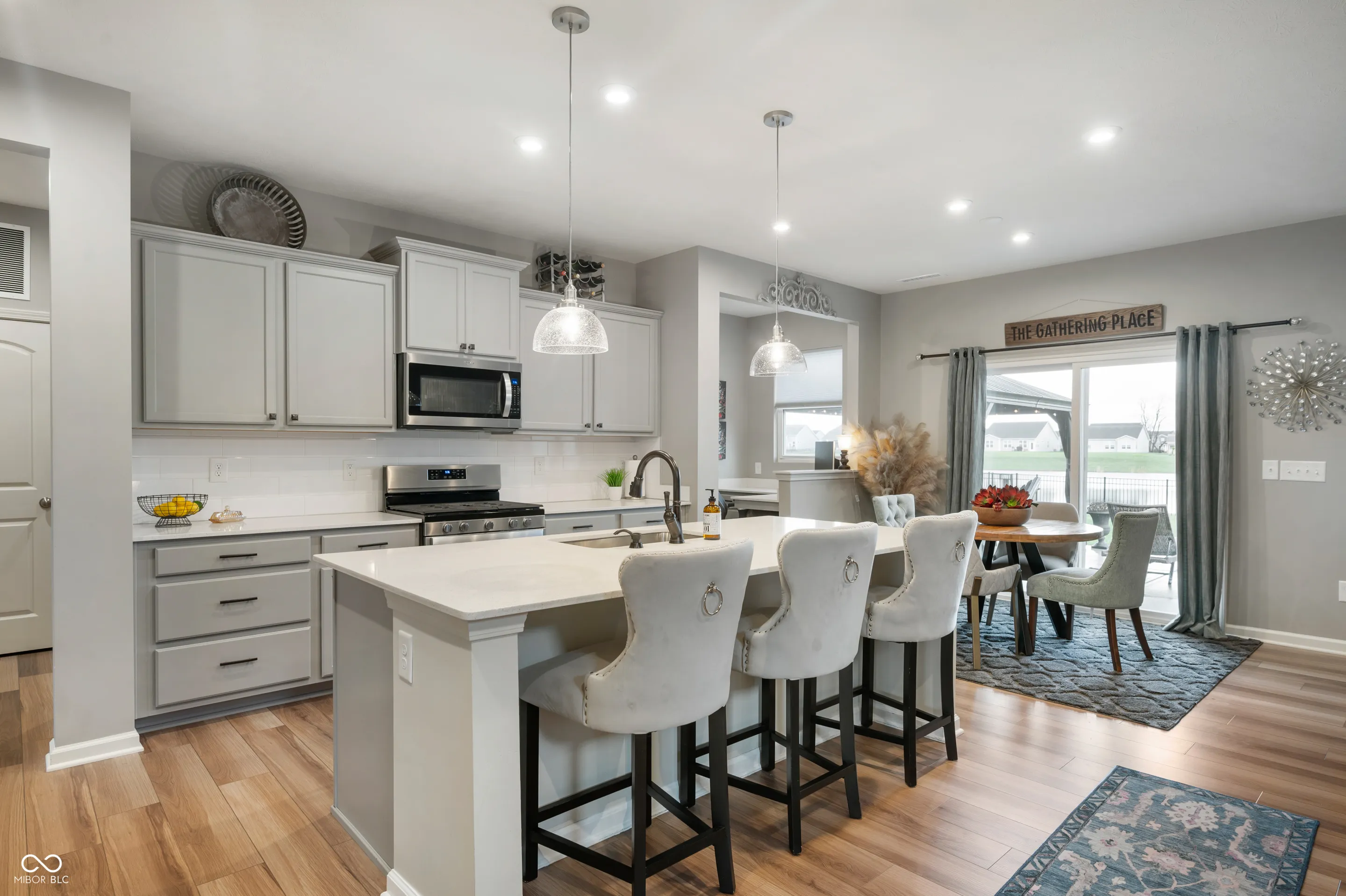 Beautiful 5BR and 2.5BA home in Greystone! Gorgeous open concept kitchen with large island, coffee bar, and quartz countertops. Plenty of room for informal dining with adjacent business center and walk-in pantry. Additional formal dining room off the foyer as well as a full office space. Gas fireplace with timeless wood mantle to enjoy the living room. Mudroom and laundry room on the main floor. Large 5th bedroom that was originally a loft but professionally converted and could be deconstructed back to a loft. Large primary bedroom with great views of the pond out back. Primary bath with dual vanities and massive walk-in shower. 3 car tandem garage that could have the additional space converted to a workshop or gym. Extended patio with pergola to enjoy summer cookouts or lazy fall afternoons. Fully fenced-in backyard overlooking the large pond. Perfect backyard setting for both sunrise and sunset. Neighborhood has a pool, playground, pickleball courts, and basketball court. Great setting with easy access to everything in Brownsburg or just a short commute into Indianapolis.