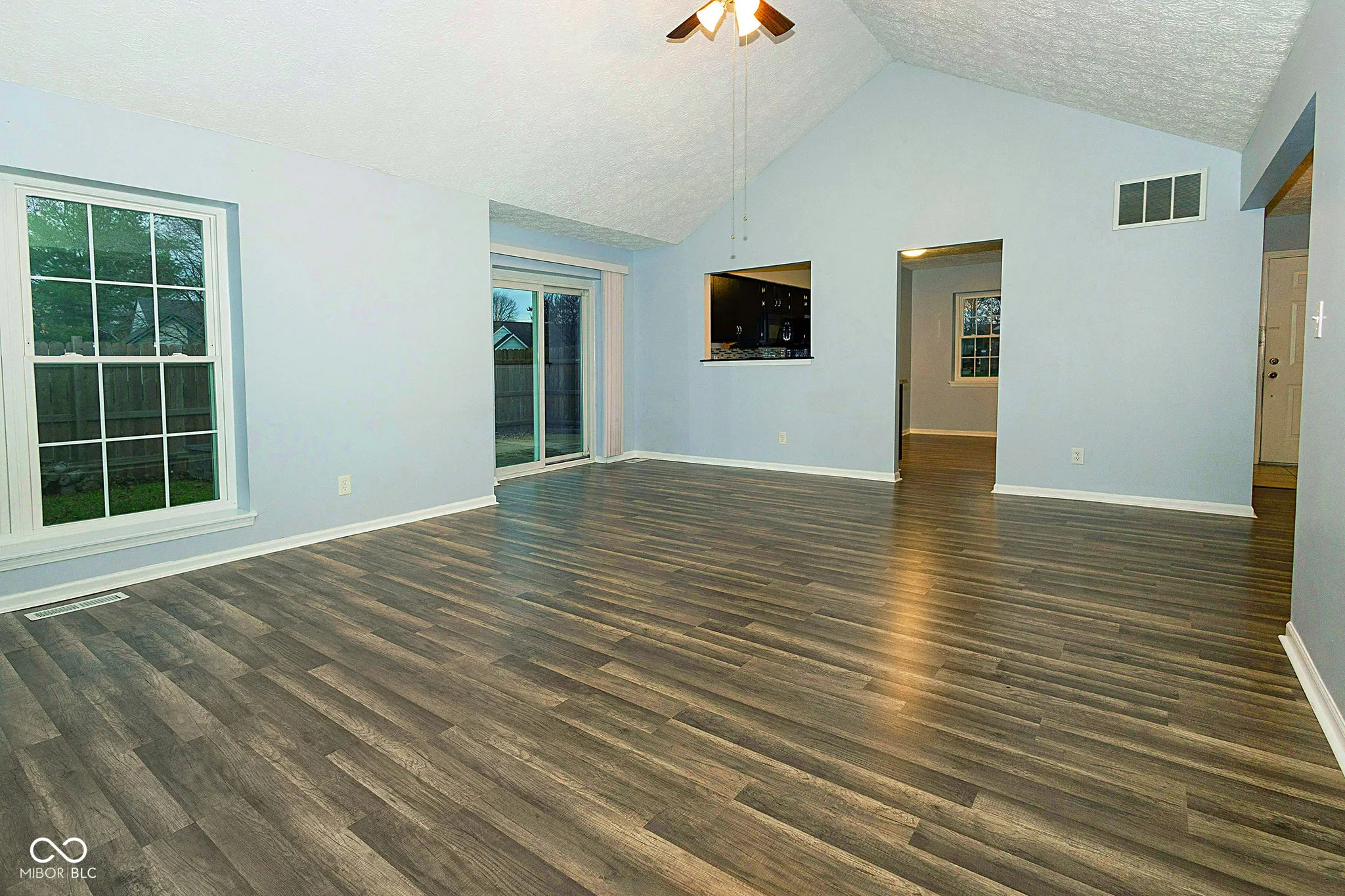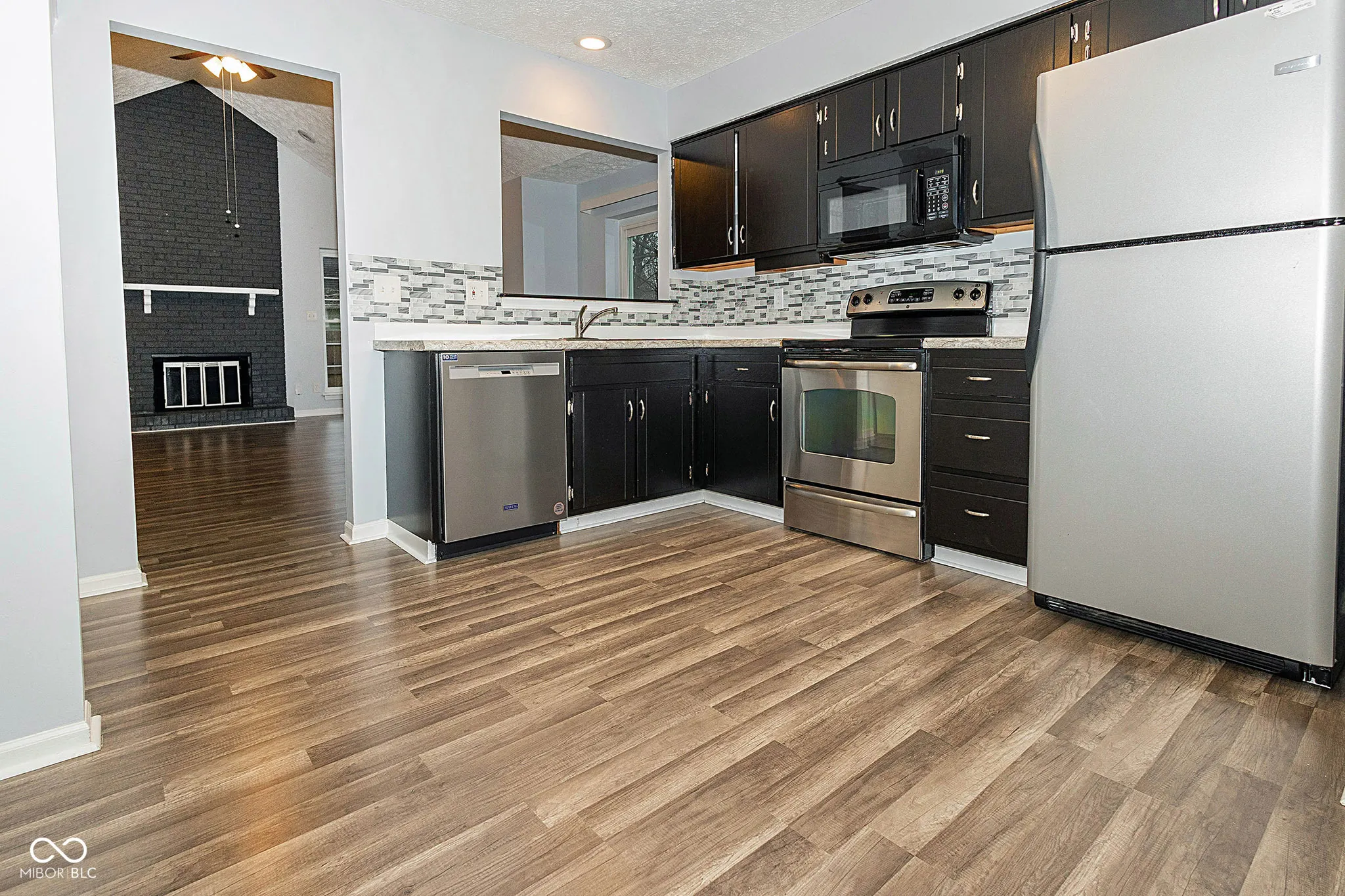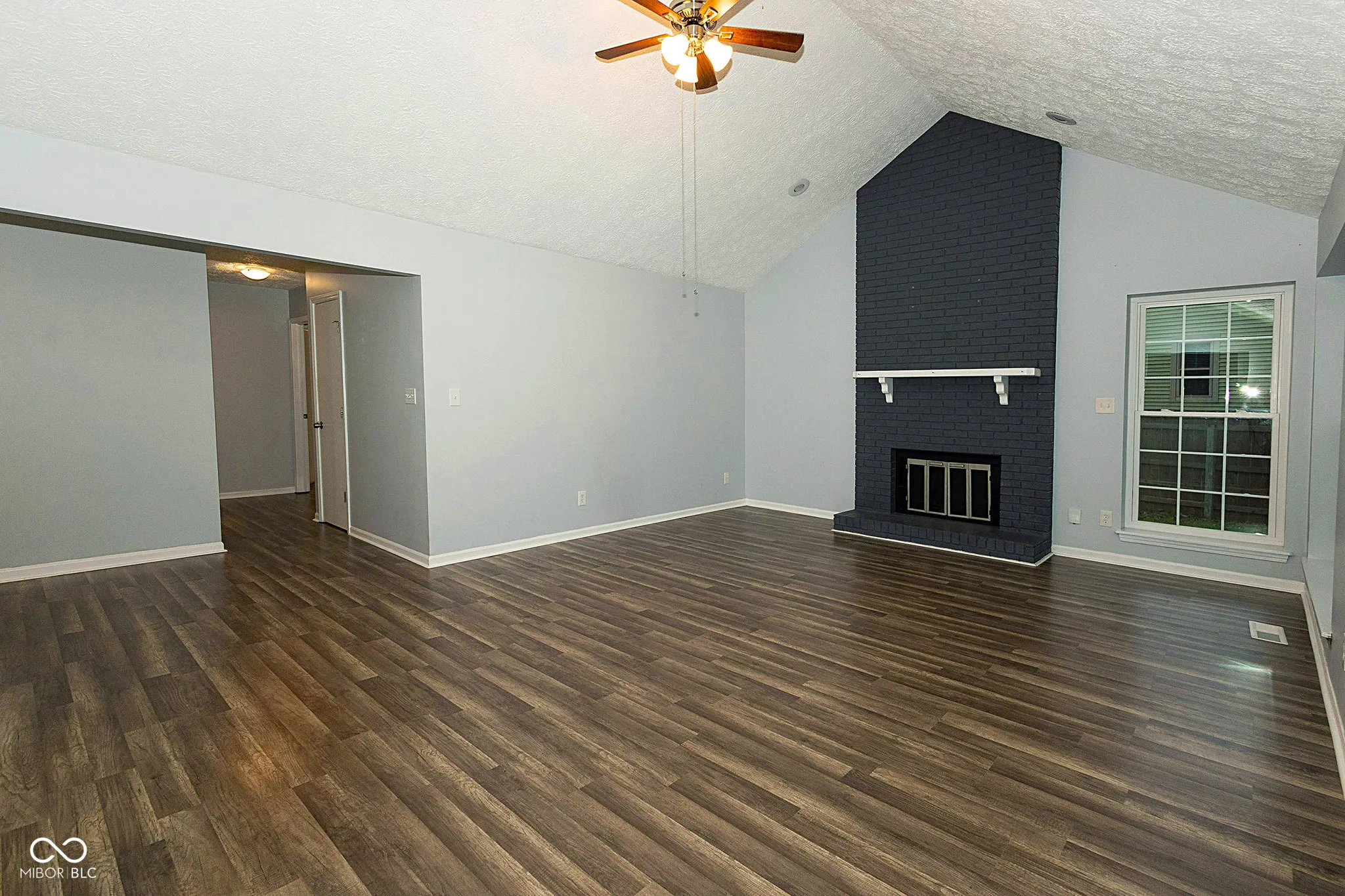 Stunning Home in Popular Highlands at Eagle Creek, just a few minutes distance to the beautiful Eagle Creek Recreation Area. You will fall in love with the Exterior as you admire the lovely BRAND NEW Windows, BRAND NEW Roof, grey siding highlighted with white trim and brick accents but as you walk in, you will truly become mesmerized with this magnificent home. The Great Room has Cathedral Ceilings, tall windows and newer Vinyl Wood Flooring and there is a Floor to Ceiling Brick Fireplace that is the main focal point of this amazing space! Kitchen is large with updated Cabinets and Countertops, Backsplash and all Stainless Steel Appliances are included. The Dishwasher is Brand New! The Primary Bedroom is VERY large with room for all of your furniture needs AND MORE and there are ledges on the windows for you to display your plants or pictures! The Primary Bathroom has beautiful countertop and sink, lots of space with the Walk In Closet and the Bath / Shower is highlighted with beautiful tile work. Two additional large bedrooms and lovely Guest Bath too! Laundry Room includes Washer & Dryer. Outside you have a private patio that has been added and a privacy fence as well. Firepit for the cooler nights and lots of space for entertaining. New Water Heater and this entire home has been updated recently – all you need to do is to move in. This home will not last long – hurry and come see it TODAY!