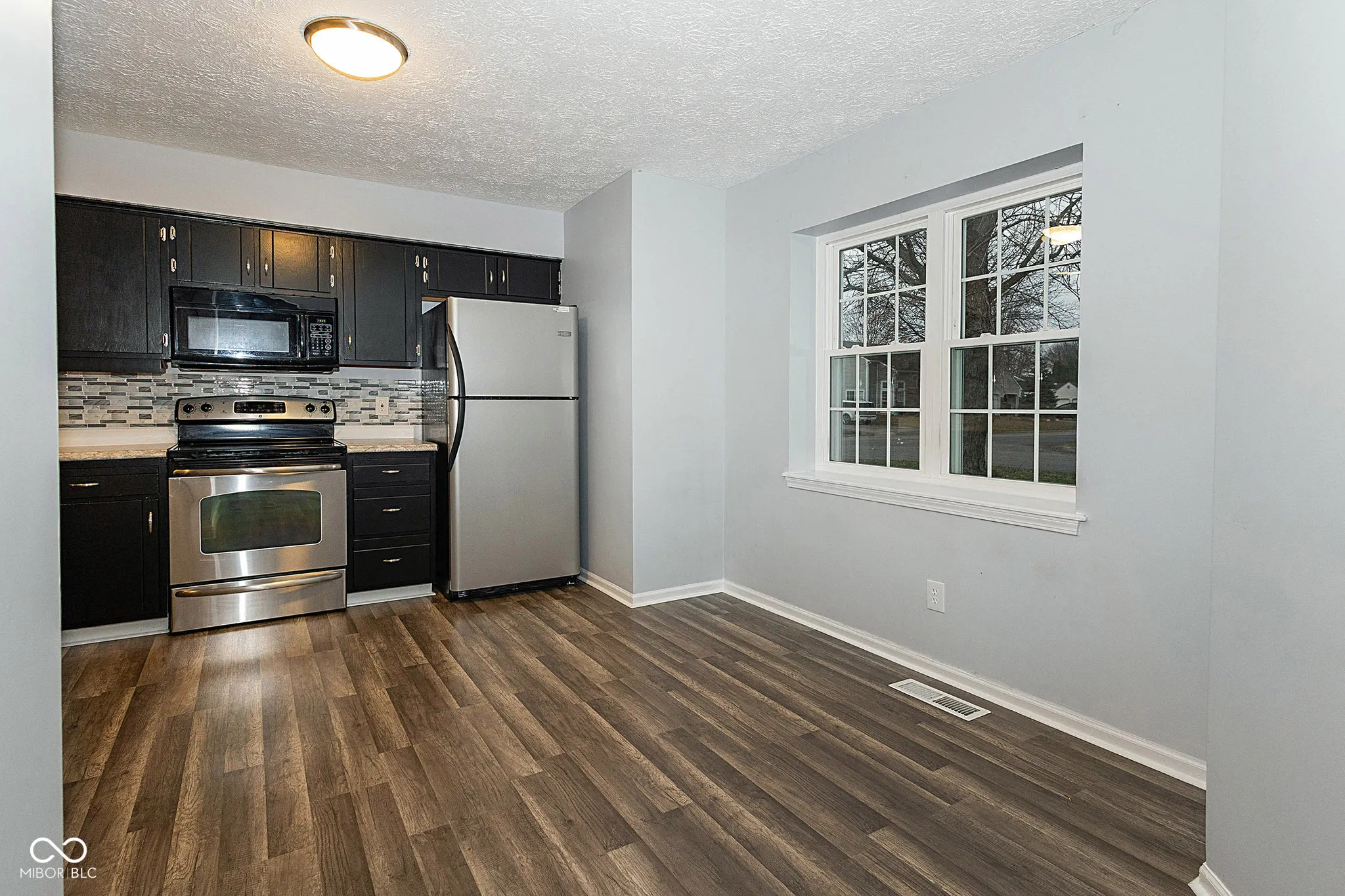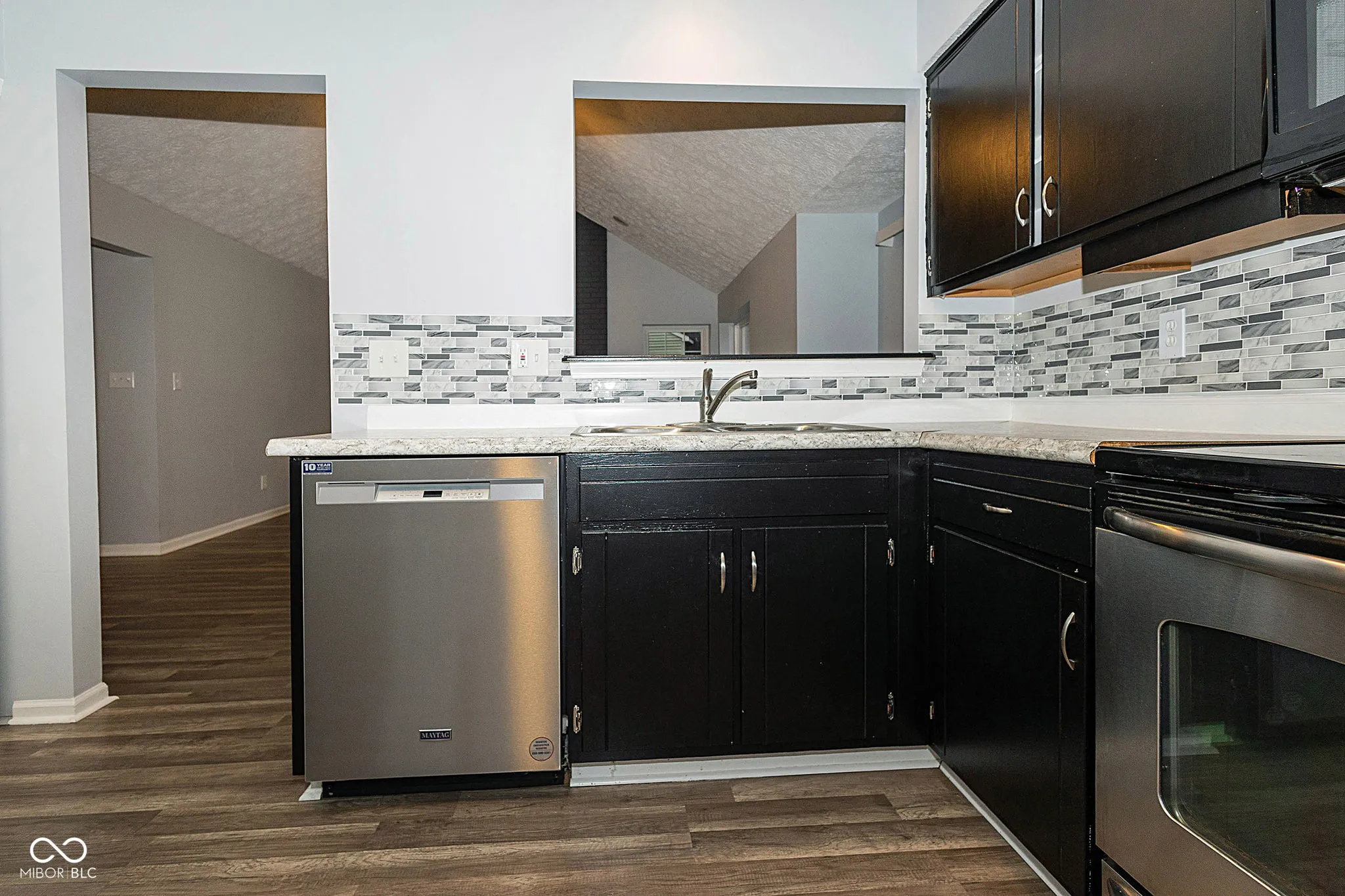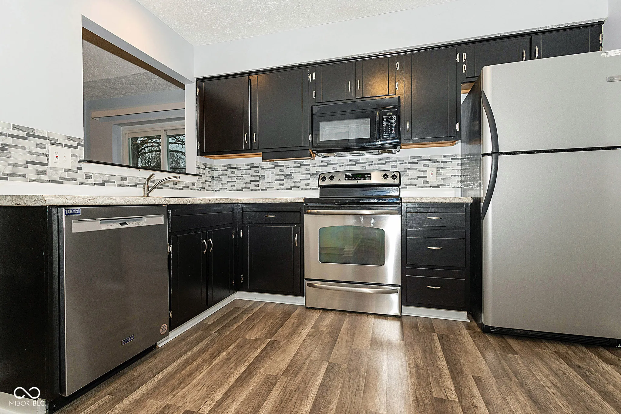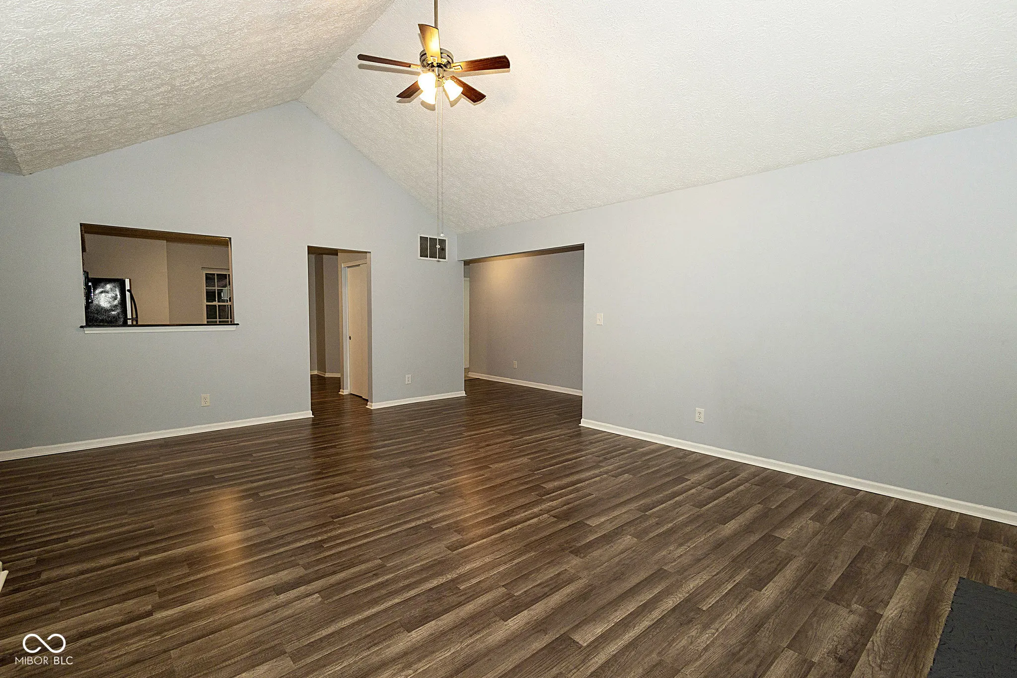Stunning Home in Popular Highlands at Eagle Creek, just a few minutes distance to the beautiful Eagle Creek Recreation Area. You will fall in love with the Exterior as you admire the lovely BRAND NEW Windows, BRAND NEW Roof, grey siding highlighted with white trim and brick accents but as you walk in, you will truly become mesmerized with this magnificent home. The Great Room has Cathedral Ceilings, tall windows and newer Vinyl Wood Flooring and there is a Floor to Ceiling Brick Fireplace that is the main focal point of this amazing space! Kitchen is large with updated Cabinets and Countertops, Backsplash and all Stainless Steel Appliances are included. The Dishwasher is Brand New! The Primary Bedroom is VERY large with room for all of your furniture needs AND MORE and there are ledges on the windows for you to display your plants or pictures! The Primary Bathroom has beautiful countertop and sink, lots of space with the Walk In Closet and the Bath / Shower is highlighted with beautiful tile work. Two additional large bedrooms and lovely Guest Bath too! Laundry Room includes Washer & Dryer. Outside you have a private patio that has been added and a privacy fence as well. Firepit for the cooler nights and lots of space for entertaining. New Water Heater and this entire home has been updated recently – all you need to do is to move in. This home will not last long – hurry and come see it TODAY!
