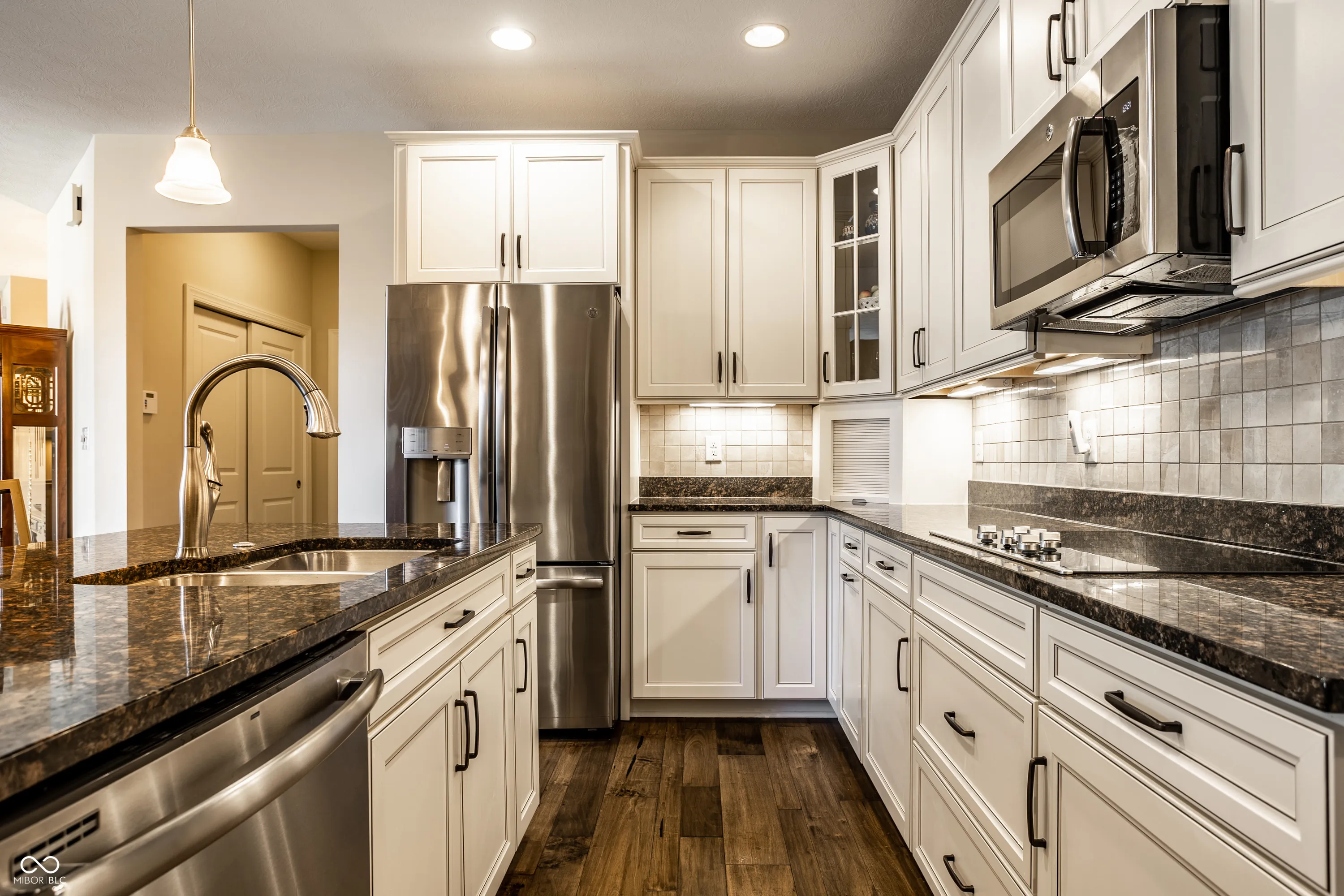 Enjoy easy living in this luxury condominium neighborhood, The Courtyards of Zionsville. Thoughtfully designed home is open and cheery with sun-filled windows everywhere! Top-notch amenities include hardwood floors, granite countertops, stainless steel appliances, built-in bookcases, beautiful cabinetry, customized walk-in closets, storage galore. Main level living areas flow together forming an inviting hub, perfect for large or small gatherings. French doors lead to a quiet den/library complete with built-in desk & bookcases. The master suite features a walk-in shower, huge closet detailed with drawers and pullouts, and offers access to the private screened porch. There’s a 2nd main floor bedroom too! Upstairs is a comfortable living quarters for family or guests complete with 3rd bedroom, family room, wet bar & frig, another huge walk-in closet. For your outside enjoyment, there’s a screened porch, private patio, and neighborhood sidewalks, pool and clubhouse.