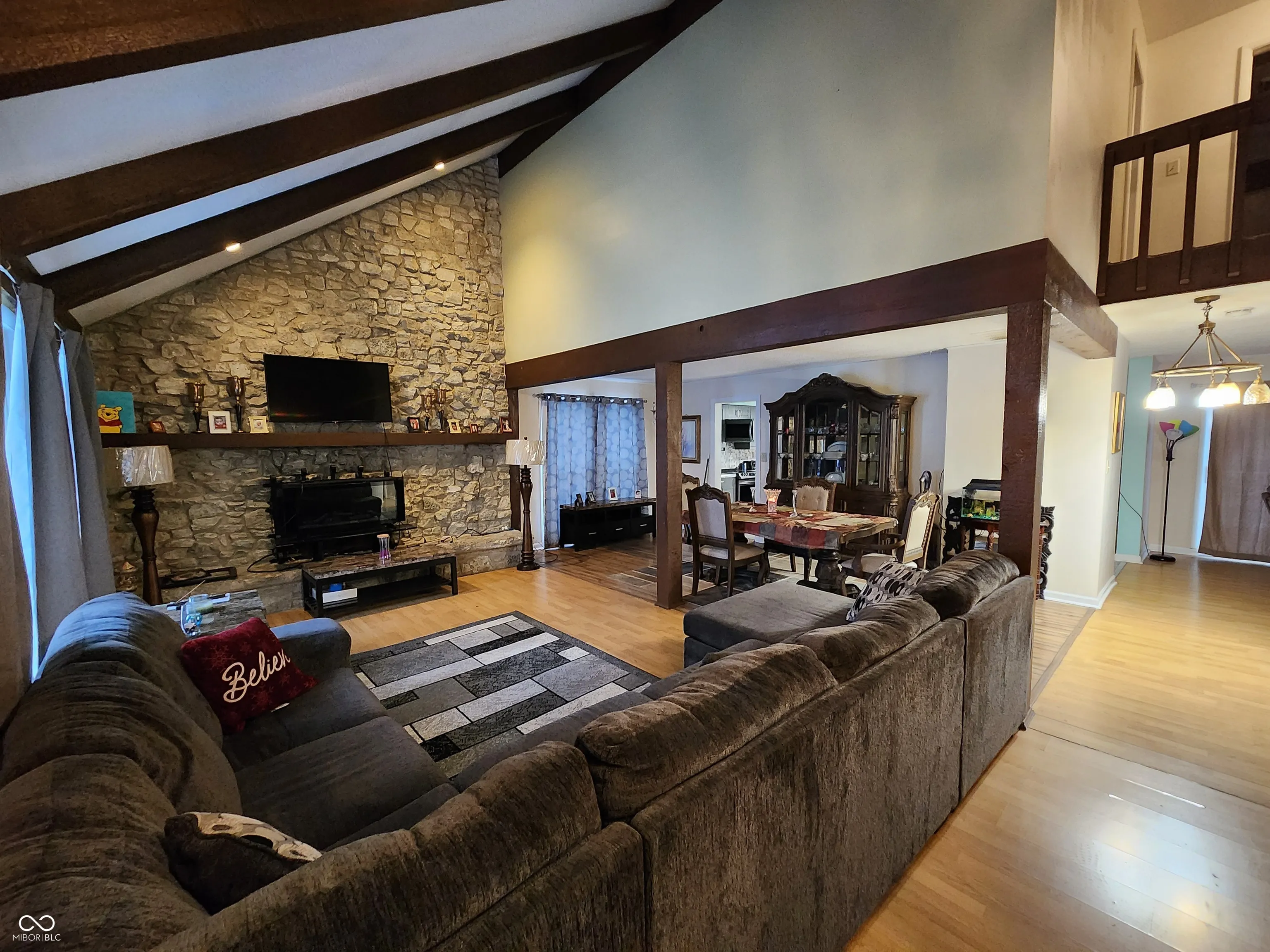 Check out this unique stone 5 bedroom, 2.5 bath home in Yorktown School District! Located in Meadowbrook Manor. this home offers a lot of space for the entire family to enjoy. The vaulted beam ceiling living room provides a beautiful stone fireplace. The dining room offers a open concept with the living room. Off the fully renovated kitchen, is a spacious family room. A Patio door the leads out to a private back yard and patio to enjoy the outdoors. The kitchen has newer cabinets, appliances, flooring, counter tops, and a water purification attached to the sink. The downstairs bedroom has been converted to an amazing spacious laundry room (which can be converted back to a 5th bedroom if needed). The upstairs offers 4 bedrooms and a full bathroom. The owner bedroom has its own full bath and double vanity, with walk-in master closet offering plenty of storage. A surprise awaits you as one bedroom offers a huge storage bonus room that you will definitely like. The 2-car attached garage has a new updated beautiful epoxy floor in 2021. A new roof was installed in 2023. A new water heater and water softener installed in 2021.