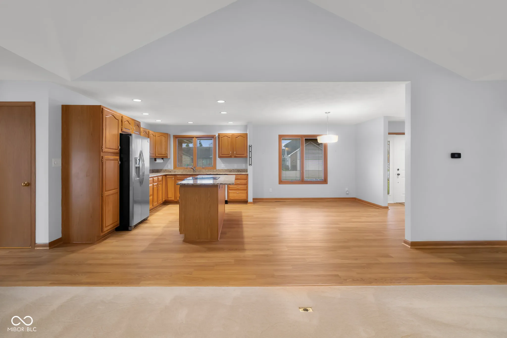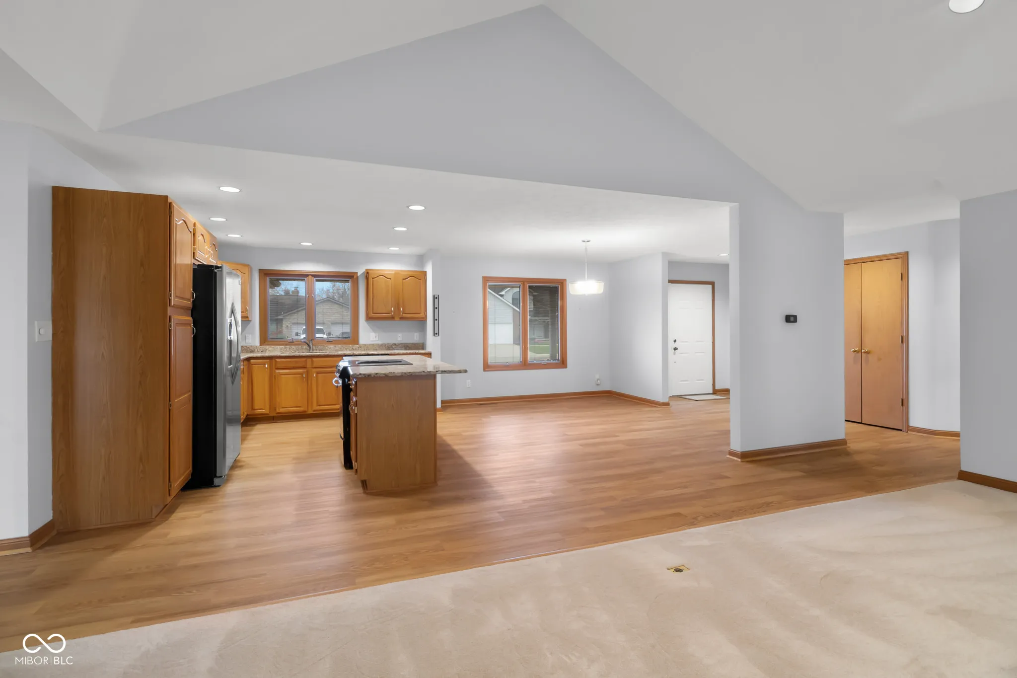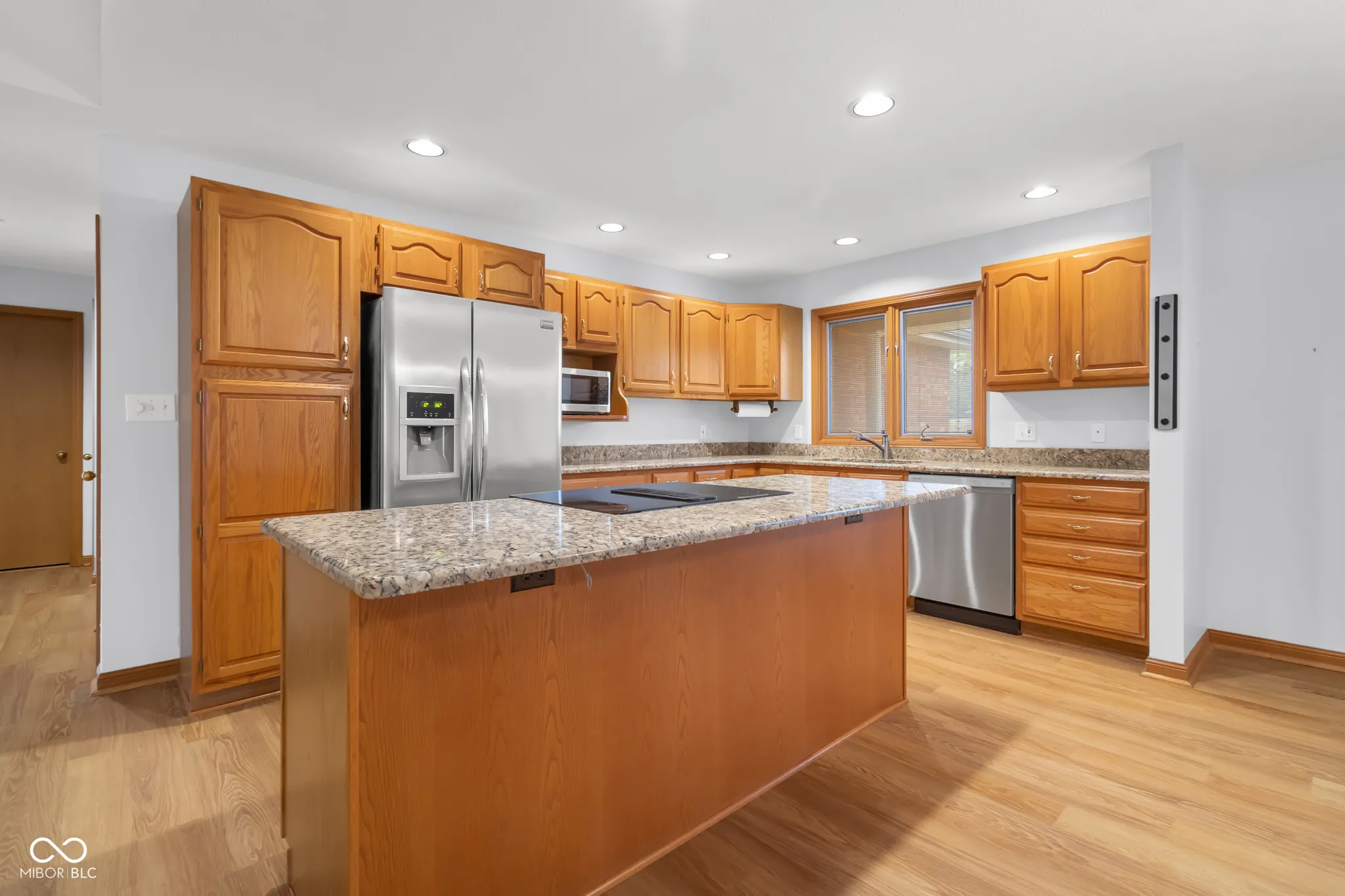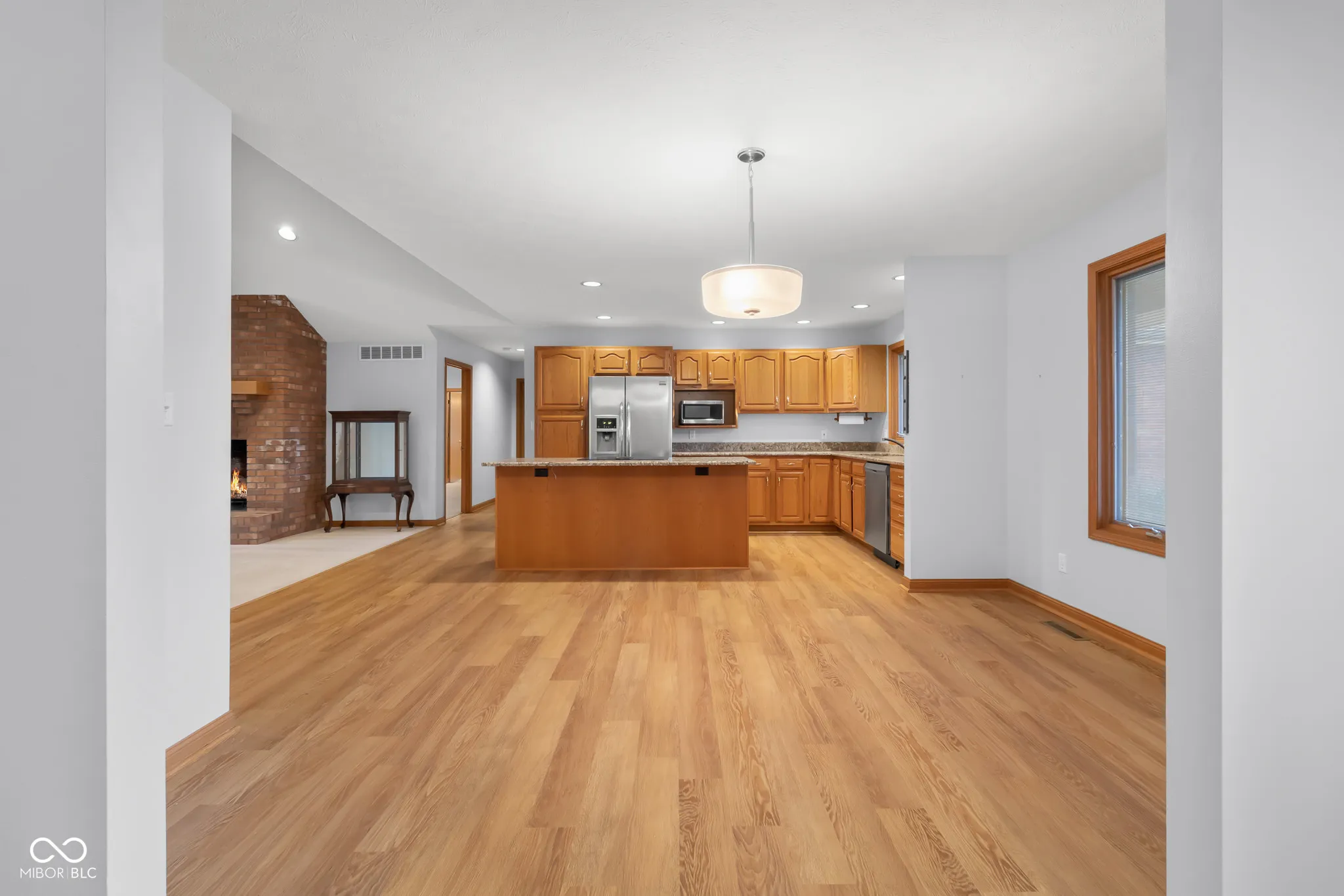 This spacious one-owner, ranch home built by Tom Banister is located in the desirable Parkside area, offering convenient access to People Trails, bike paths, schools, and shopping. With nearly 2,300 square feet on the main level, the home features a thoughtful split floor plan. A covered front porch welcomes you into a large entryway that leads to an open-concept living area. The updated kitchen boasts luxury vinyl plank (LVP) flooring, granite countertops, and stainless steel appliances. The expansive master bedroom features a vaulted ceiling and a beautifully updated en-suite bath, complete with double sinks, granite countertops, a tiled walk-in shower, and a generous walk-in closet. The large Great Room, also with vaulted ceilings, includes a brick fireplace and opens into a bright Sunroom with oversized windows that provide views of the backyard and large deck-perfect for entertaining. Recent updates include a new water heater and irrigation system. The roof is just 10 years old. This home is meticulously maintained.