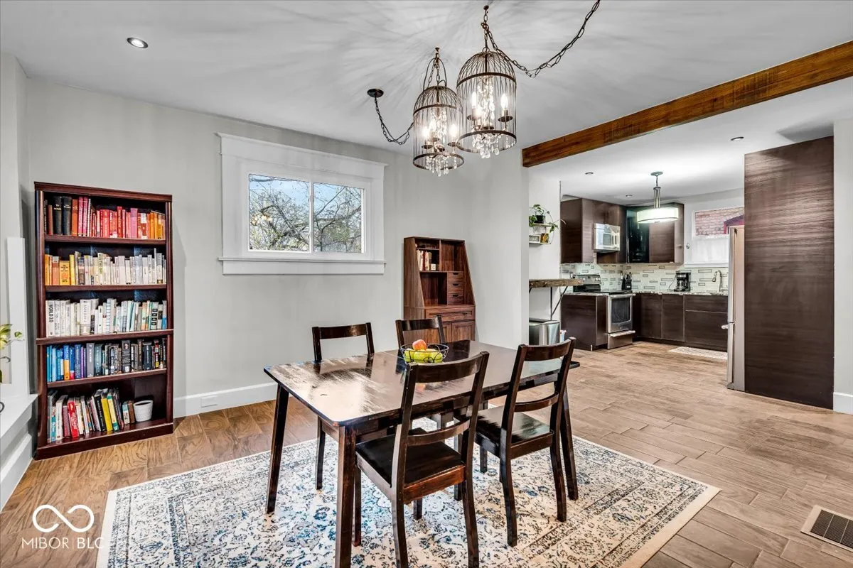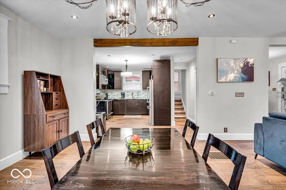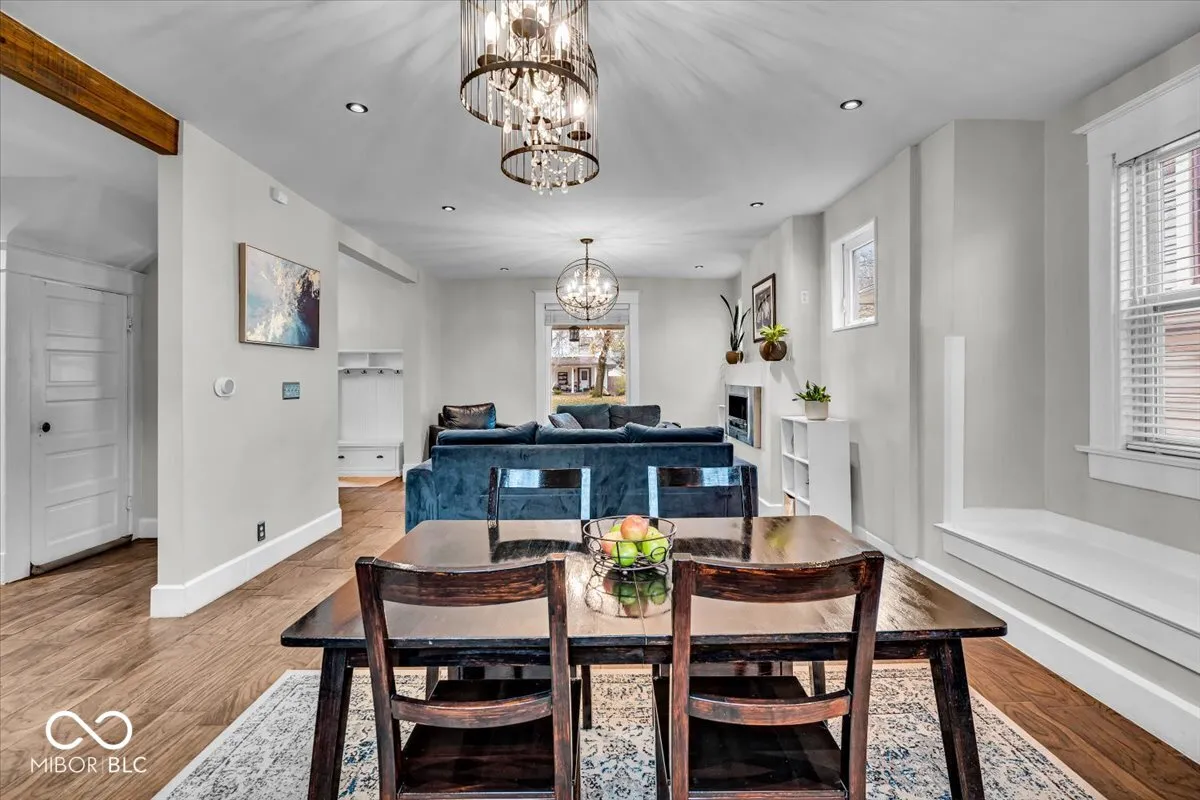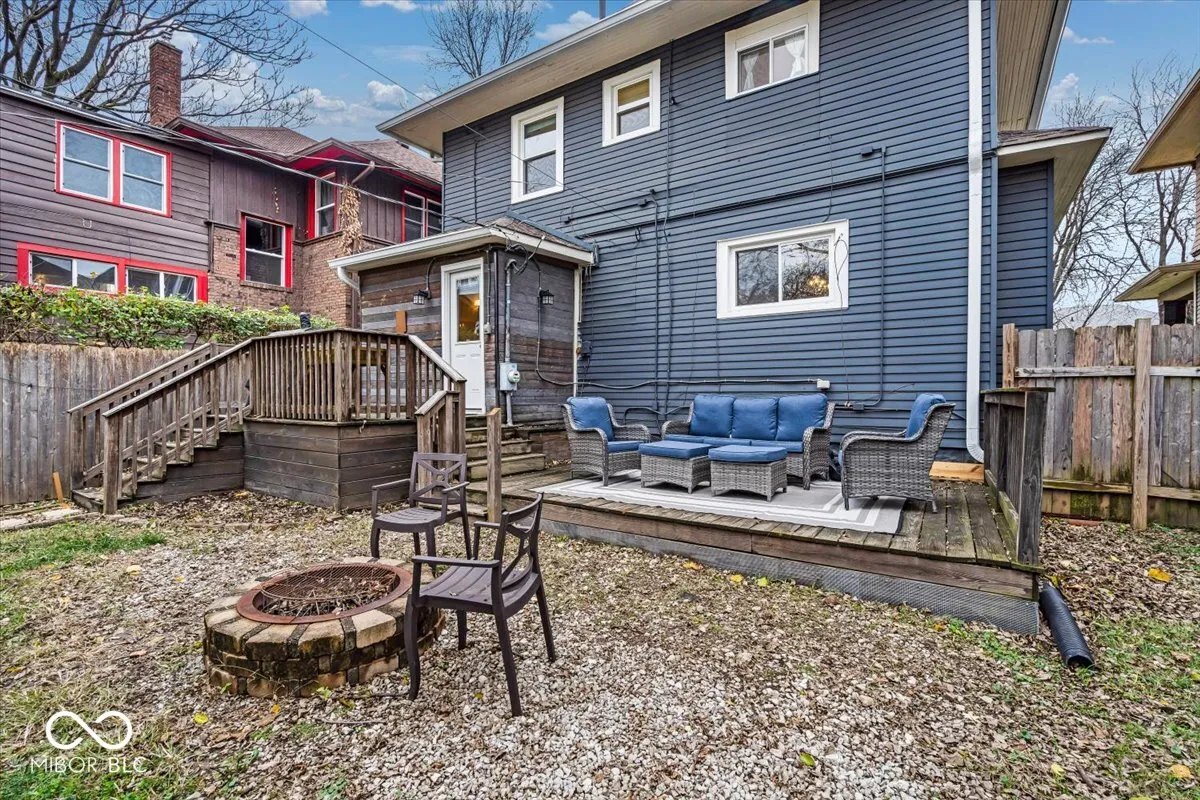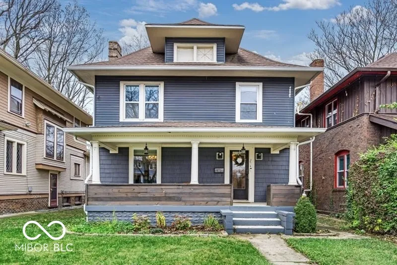 Updated traditional Midtown home offers historic charm with modern updates you will appreciate! You’ll fall in love immediately starting with the curb appeal – you’ll notice the large, covered porch and beautiful original front door. A large foyer welcomes you in, where you’ll find a gorgeous, open concept main level. The living room includes a modern fire place, and seamlessly flows into the spacious dining area, making hosting/entertaining so easy. The kitchen offers tons of cabinets and stainless steel appliances. A unique double staircase wraps around to lead you upstairs, where you’ll find 3 bedrooms, including a primary suite with a walk-in closet and beautiful bathroom. Another staircase leads to the massive attic space – use for all your storage OR finish the third level for a bonus room! The basement also offers tons of storage, with a partially finished area for your laundry room. The backyard is fully fenced in, with access to your 2 car detached garage. A deck and fire pit allows for outdoor living, perfect for fall and summer gatherings. The neighborhood comes with FREE memberships to both the Indianapolis Children’s Museum and Newfields! This one is a true gem – schedule your showing today!!