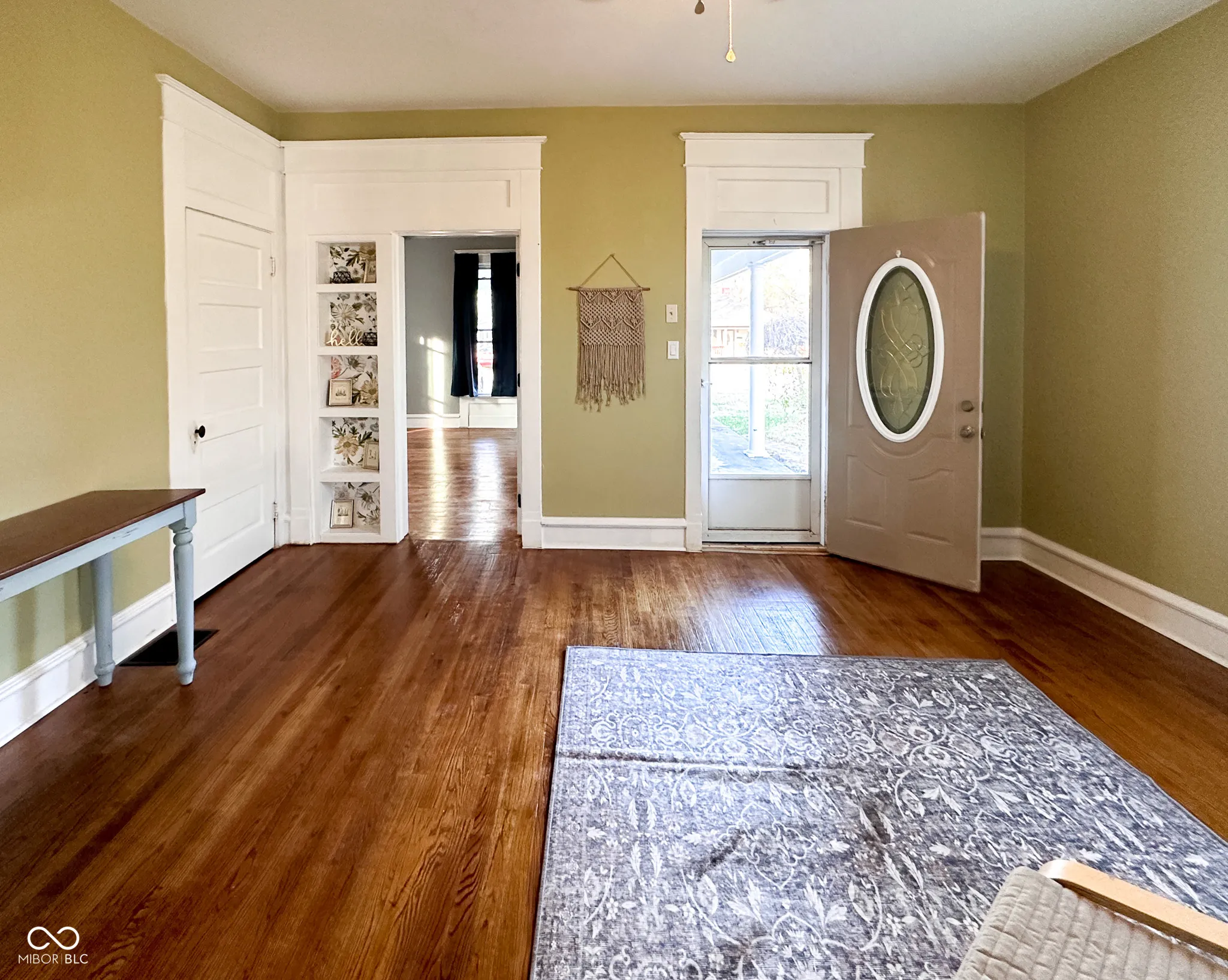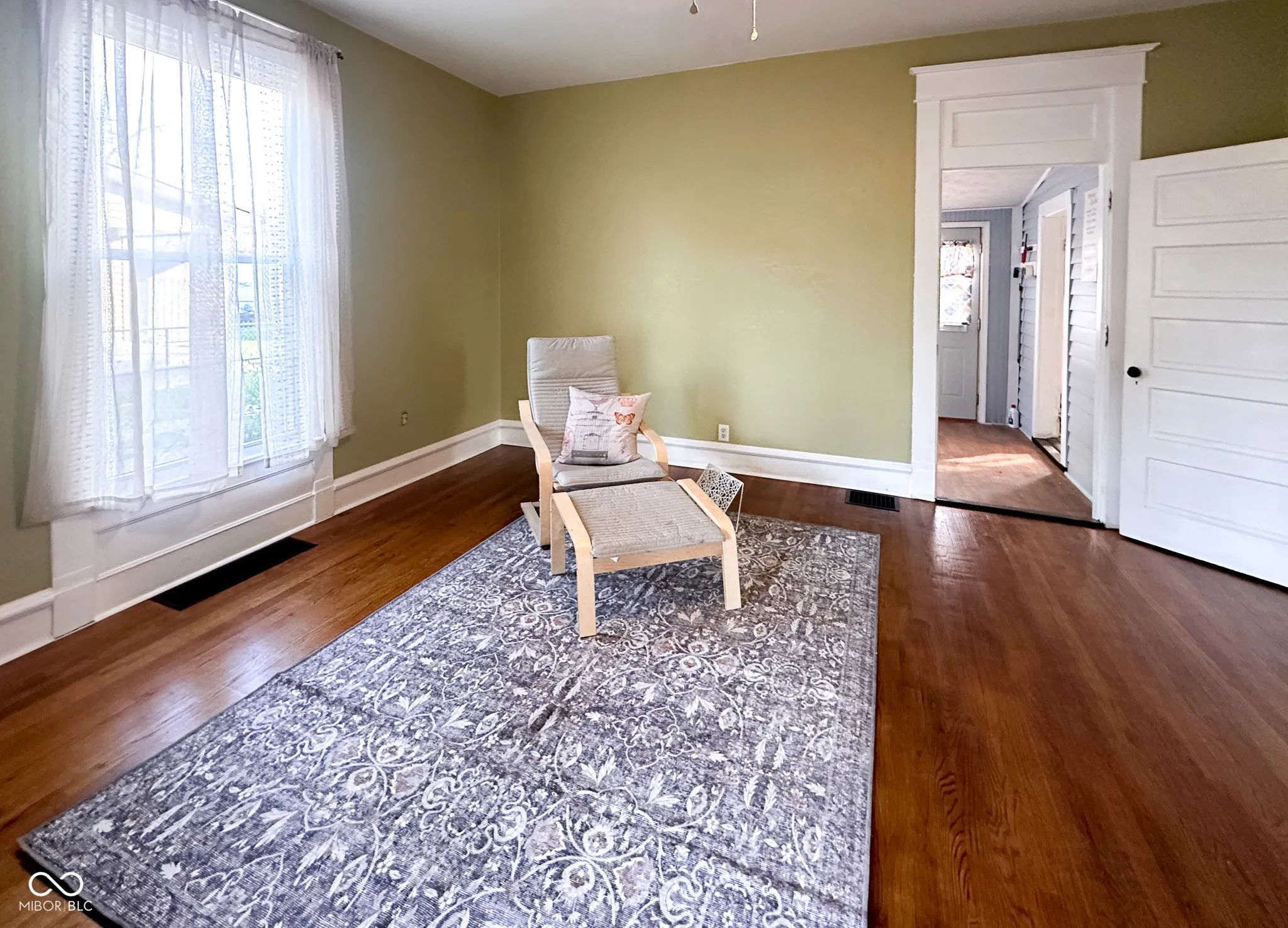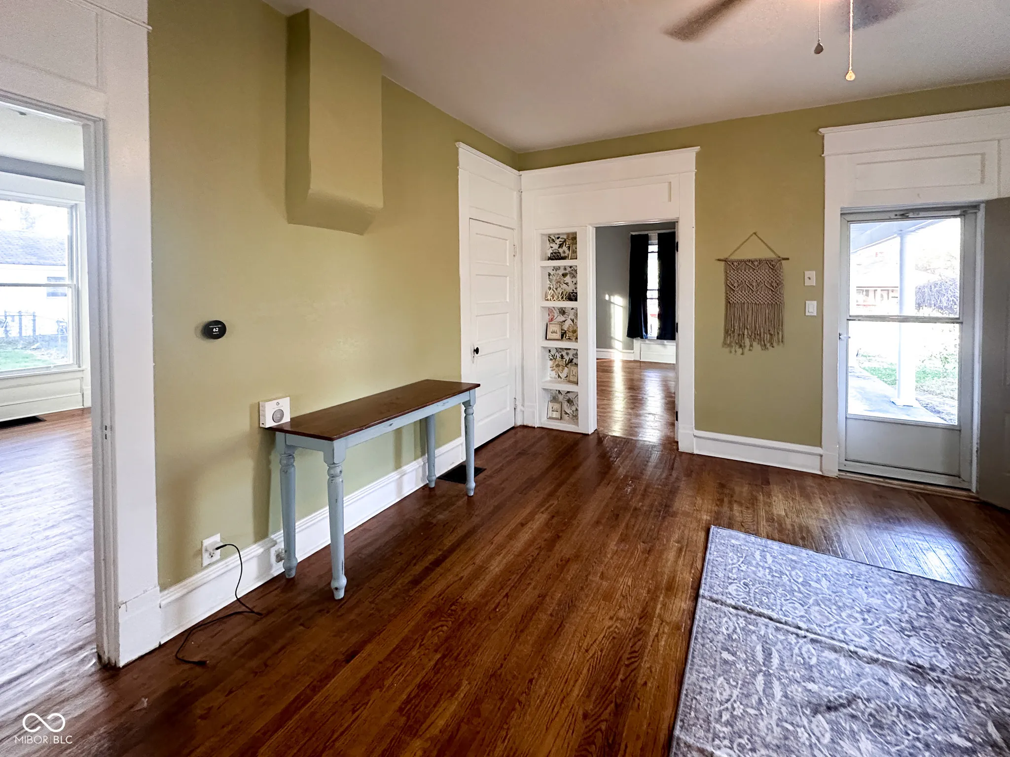 This three bedroom home has historic charm and character. Featuring custom built-ins, original hardwood floors and trim, as well as soaring ceilings. Recent updates include fresh drywall and paint, refinished floors, a completely renovated bathroom, updated light fixtures, a new thermostat, a gas water heater, and more! The Home sits on a double lot with a fully fenced backyard with a fire pit, a deck, and hammock posts-ideal for relaxing or entertaining. The front porch has updated blue vinyl and a covered porch. Two of the bedrooms are exceptionally spacious, offering versatility to suit your needs. A detached garage and cellar-style basement provide ample storage, while the mudroom with main-level laundry adds everyday convenience. With over 1,300 square feet of living space, this home also comes with kitchen appliances and window treatments included. The newer HVAC ensures comfort in every season.