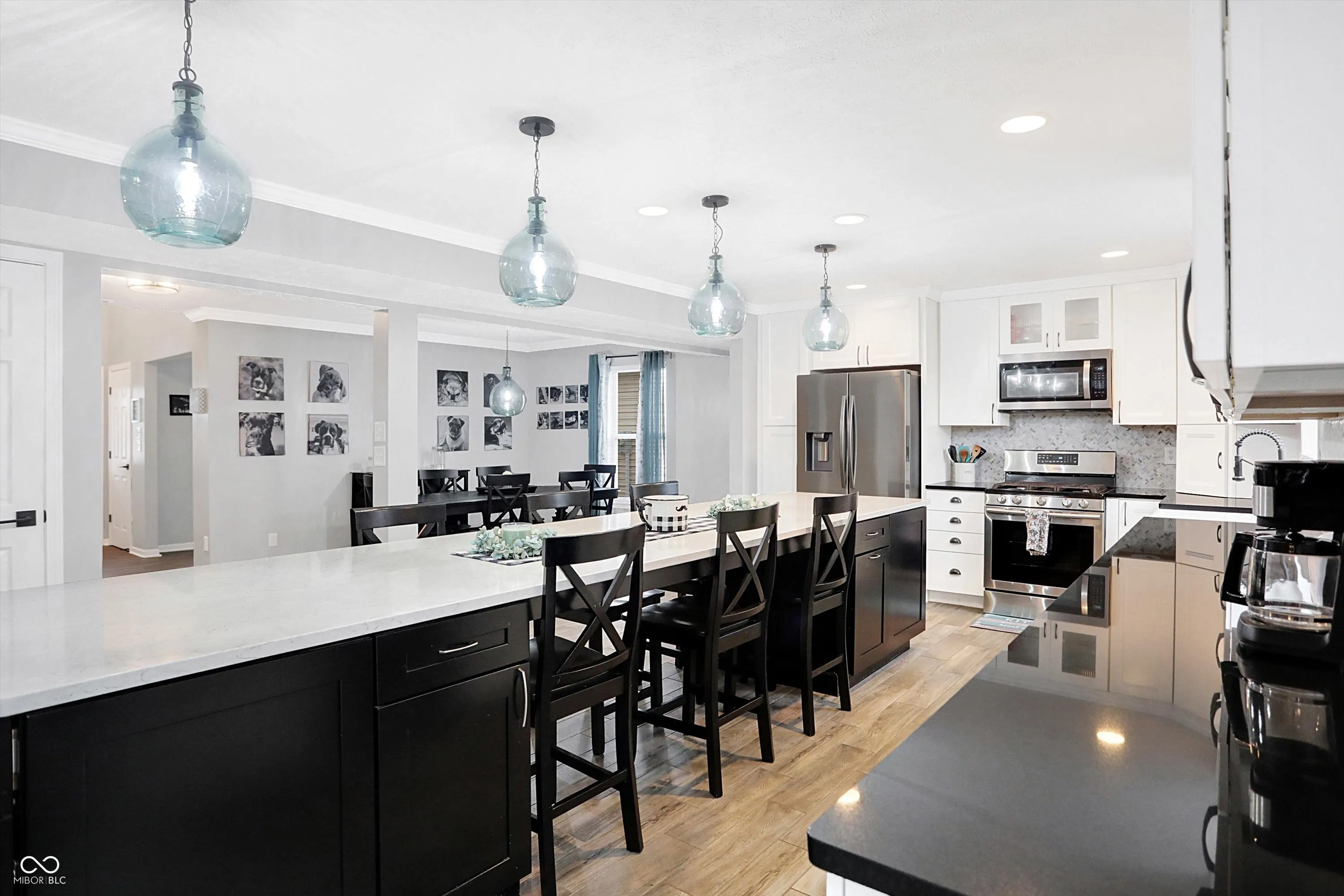 You’ll fall in love with this beautifully updated 3-bedroom, 2.5-bath home that spans nearly 3000 sq. ft. and has perfect views of the pond. The kitchen boasts a 14-ft island that seats 6, black granite and white quartz countertops, custom drawers and cabinets and newer stainless steel appliances. The kitchen has an open concept to the formal dining room and family room, which has a tile surround gas fireplace and custom bookshelves. The office is just off the 2-story entry and also includes custom bookshelves. To complete the downstairs, porcelain tile plank flooring and crown molding has been added. The upstairs consist of the bedrooms and loft with its own walk-in closet and hardwood flooring. The primary bedroom boast a separate sitting area, a large custom closet and solid hardwood flooring. The primary ensuite has been completely reconfigured to include a walk-in wet room with a soaking tub, deluxe shower that’s surrounded in porcelain tile and double sinks with additional storage. Each closet throughout the home has been updated with custom shelving and specialized drawers. You’ll enjoy the backyard views of the pond while sitting on the large patio covered with glowing lights from your own pergola; or visit the neighborhood pool and playgrounds during the warmer months. The newer mechanicals are located in the garage to save on living space and the convenience of a dog shower has been added. Too many updates to list….ask for the Home Details page!
