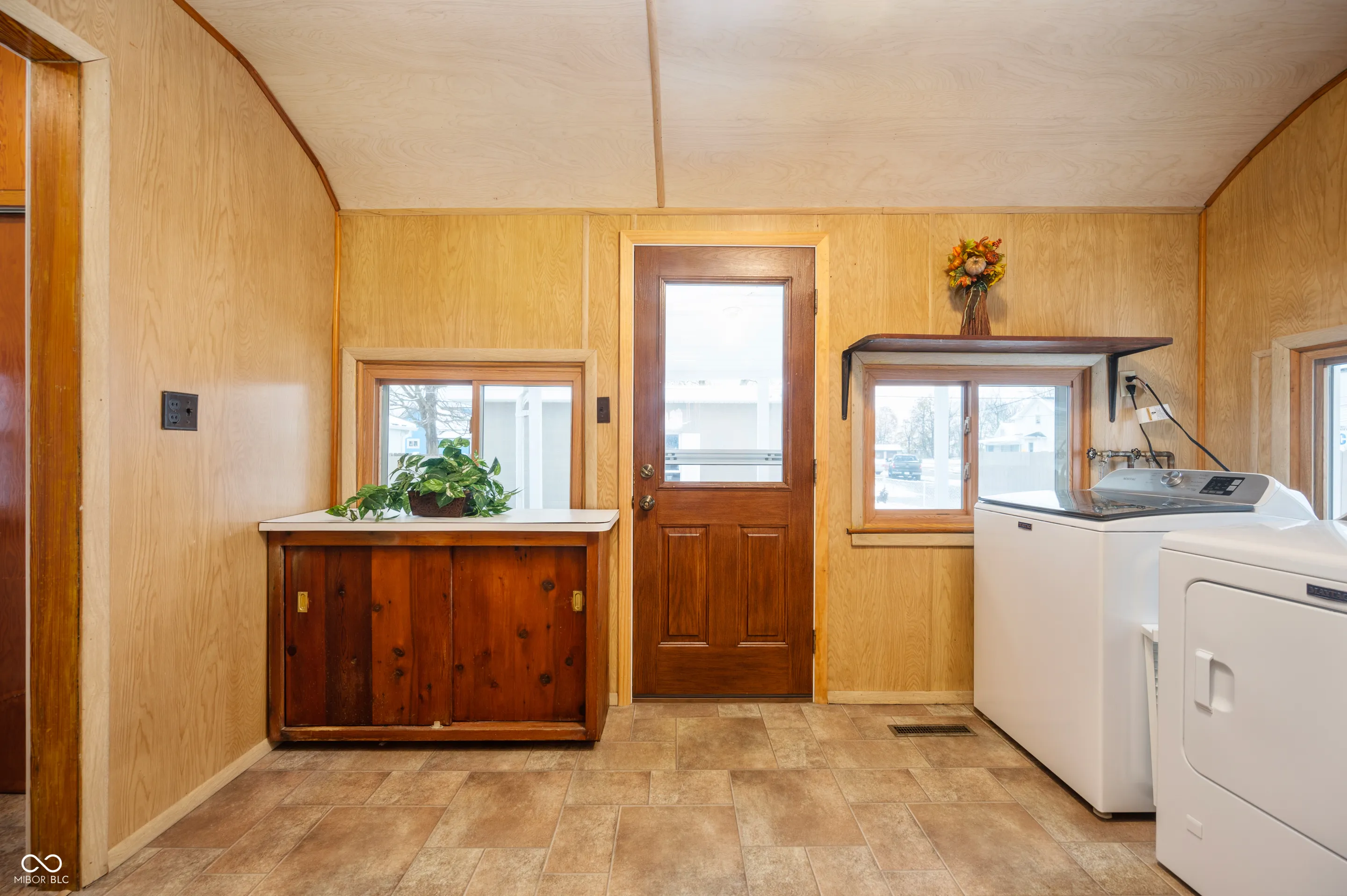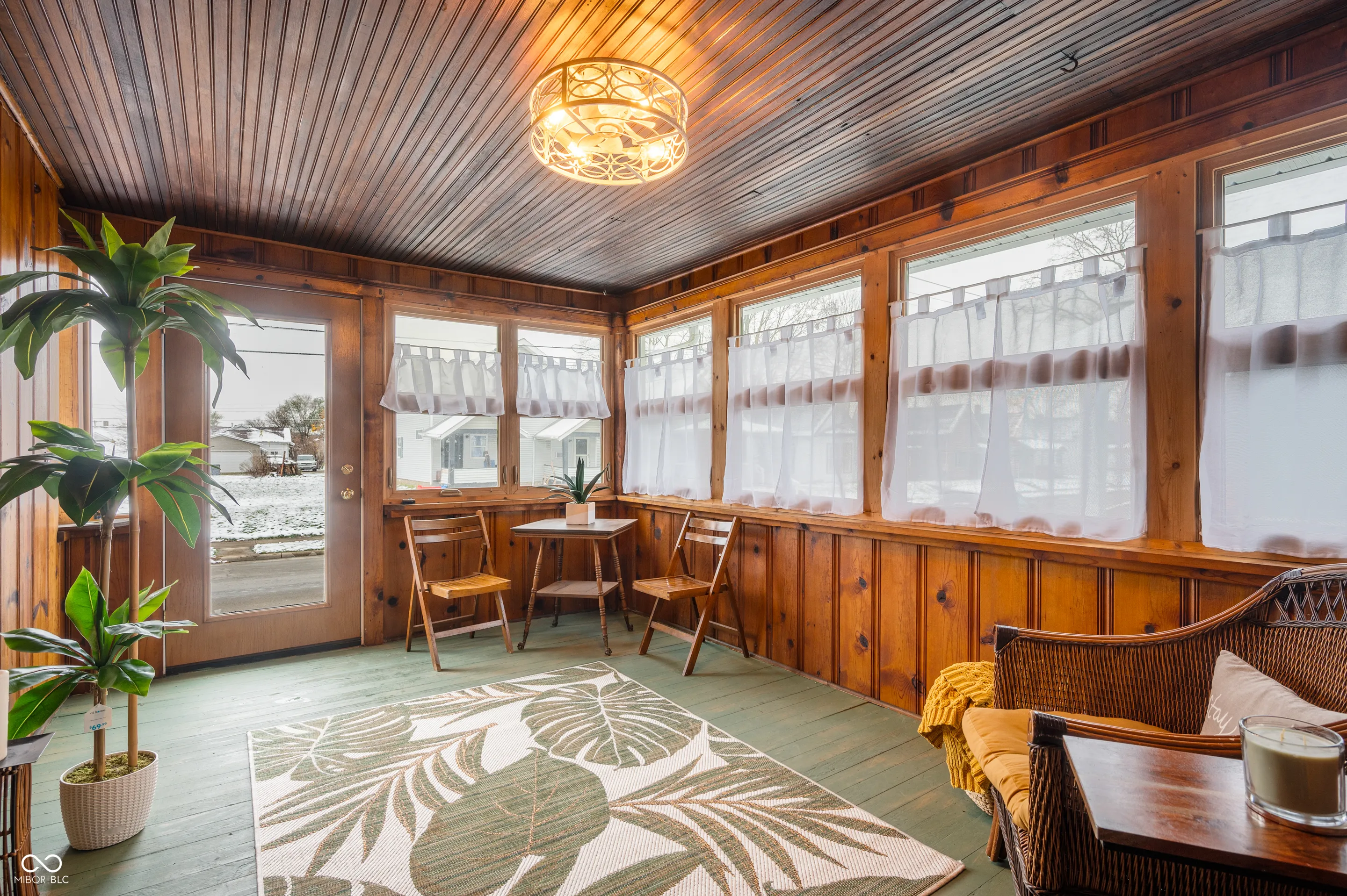 Welcome home! As you enter the home you are welcomed by a cozy sunroom with lots of windows & a knotty pine ceiling. The perfect place to enjoy your morning coffee. The kitchen features new vinyl flooring, knotty pine walls & cabinets, a new sink, faucet, backsplash and lighting. The bathroom has been updated with new lighting, flooring, sink & vanity. The living room and 2 spacious bedrooms have nice hardwood floors and large built in closets. The dining room is spacious and could be converted easily to a 3rd bedroom. This home has a large laundry/mud room & and newly redone walk-in pantry with new shelving. All new paint inside and out. Newer windows, roof, furnace & central air. The oversized 2 car garage has a separate electrical panel with outlets throughout and a separate workshop. Covered back porch & back yard is fenced in with new privacy fences on each side. Also, brand new landscaping around the house. Appliances included.