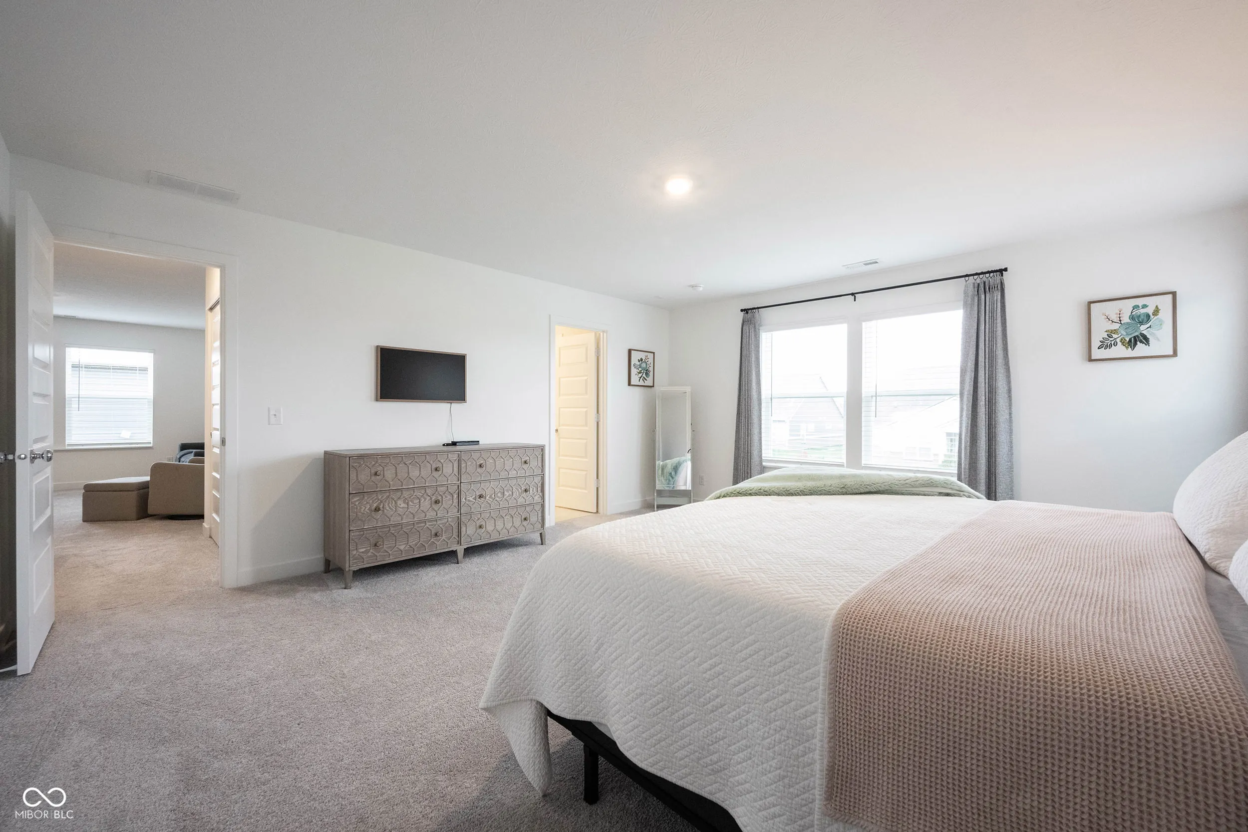 Welcome home to this spacious, light and bright, move-in ready property featuring 5 comfortable bedrooms and 3.5 elegant bathrooms, including a desirable ensuite bedroom with full bathroom on the main level. The main level also provides a sizable home office with french doors. The gorgeous kitchen is equipped with stainless steel appliances, gas cooking, and stunning quartz countertops. It also boasts a center island, large pantry with custom shelving, and plenty of storage space. The open floor plan with connection between the living room, dining room, and kitchen is perfect for everyday living and entertaining. The mudroom area includes a functional bench and convenient storage areas. The upper level offers a versatile loft providing wonderful additional living space. The spacious primary suite features a private bathroom with double vanity, large walk-in tiled shower, water closet, and large walk-in closet with Container Store ELFA custom storage that can be customized for your storage and organizing needs. An additional three bedrooms and full bathroom are also located on the upper level. Enjoy the Brooks Farm neighborhood amenities like the pool and playground as well as the great location close to shopping, dining, and entertainment. Welcome home!