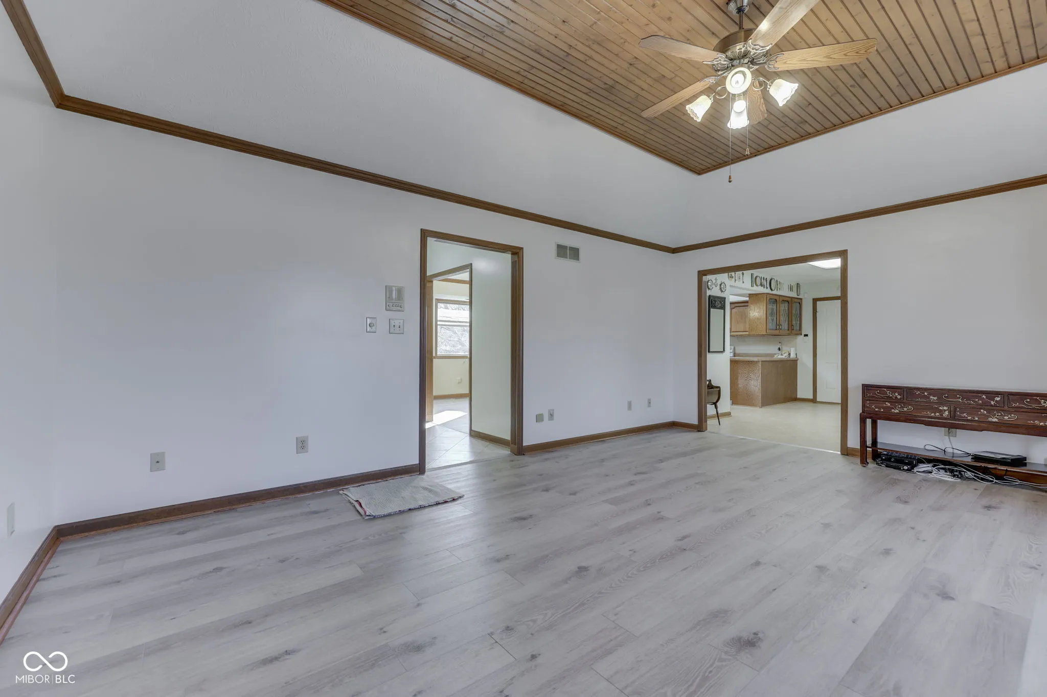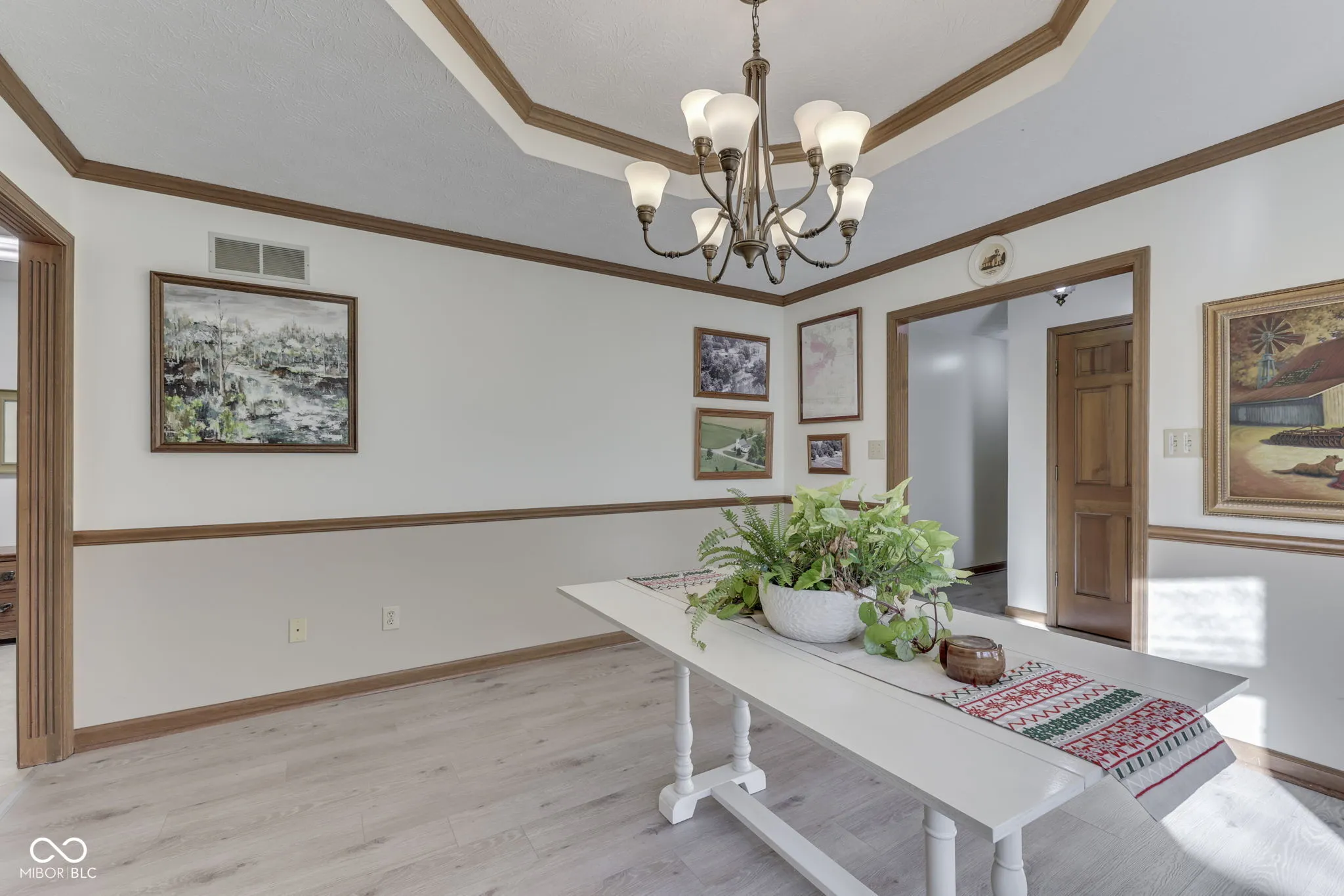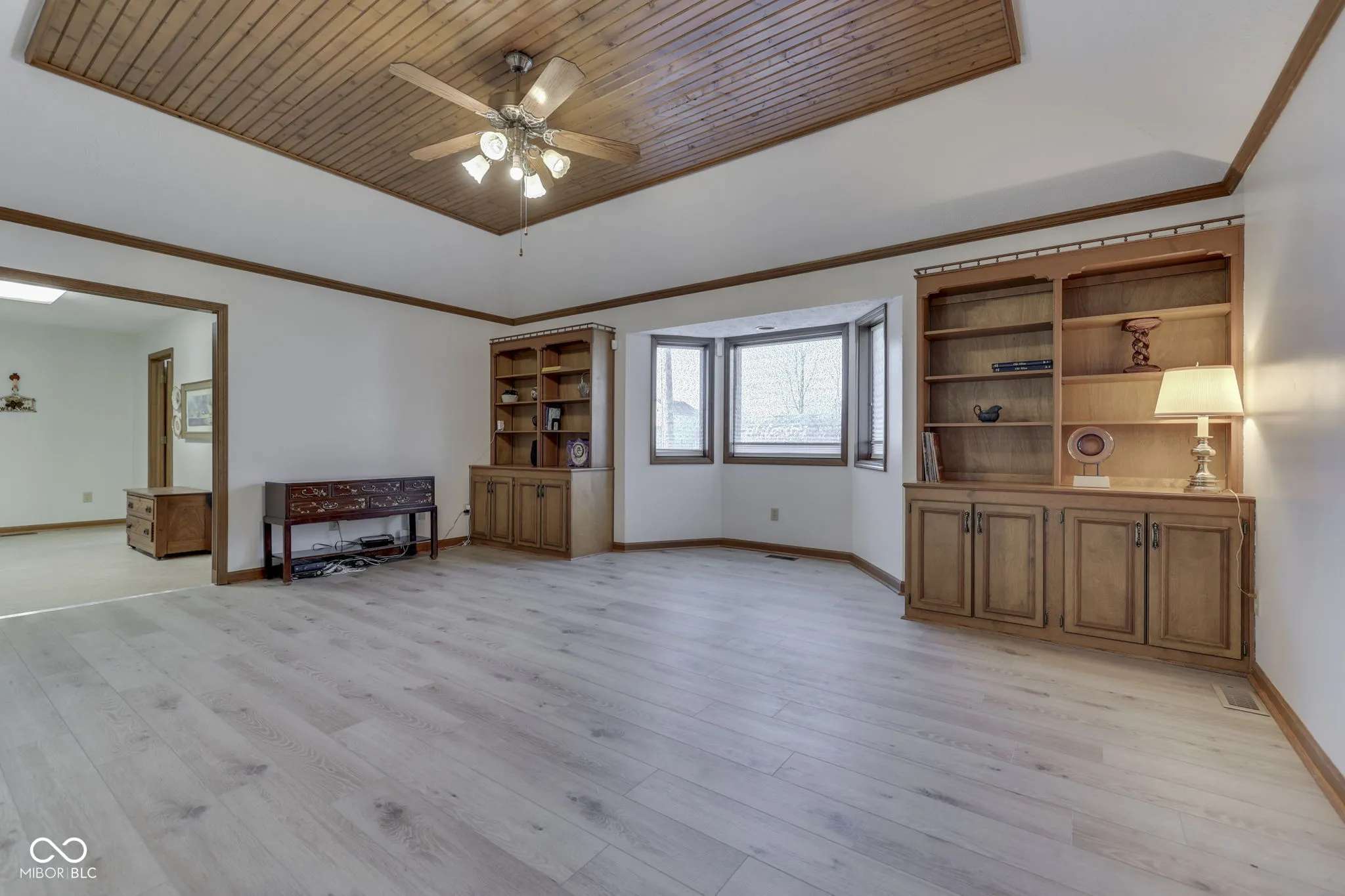Attractive & Individually designed Custom built 3 BR/2.5 BA All Brick Ranch home w/ over 2500 sq ft, 3.5 car garage, on a cul de sac and no HOA is ready to go. Spacious Living room w/ bay windows, built in bookshelves and gorgeous wood inlay ceiling. Kitchen features tons of counter/cabinet space, tiled backsplash, luxury vinyl tile flooring, pantry, vaulted ceiling w/ skylight, breakfast room and all appliances stay. Formal dining room w/ tray ceiling and bay windows. Primary BR shows off pergo flooring, plantation shutters on the windows & large walk in closet. Primary BA has dual vanities, relaxing jetted garden tub w/ heat lamp & separate shower. BR2 w/ dbl closets and personal guest BA entry. BR3 w/ dbl closets. Laundry room has large clothes hanging closet, storage cabinets, wash basin sink and washer/dryer included. Sun drenched Sun Room w/ mini ductless system perfect for enjoying quiet mornings. 3.5 car garage includes lawn mower garage, wood paneling interior, epoxy flooring, floor drain, and storage space. Textured concrete patio and porch(’20) by Rick Gallegos concrete to match brick. Fenced in backyard has piped gas grill included. Don’t miss, whole home vac, Newer HEF HVAC(3-4 years old)w/ wifi thermostat, Irrigation system, pulled down attic access w/ tons of storage space, 6 panel doors and all closets lined with wood panelling. Highly rated Plainfield schools.