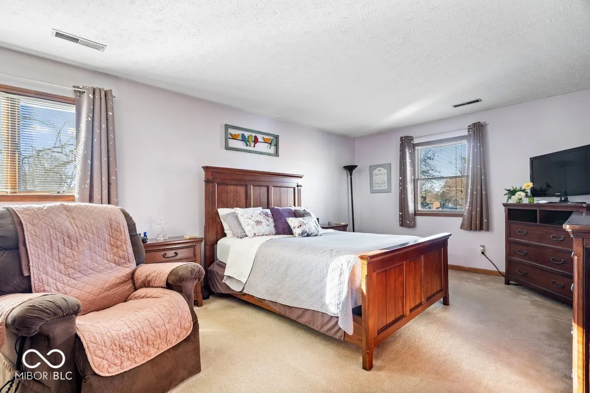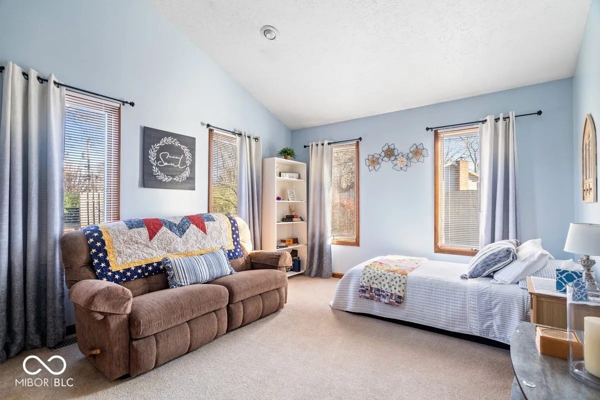Inviting and well maintained 4 bedroom, 3 full bath in popular Buffalo Trails. If you are looking for in-law quarters, this is it. Main level bedroom with full bath (walk in shower). You will find plenty of room to spread out. This lovely home features a cozy living room or rec room, office/den, spacious kitchen with ample room in the breakfast nook for a large table, great for the family or entertaining. Also offers a breakfast bar for those quick mornings. All kitchen appliances included, as well as a trash compactor. Airy great room with vaulted ceiling and fireplace. Upstairs features 3 roomy bedrooms, all with large walk in closets and 2 full baths. Primary bath has a walk in shower and double vanity, as well as a nice size walk in closet. Heading outside your focus goes to a stamped concrete patio, a deck with gazebo, and a huge storage shed. A wonderful area to spend summer evenings. Home features dual heating and cooling. Conveniently located near schools, churches, parks, shopping, easy access to I69, the airport, and downtown. Hard to beat the location!!! HOA is voluntary ($45 year). Seller has never used the gas fireplace.