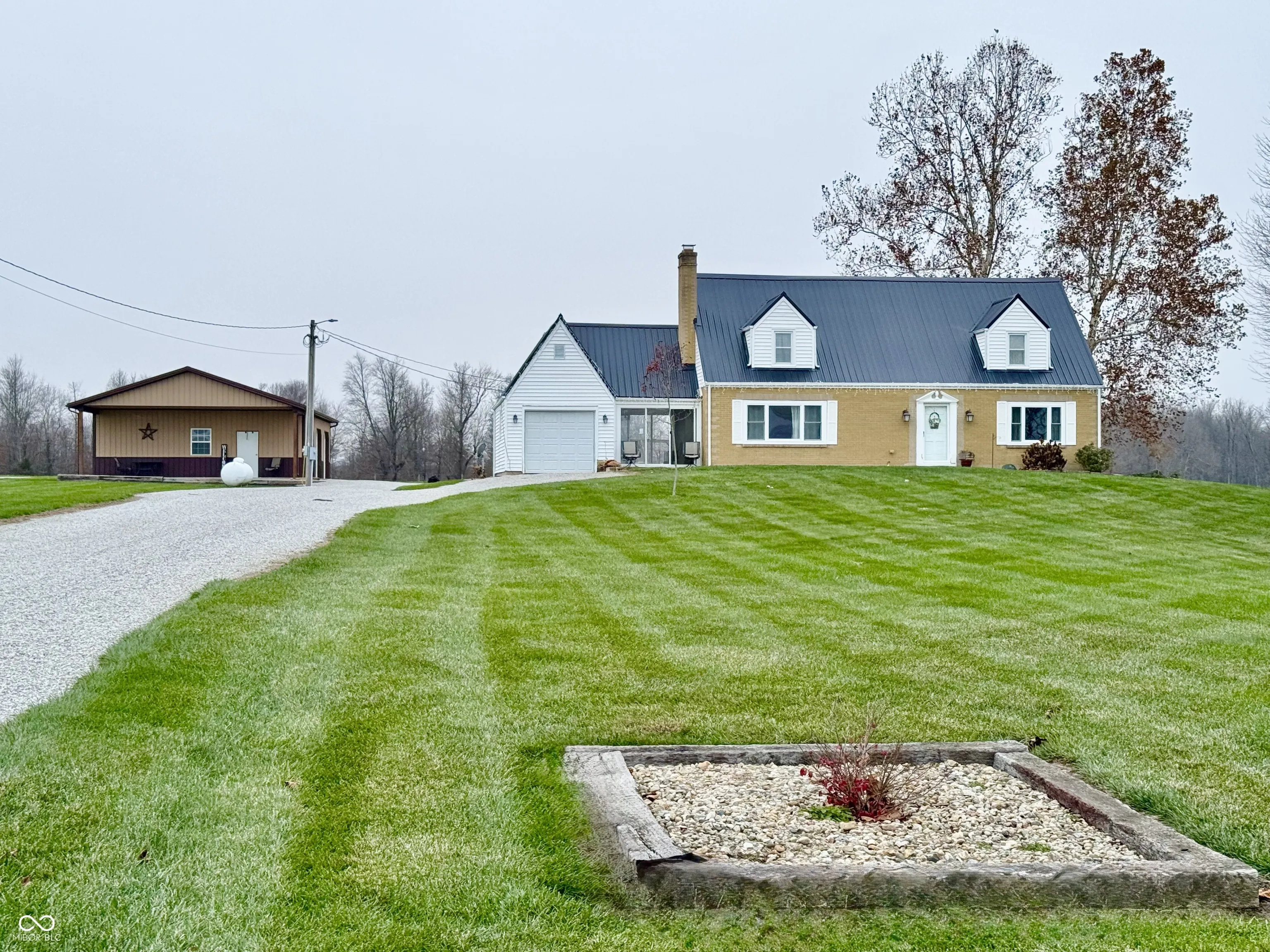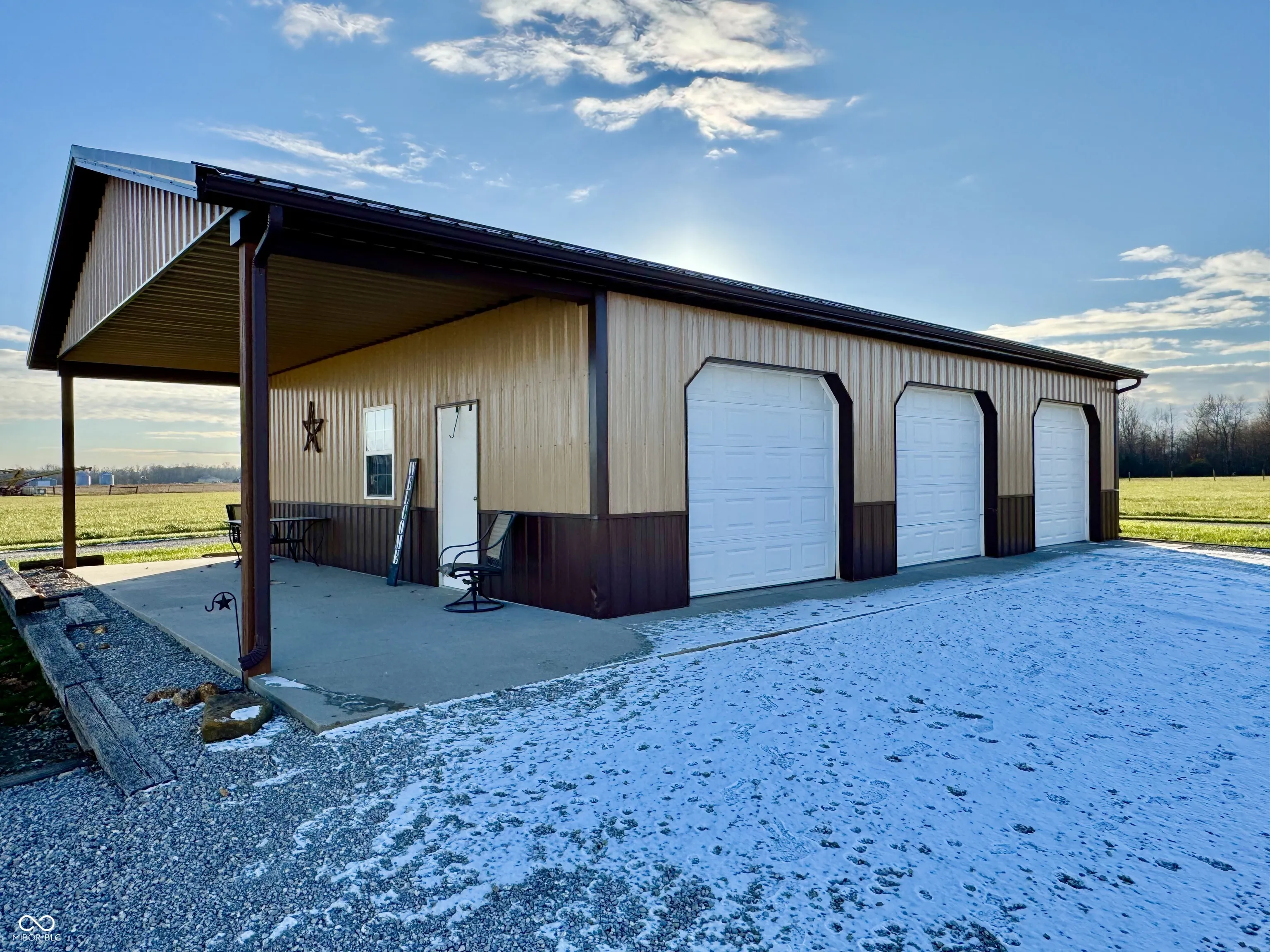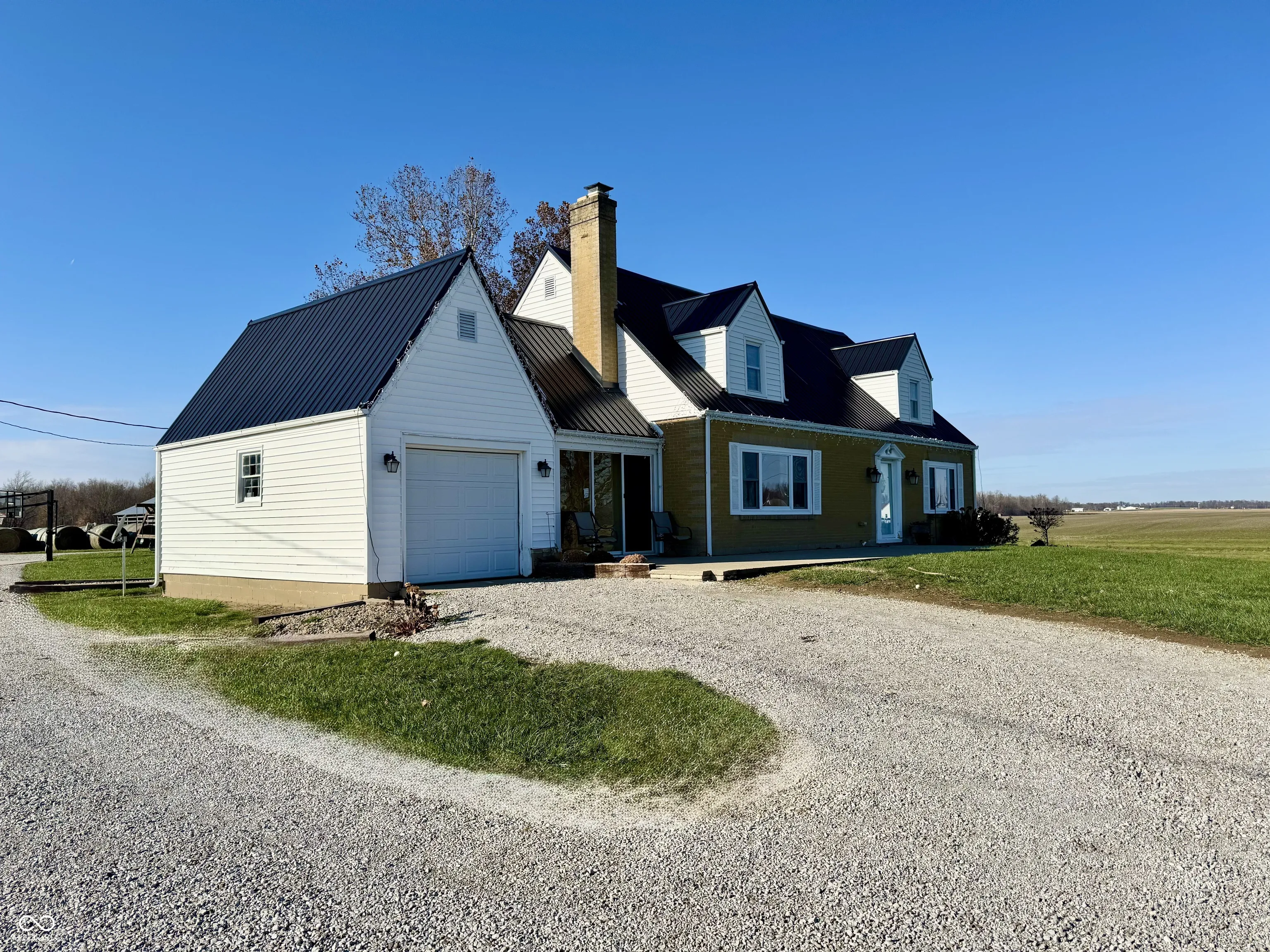Nestled in a prime location on 2 acres, this beautifully restored farmhouse combines charm and modern updates in a serene country setting. Featuring three bedrooms and 2 1/2 bathrooms, this home boasts a full finished basement, dual HVAC systems, a new metal roof, updated flooring, and a cozy fireplace. The included appliances and thoughtful updates throughout make it move-in ready. Step outside to relax on the spacious back deck, where you can soak up those Indiana sunsets overlooking open fields. The property also features a detached three-car garage, offering ample storage and workspace. This farmhouse is ready to welcome you home. Schedule your showing today!
