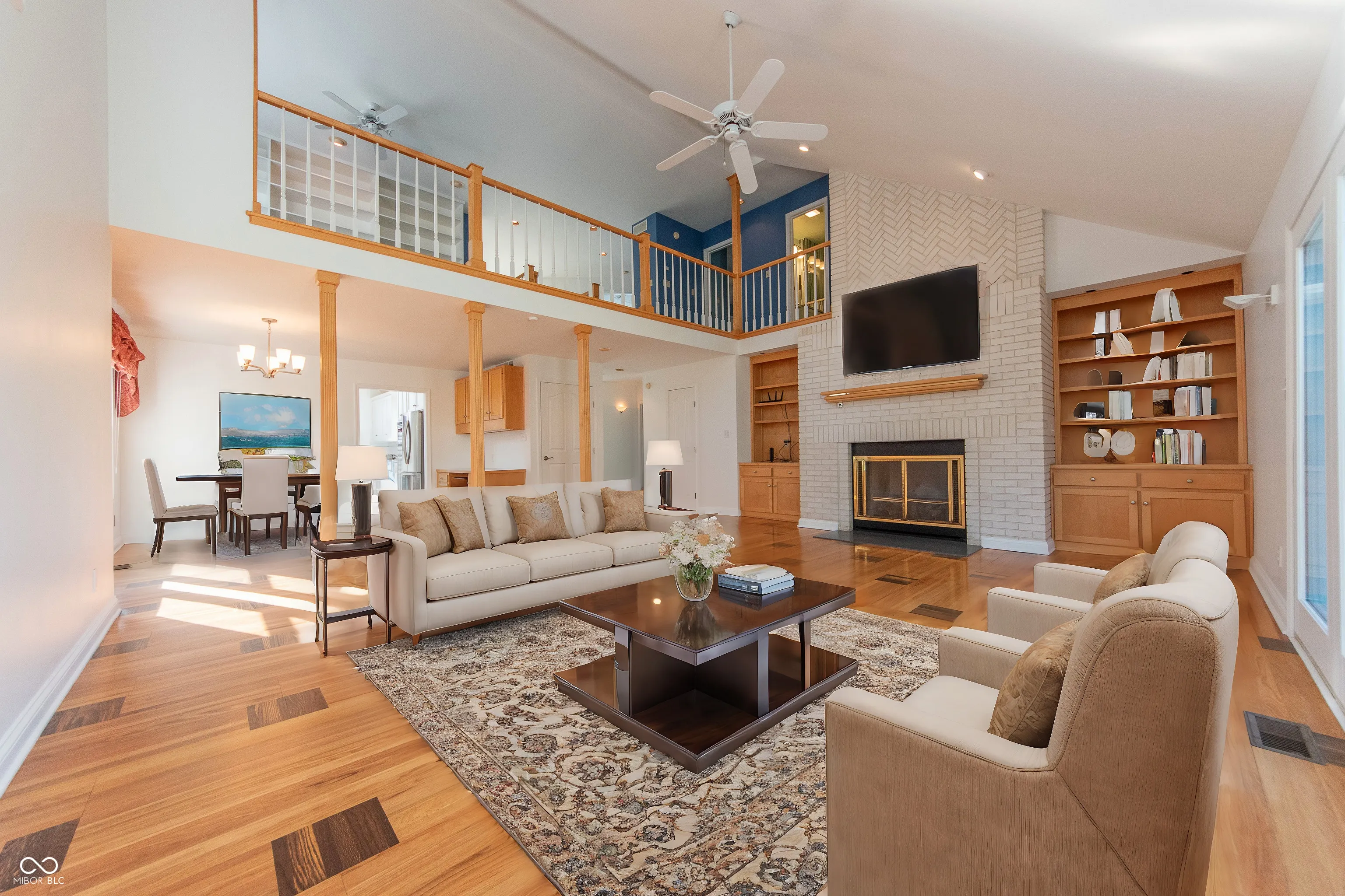 Discover this stunning custom-built executive home nestled on a spacious cul-de-sac lot in Winterberry Place of Tipton Lakes. This thoughtfully designed home offers five bedrooms, four full bathrooms with exquisite custom tile and cabinetry, and two half-baths perfect for guests. The expansive three-car attached garage includes wiring for an electric car charger (installed in December 2023). The main level features an inviting kitchen with a breakfast area, complemented by a formal dining room and a beautiful foyer/entryway. The rear patio overlooks a large, private backyard, creating the perfect space for entertaining or relaxation. Inside, you’ll find exceptional craftsmanship throughout, including custom cabinetry and built-ins designed by Darren Buffo. The home boasts two custom brick fireplaces, including a living room fireplace crafted with bricks and grout sand sourced from Florida for its unique white finish. The master bathroom is a luxurious retreat, featuring rare Italian Blue Granite countertops, a dressing table with a specialized cabinet for hair tools (complete with insulated holders), and tile custom tile work throughout. Additional highlights include:High-efficiency gas/electric hybrid HVAC system with a zoned thermostat for optimal comfort and energy savings, Updated LED lighting in the master bedroom, entryway, kitchen, and dining room (2022-2023), A Sony Bravia LCD TV with a Blu-ray player and surround sound system located in the basement, with all controls and literature included, cedar closet in basement, Upstairs bathroom includes full tub/shower, New roof/gutters (2024) featuring upgraded Landmark Pro shingles with a transferable warranty for enhanced durability. Home offers tons of storage, blending functionality with elegance, and is perfect for anyone seeking a balance of luxury, privacy, and convenience.
