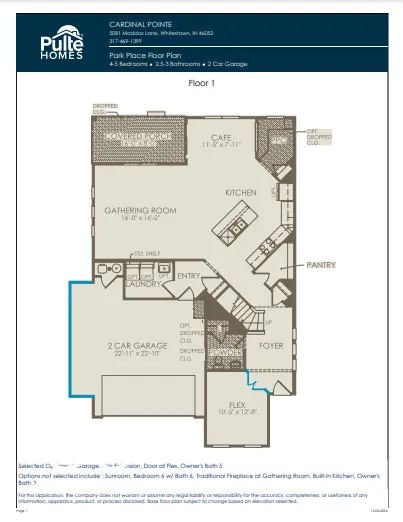 Welcome to the Park Place floorplan in Cardinal Pointe! This thoughtfully designed home offers a seamless blend of style and functionality. The main level features a stunning kitchen with 42″ Landen Colada cabinets, sleek frost white quartz countertops, and stainless steel gas appliances, creating a perfect hub for cooking and gathering. The kitchen flows effortlessly into the Gathering Room and Cafe Dining Area, ideal for entertaining or everyday living. A versatile Flex Room with doors provides a private space for work, play, or relaxation, while the Pulte Planning Center keeps your daily essentials organized. The Everyday Entry ensures convenience with easy access to the heart of the home, all tied together by luxury vinyl plank flooring throughout the main level. On the upper level, retreat to the spacious Owner’s Suite, complete with a sophisticated tray ceiling, an en-suite bath featuring double sinks, and a luxurious walk-in shower. Three additional bedrooms, a loft, and a secondary bath provide ample space. Enjoy the amenities of the Golf Club of Indiana where your social membership grants you exclusive access to a host of amenities, advanced tee time reservations, merchandise discounts, and complimentary instructional clinics at the Golf Pro-Performance Academy. With championship tees stretching over 7,000 yards and 15 water holes, this 175+ acre golf course promises an exhilarating experience for players of all skill levels. Beyond golfing, Cardinal Point offers unparalleled convenience. Less than a mile from I-65, commuting is easy, providing easy access to I-465 and major thoroughfares. Additionally, you’re just minutes away from downtown Zionsville, and W 86th Street, and downtown Whitestown, boasting a plethora of dining, shopping, and everyday conveniences.