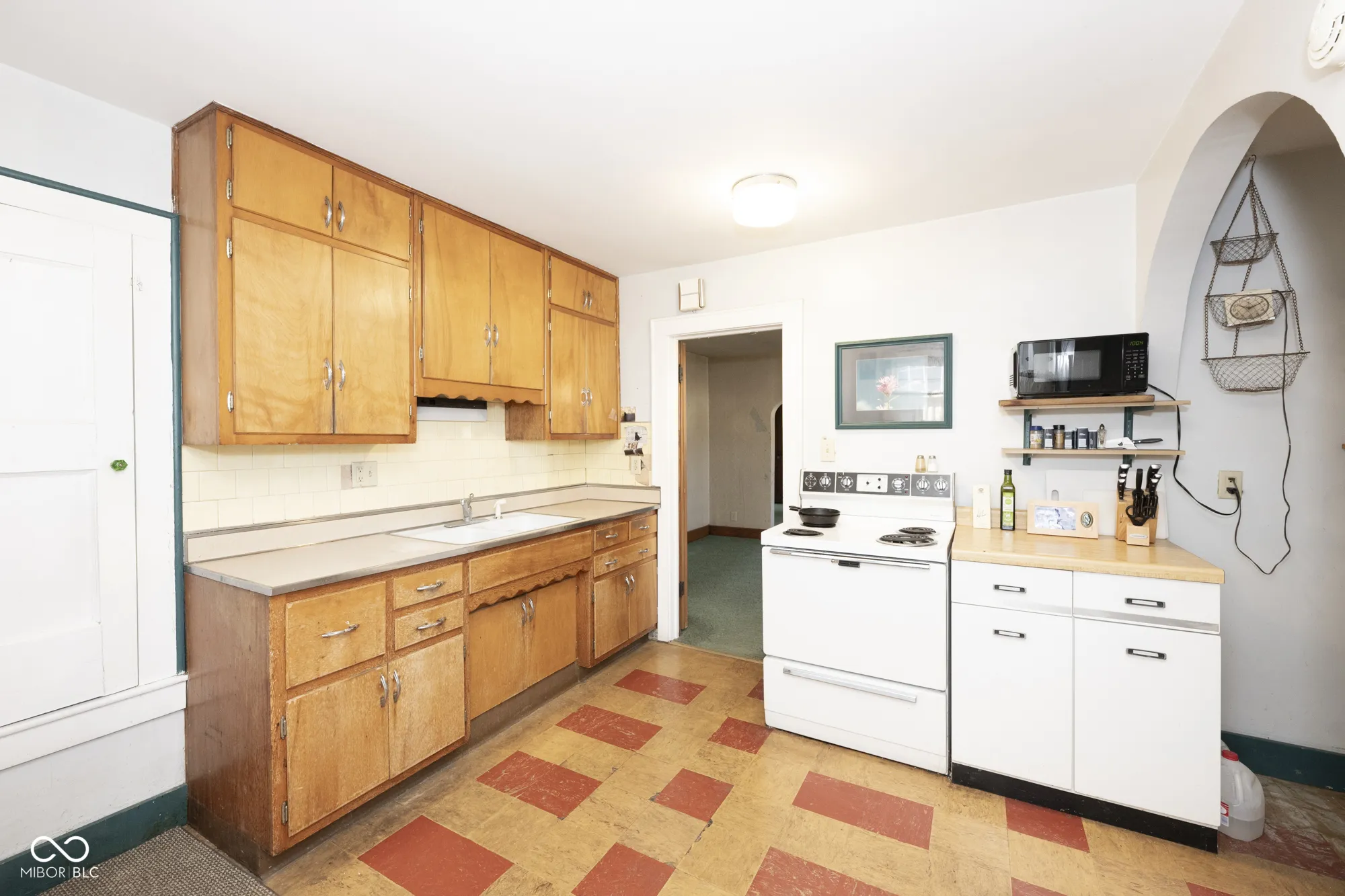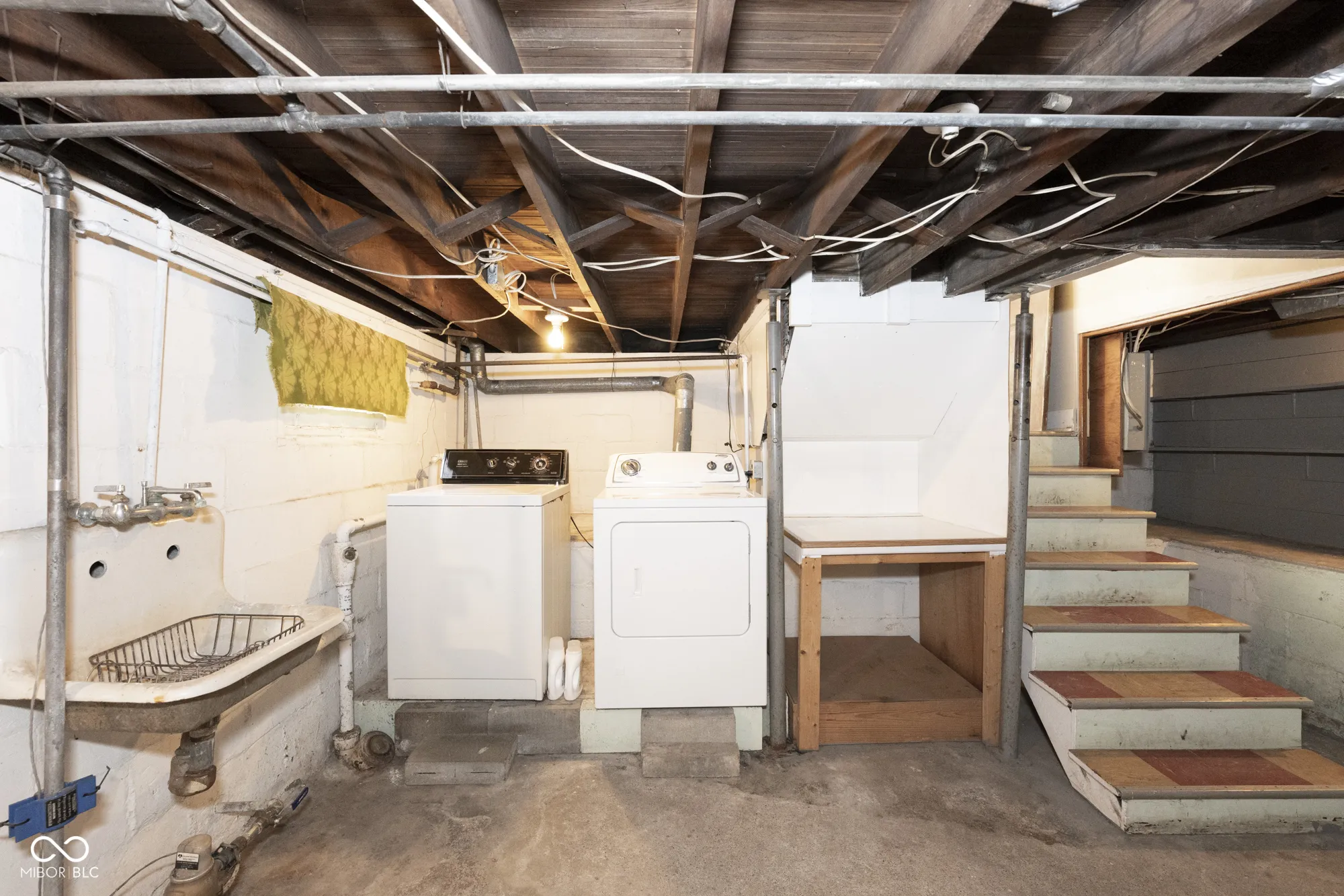 Fantastic opportunity to make this home your own! 3 bedrooms, 1 bath w/basement & 1+ car detached garage in Elders University Heights being sold as-is. Adorable ranch w/basement is situated on 2 lots that are on a corner. This charming property offers a wrap around front porch, original hardwoods (in good shape) under the carpets plus a large yard w/mature trees perfect for a garden & flower beds. A sidewalk lined neighborhood that is conveniently located within walking distance to the University of Indianapolis. Spacious basement provides lots of storage space in addition to the laundry area plus areas that could be finished as additional living space. Roof replaced in 2012. Guttering 2019. Garage door opener 2009. Garage door spring, cable, cable reels and shaft 2024. So much character! Perfect investment property or starter home!