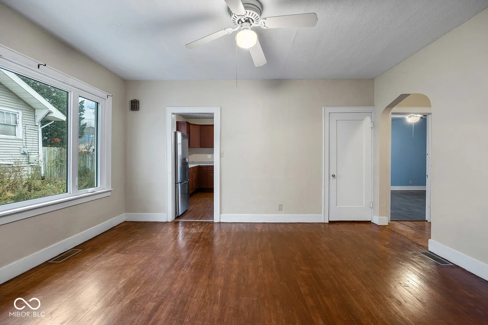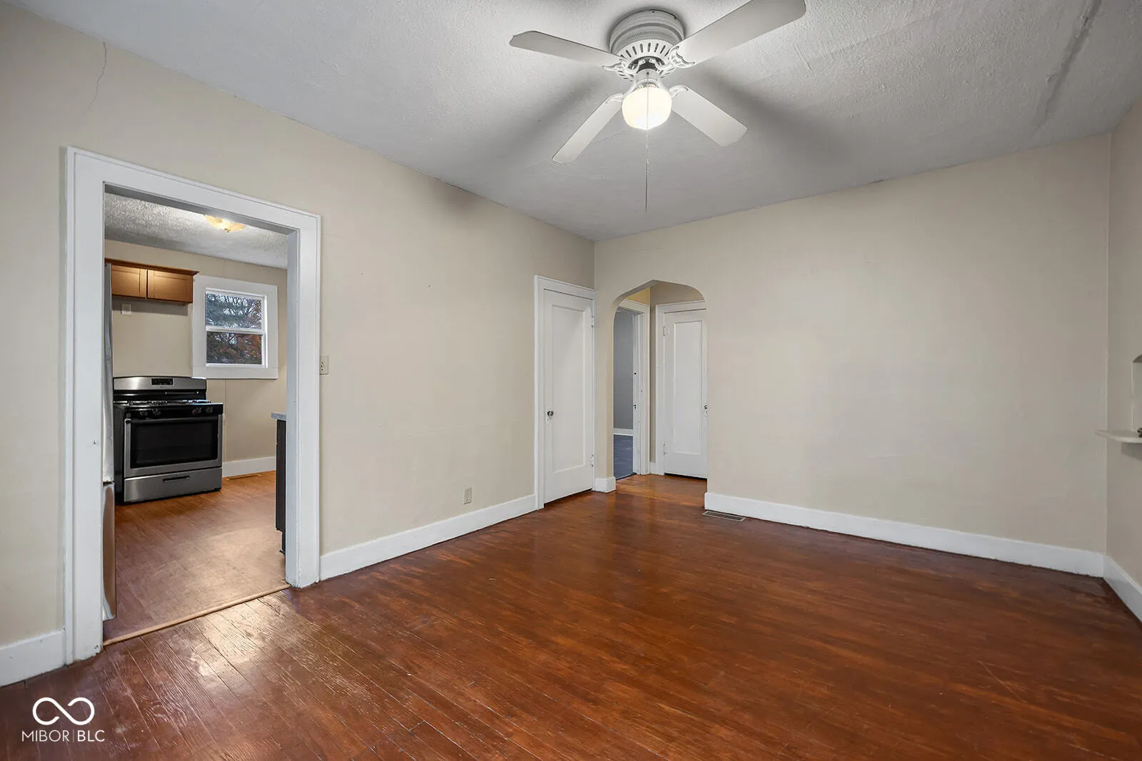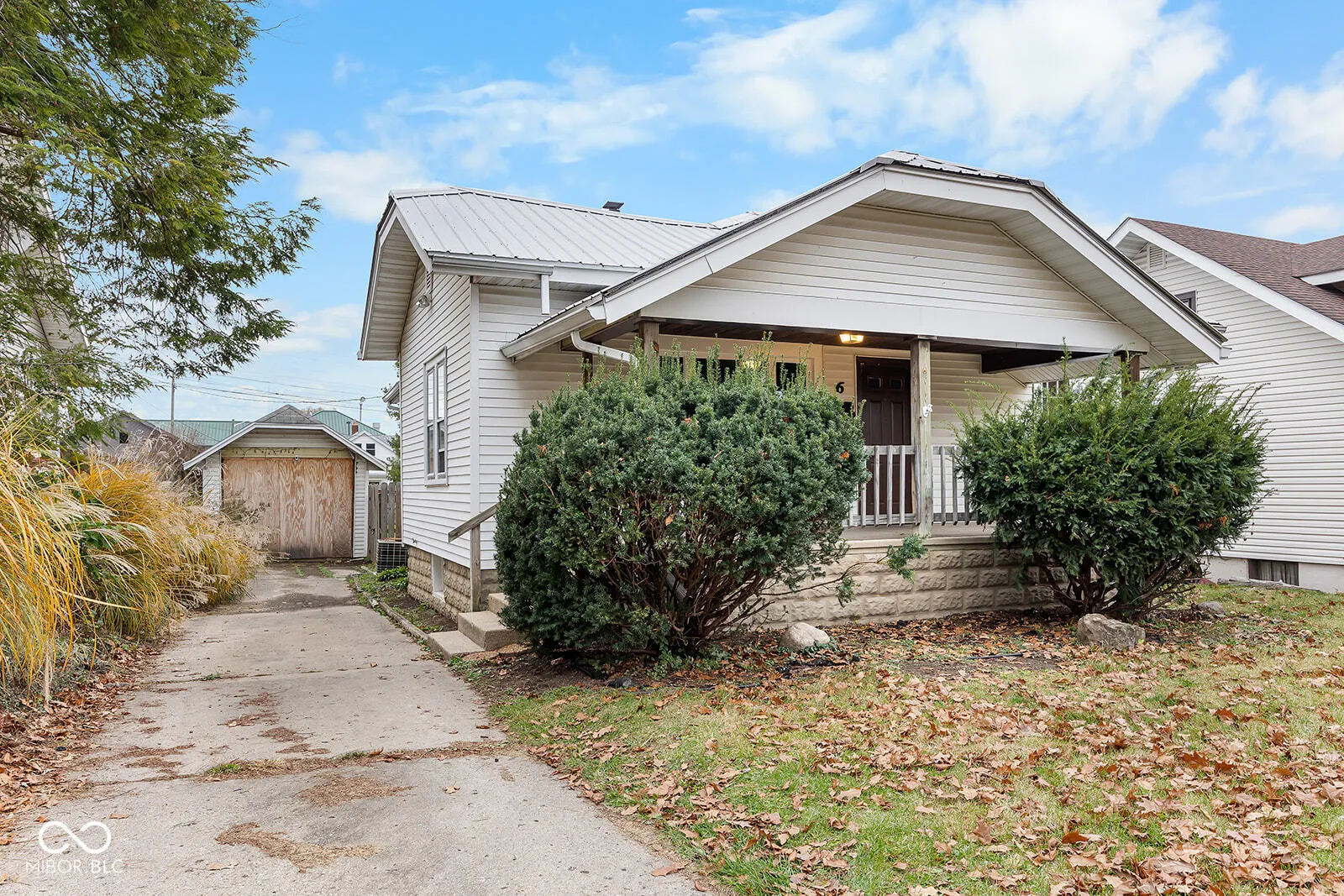 This charming 2-bedroom, 1-bath home offers over 1,200 square feet of living space filled with potential and character. Featuring ceiling fans throughout, a durable metal roof, and a detached one-car garage, this property is both functional and inviting. The covered front porch provides a cozy space to relax, while the full, partially finished basement-with a working toilet-offers opportunities to expand your living area. A walk-up attic adds even more potential for additional rooms or storage. The home sits on a generous lot with a nice-sized fenced in backyard, perfect for outdoor activities or gardening. Conveniently located near shopping and dining, this home combines comfort, charm, and a fantastic location. Schedule your showing today and imagine the possibilities!