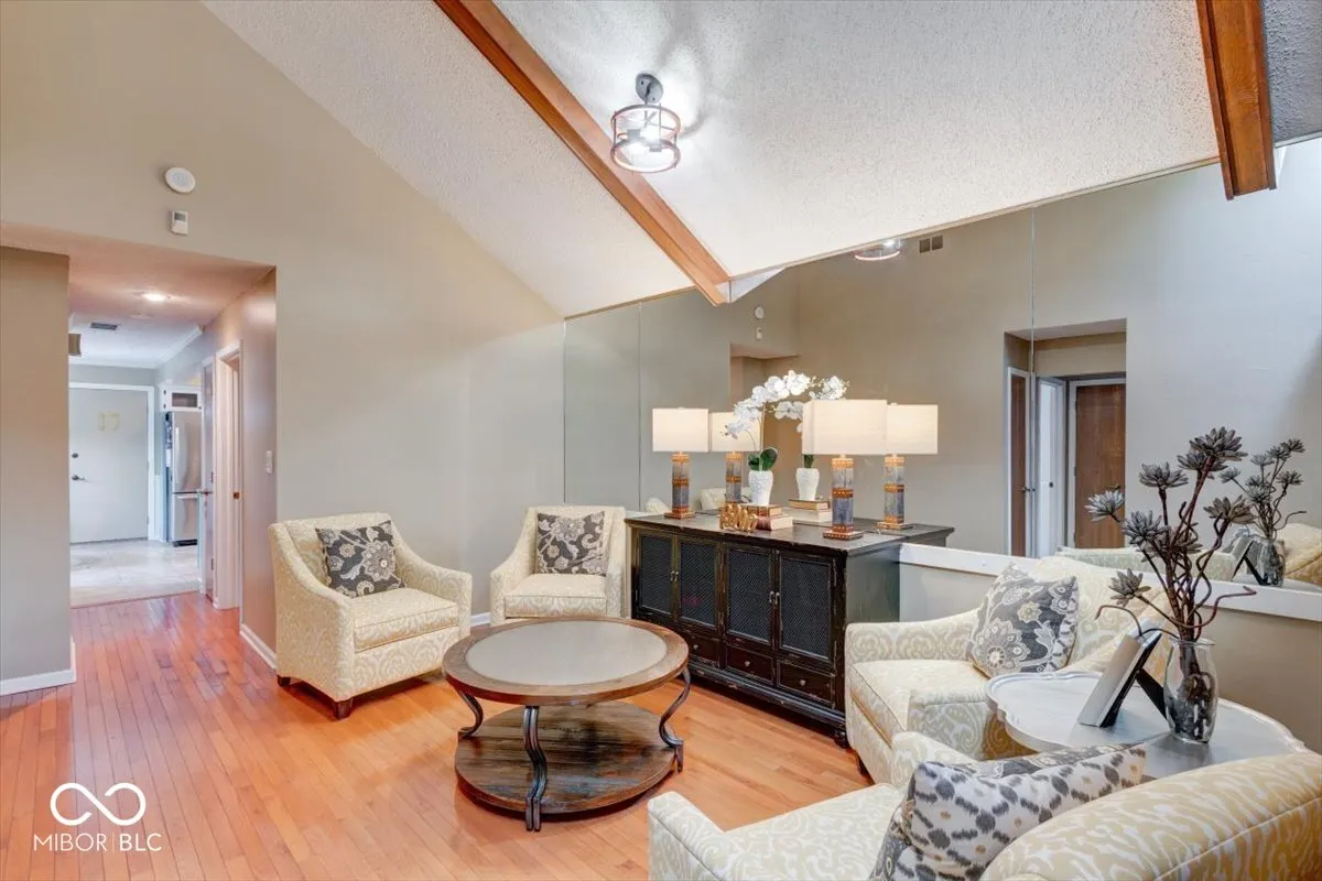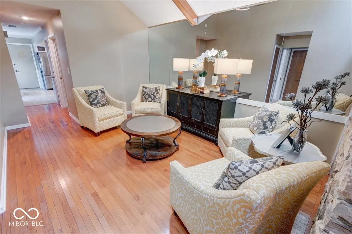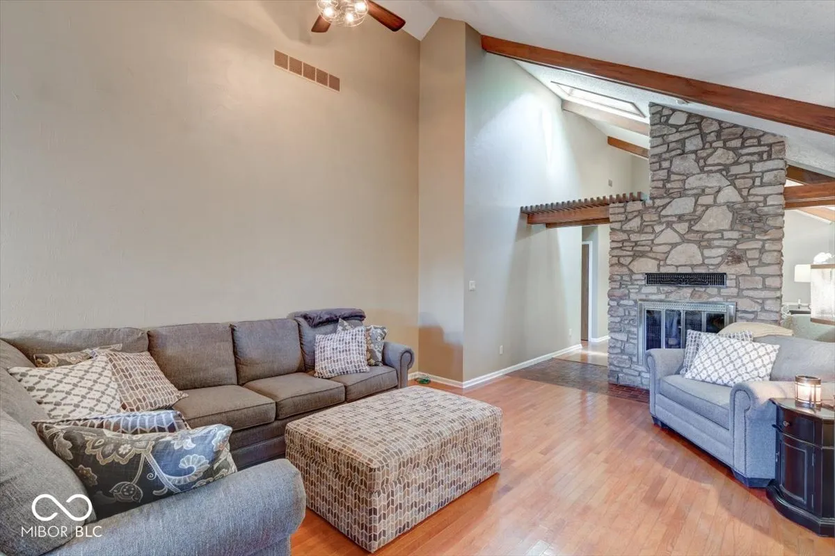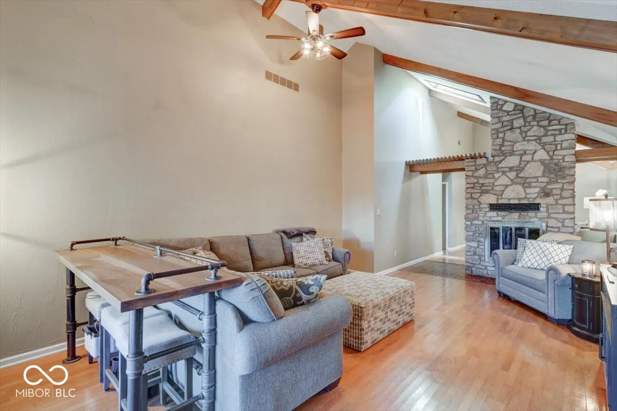 Welcome to this 2 bedroom 2 full bathroom condo located within The Trace Community! This cute gem offers a spacious Great Room with vaulted ceilings, beautiful wood beams, sky lights, with floor to ceiling stone fireplace. The formal dining room is currently being used as a lovely sitting room. Large eat in kitchen with kitchen appliances included. Spacious Primary Suite with large closest and private access to the 25X05 screened in porch. Nice hardwood floors throughout the home, washer and dryer are included, finished garage, new water heater and new garage door opener replaced in 2024. Low maintenance community, HOA takes care of the lawn, exterior, and snow removal. Close to downtown Greenwood, parks, near Valle Vista Golf Course. This home could be all yours, come check it out!