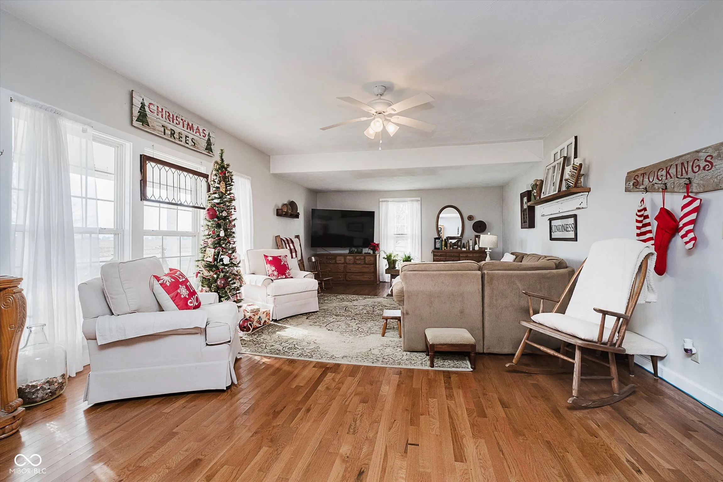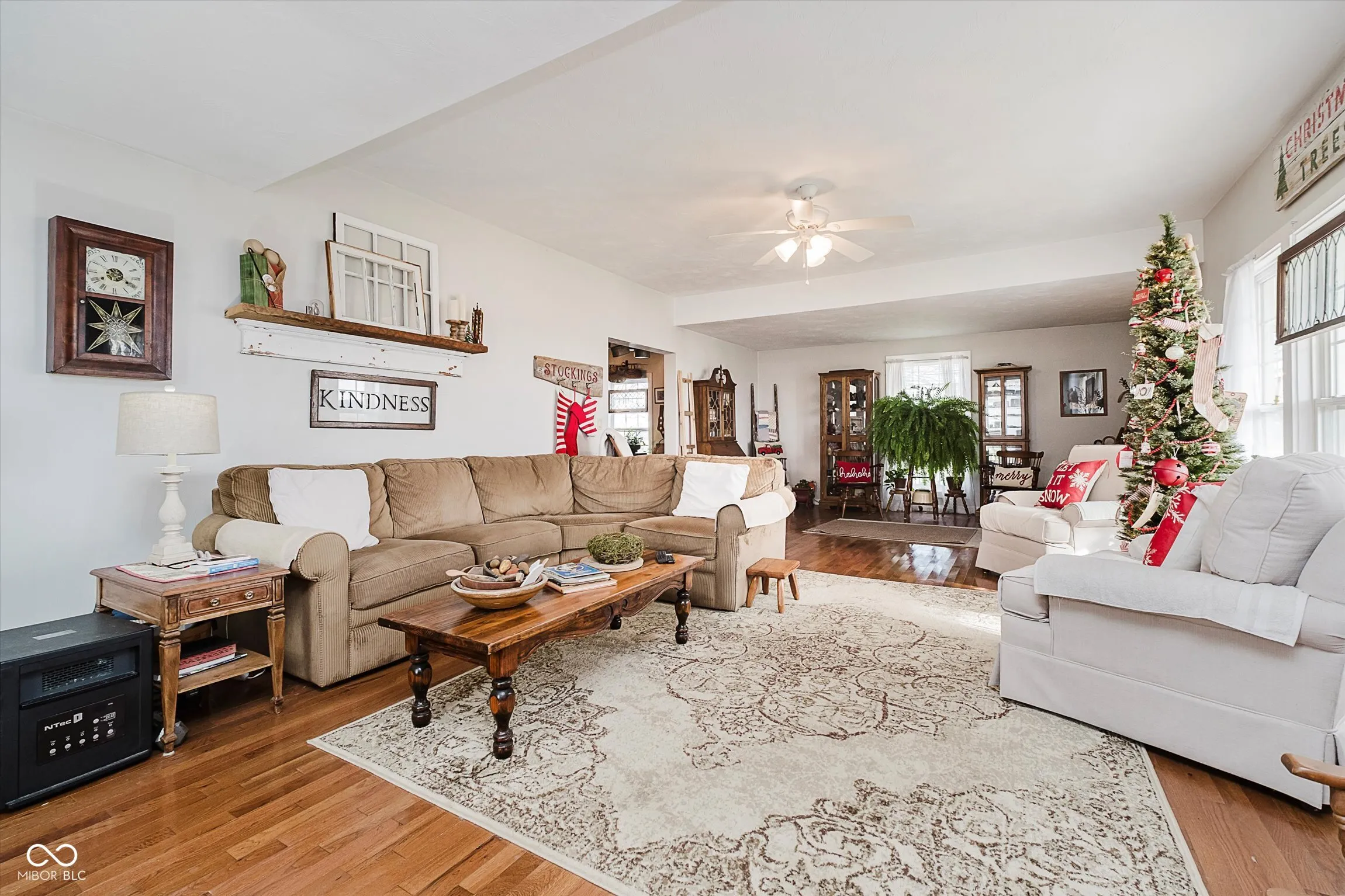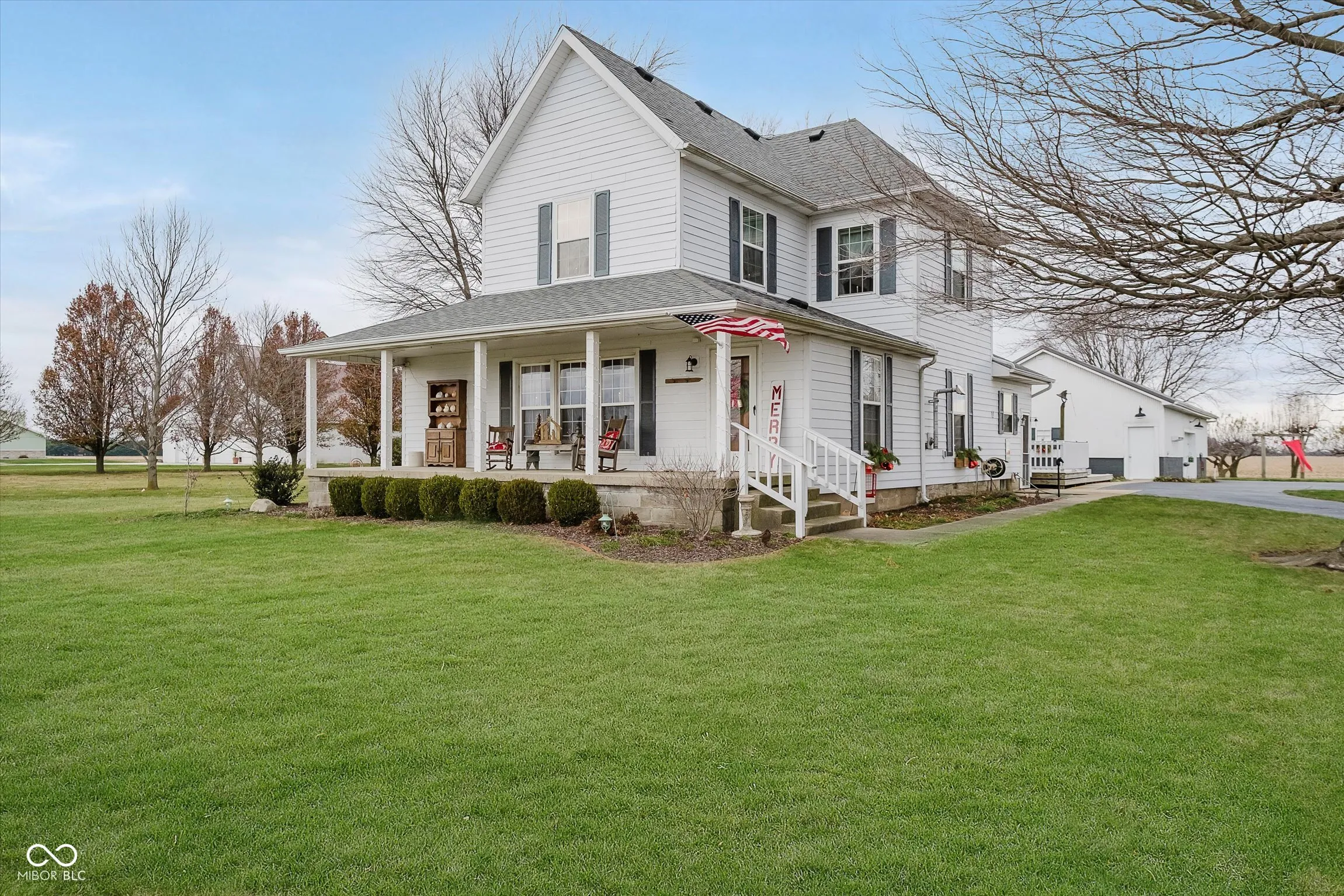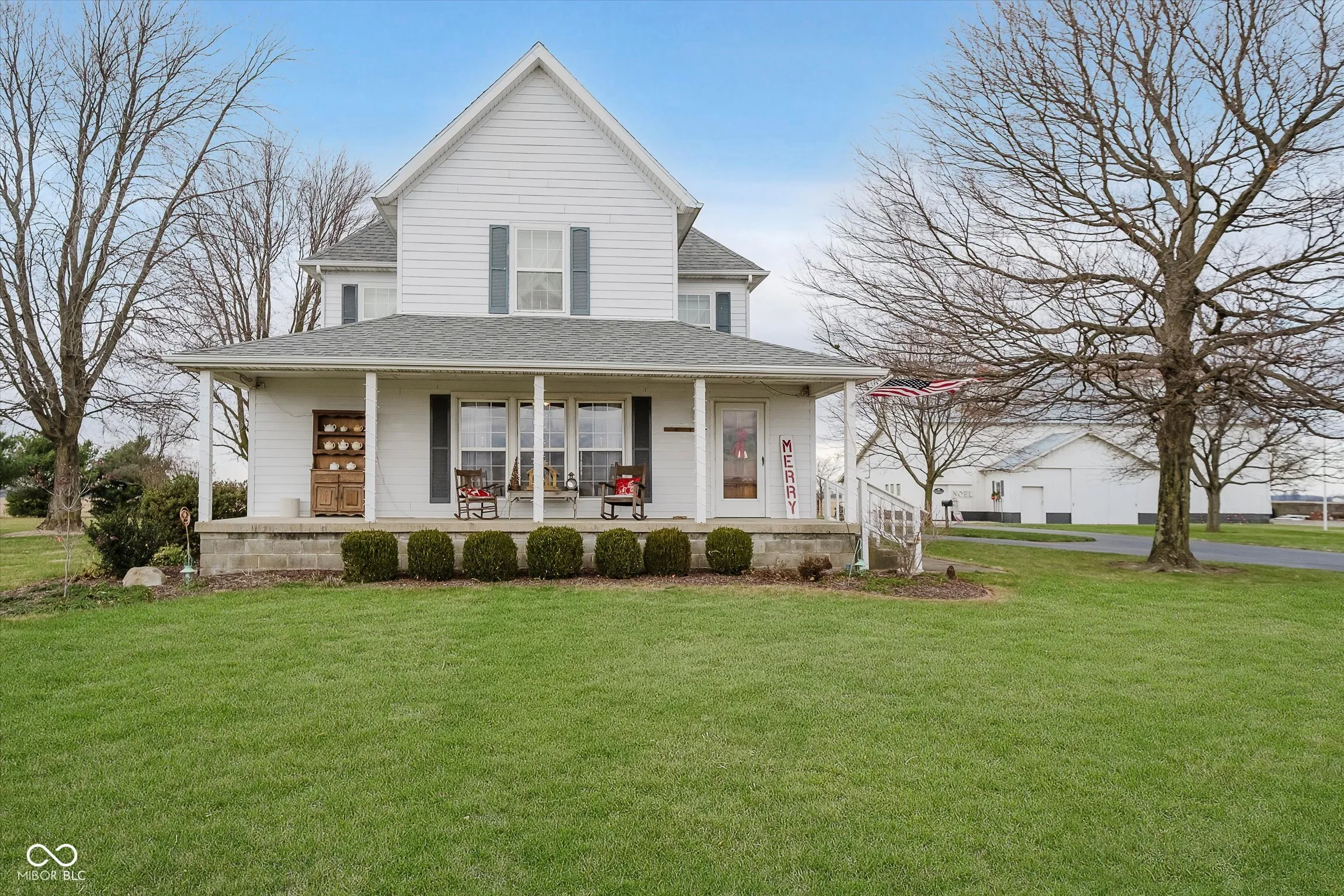 Right out of a Hallmark Movie and just in time for Christmas! This beautiful farmhouse has all the charm including the big front porch, huge living and dining rooms, hardwood floors and updated kitchen with granite countertops, stainless steel appliances and tile backsplash. Enjoy the convenience of the main level bedroom, laundry room and full bath with dual sinks. Upstairs offers 3 bedrooms with a jack-and-jill full bath. Everything is in tip top condition including a new furnace, 6 and 8 ft tall vinyl windows and fiber cement siding. That’s not all! The large deck overlooks the 2.44 acre lot with lovely mature trees (see attached diagram). Storage galore in the 1400 SF detached garage PLUS a huge 66×66 barn with dog kennels and plenty of room for woodworking, storage and more! This truly is a rare find!