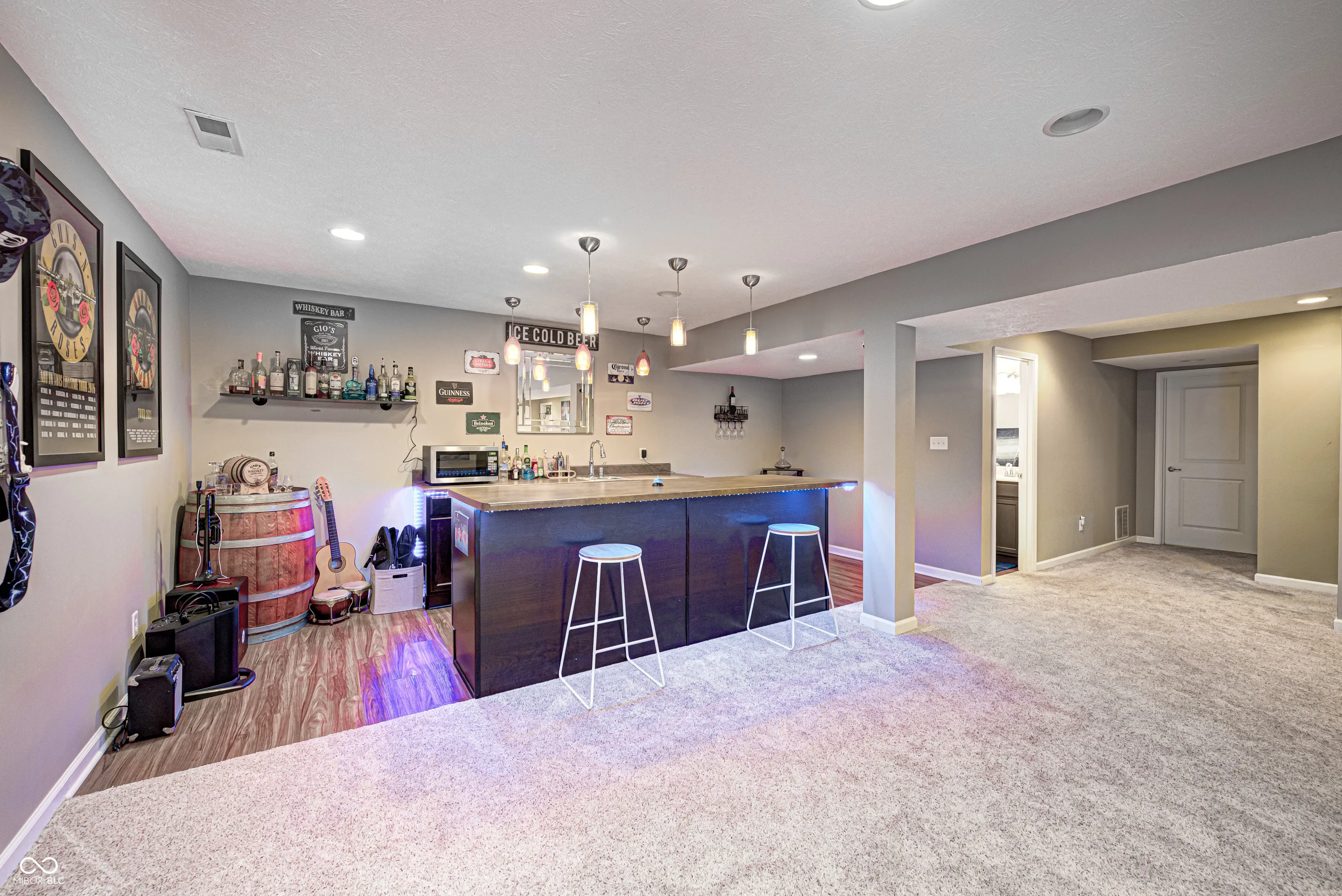 For a LIMITED TIME ONLY, the Sellers of this beautiful home have agreed to contribute $7,000 dollars toward your cost in purchasing this amazing home. This amount can be used to buydown the INTEREST RATE or PAY your CLOSING COSTS. You choose! SCHEDULE YOUR SHOWING TODAY! Why should this be your next home? First, this is a custom built home and the quality of the construction is evident the minute you walk through the front door. Second, this is a one level home with a finished basement which is almost impossible to find. Third, the home is located within the Center Grove School District in White River Township in Johnson County. This home offers over 4,000 square feet of well organized space with an amazing floorplan of four bedrooms and three full bath areas. Main level features engineered hardwood flooring & upgraded windows throughout. Large foyer opens into the stunning 18’x17′ Great Room which transitions smoothly into the adjacent Gourmet Kitchen and Breakfast Room. Kitchen showcases Quartz Countertops, Stainless Steel Appliances, Double Pantry, Recessed Lighting, and a raised counter section with seating for four. Breakfast Room has a vaulted ceiling and abundant windows for natural sunlight. Work from home? No worries! Enjoy the convenience of the 12’x12′ office with French doors for privacy. The Primary Bedroom is 17’x16′ with Double Walk-In Closets and an ensuite with dual vanities and large shower. Secondary Bedrooms are spacious. Laundry Room completes the Main Level. Basement is an entertainment mecca. Centerpiece is a huge Wet Bar with accent lighting and seating for four. The Family Room is 29″x22′ and offers ample room for a pool table, air hockey or other options. 12’x12′ Bonus area adds flexibility into the space. Need to workout? Check out the 26’x15′ unfinished exercise area currently in use. Fourth Bedroom and a full bath are also located in this area. Outside, this property boasts a beautiful deck and a Brick Exterior.
