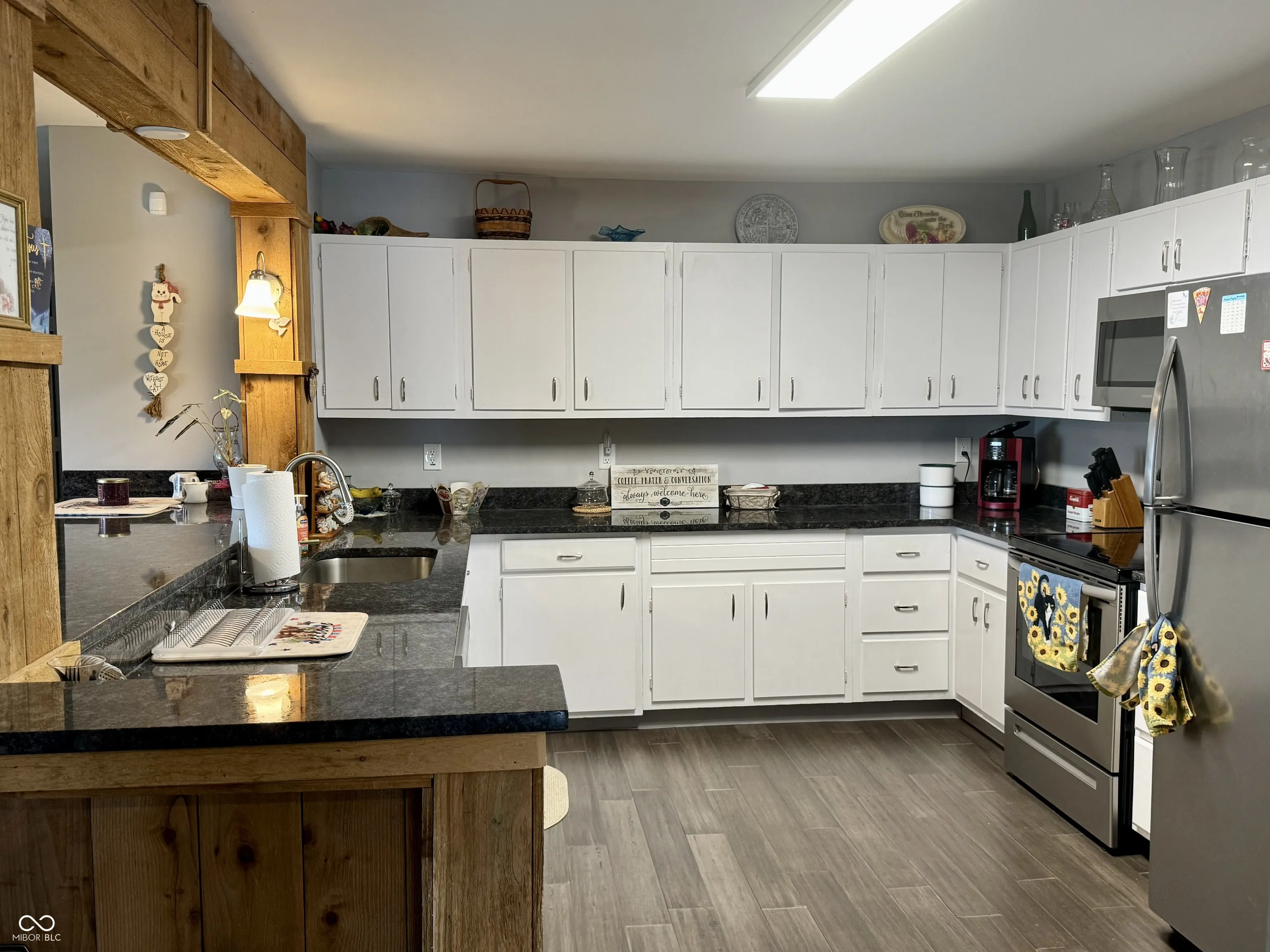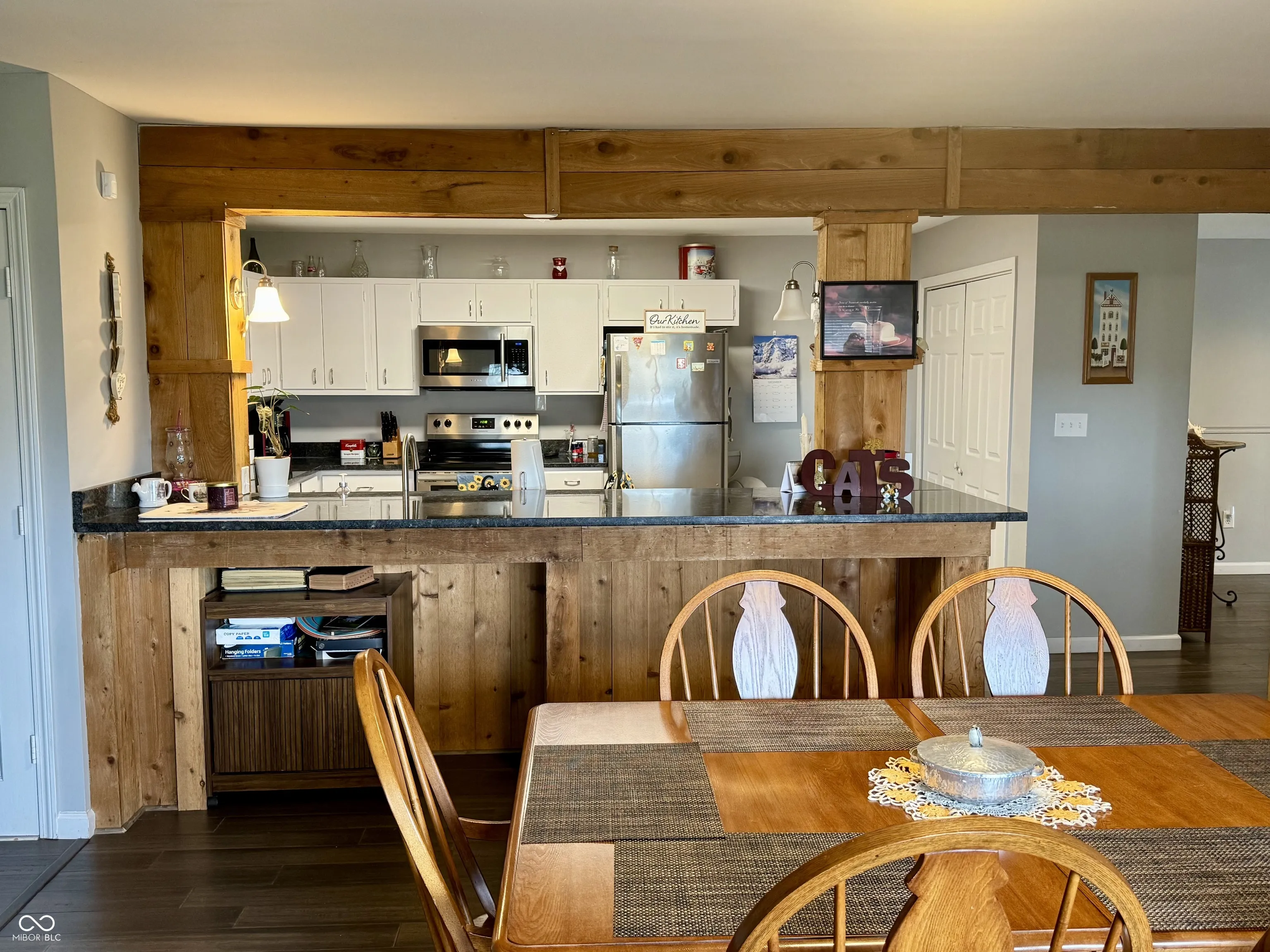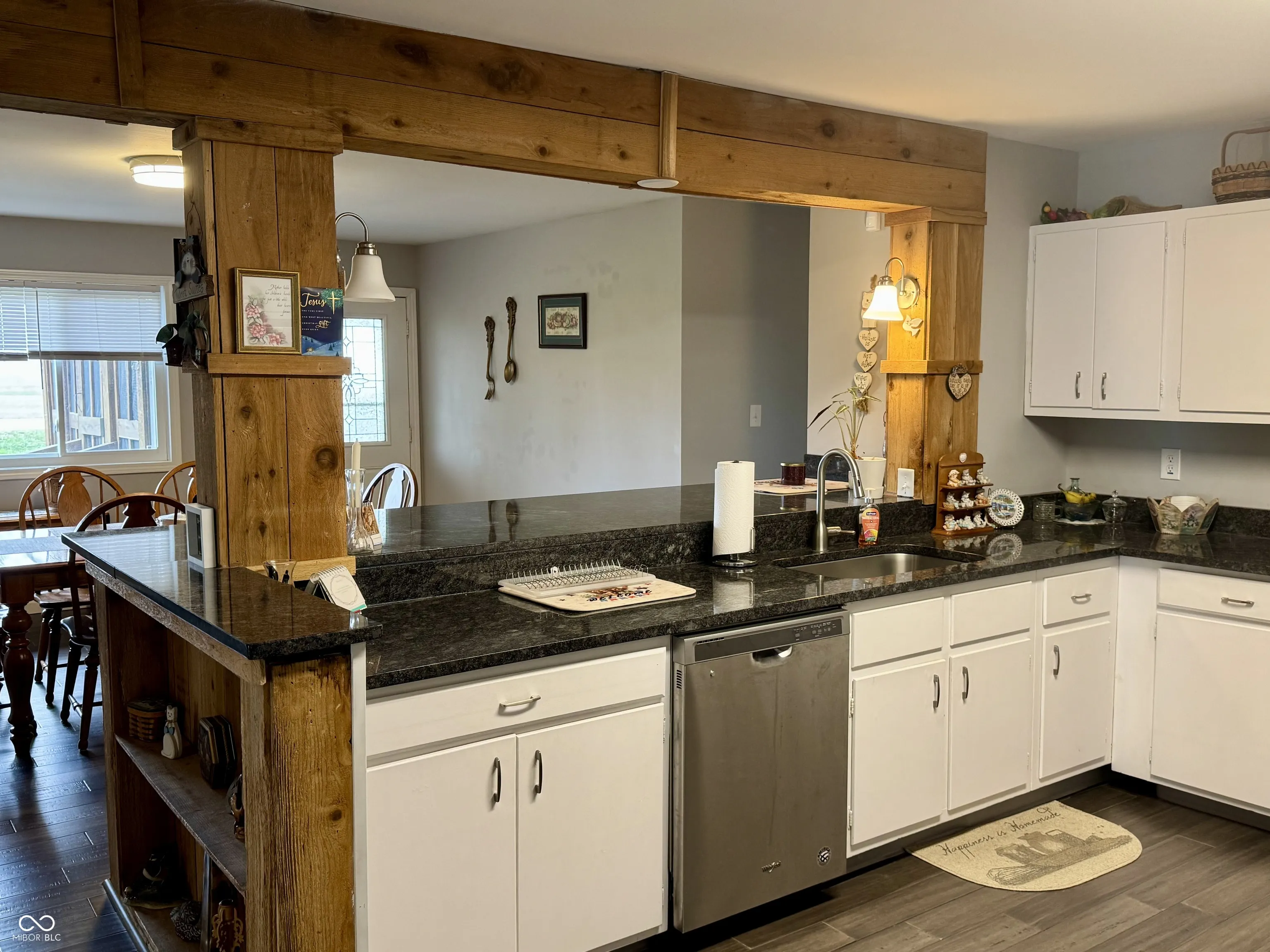 Welcome home to this beautifully renovated 3-bedroom, 2-bath home. Offering 2,463 sq. ft. of living space, nestled on a spacious 1.11-acre lot within the highly sought-after Western Boone Community School District Step inside to discover a bright and airy interior featuring new vinyl plank flooring throughout, creating a seamless flow between rooms. The heart of the home is the large eat-in kitchen, complete with white cabinetry, granite countertops, stainless steel appliances, a pantry, and ample counter space. A connecting dining room adds an elegant touch for special gatherings. The family room, centered around a cozy fireplace, offers a welcoming space to unwind, while an additional living room provides even more flexibility. Need a dedicated workspace? The home also includes a private office, ideal for remote work or study. The expansive primary suite is a true retreat, with a large walk-in closet and a luxurious ensuite bathroom. Two additional well-sized bedrooms and a beautifully updated second bathroom provide plenty of room for family or guests. Outside, enjoy the serene surroundings from the screened-in porch, or take advantage of the detached 4-car garage with an attached shop – perfect for storage, hobbies, or DIY projects. Additional upgrades include a new septic system and a large laundry room for added convenience. This home is a must-see for anyone seeking space, style, and comfort in the quiet town of Dover, just minutes from local amenities, parks, and schools. Schedule a showing today and make this stunning property your forever home!