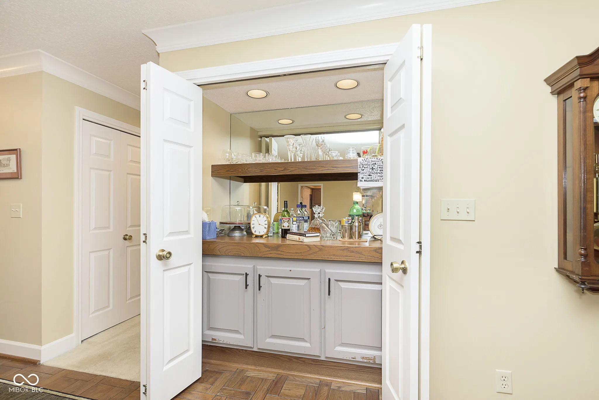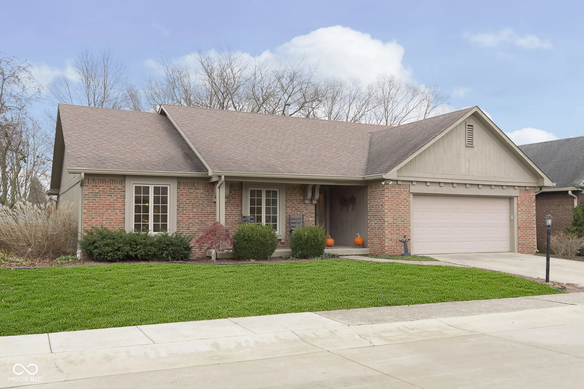 Well cared for Ranch home in popular Carmel community Brookshire Village! Dynamite location in the heart of Carmel, the homes in this community sell quickly, charming brick front elevation, large covered front porch to enjoy the neighborhood people watching, step inside and be greeted by parquet flooring in excellent condition by the way, large dining room and family room space is versatile for flexible living space if you don’t need a large dining room, step down great room/family room w/ cozy gas fireplace updated galley kitchen with breakfast room that looks out onto a gorgeous backyard fully privacy fenced with mature trees, large outdoor concrete patio for the better weather months, the owners favorite room is a spacious den with built-ins, grass cloth wallpaper gives this room the perfect touch of warmth and coziness, the primary bedroom in the back of the home for privacy is luxurious and very comfortably sized, large primary bathroom suite, custom tile shower surround, jacuzzi tub, double vanities, spacious primary bedroom closet w/ custom shelving, this home has it all, enjoy walking distance to the Needlers Fresh Market. Updates include: Solatubes, natural light but better than a skylight, tankless hot water heater, custom primary bedroom closet system, new fence in the backyard, furnace and AC in 2021, Leaf filter,